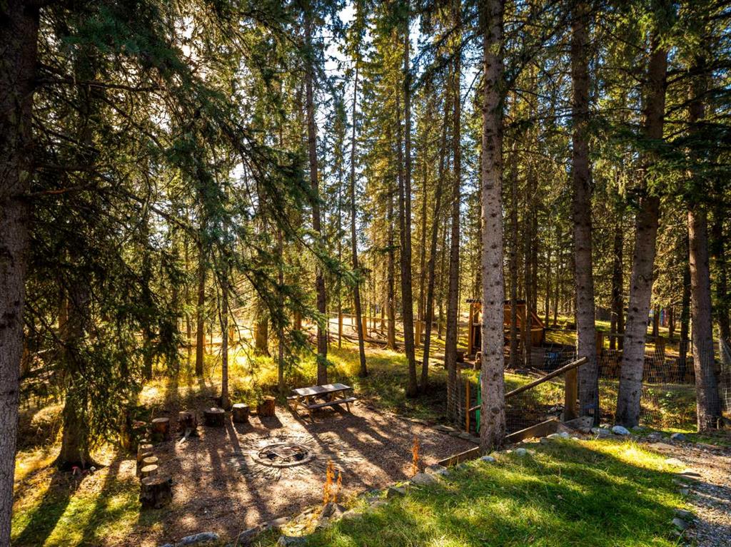 Welcome to 4 Forestry Trail in Waiparous Village — an enchanting home surrounded by trees. With over 3400 sq. ft. of total living space, this 4-bedroom, 3-bath home is full of character and light. Unlike many newer builds that feel the same, this home is anything but ordinary — whimsical, inspiring, and full of character and charm. Whether you’re an artist, nature lover, or dreamer at heart, this is a place where creativity and calm come naturally.The soaring vaulted ceilings on the main level are tall enough for the grandest Christmas tree, while expansive windows and open studio areas make this an artist’s dream. Step outside to the huge wrap-around deck and take in the serene forest views, complete with a recessed fire pit, tranquil water feature, greenhouse, wood shed, and even berry bushes. The main level features an open kitchen, walk-in pantry, large dining area, gas fireplace in the living room, 2 bedrooms, full bath, and 2 access points to the outdoors. The upstairs loft makes a perfect primary bedroom with 3 piece ensuite. The lower walk-out level features an additional bedroom, large bathroom, and 2 designated living areas and a wood stove. A unique feature is the large 4 season sunroom/foyer that makes a perfect art studio or hobby area. This room has in-floor heating, which runs through the lower and main levels, and is surrounded by windows overlooking the beautiful trees. The home is meticulously cared for with numerous updates: new roof (2020), IBC boiler (2023), UV filtration (2022), reverse osmosis, sink & dishwasher (2024), central vac (2025), new carpet (2025) and a new wooden deck (2025). Enjoy walking access to the Ghost River, fishing, and endless trail systems — all while living harmoniously among wildlife. Just 30 minutes to Cochrane, 15 to Ghost Lake, and 40 to the mountains. A truly whimsical, inspiring home that stands apart from the rest.