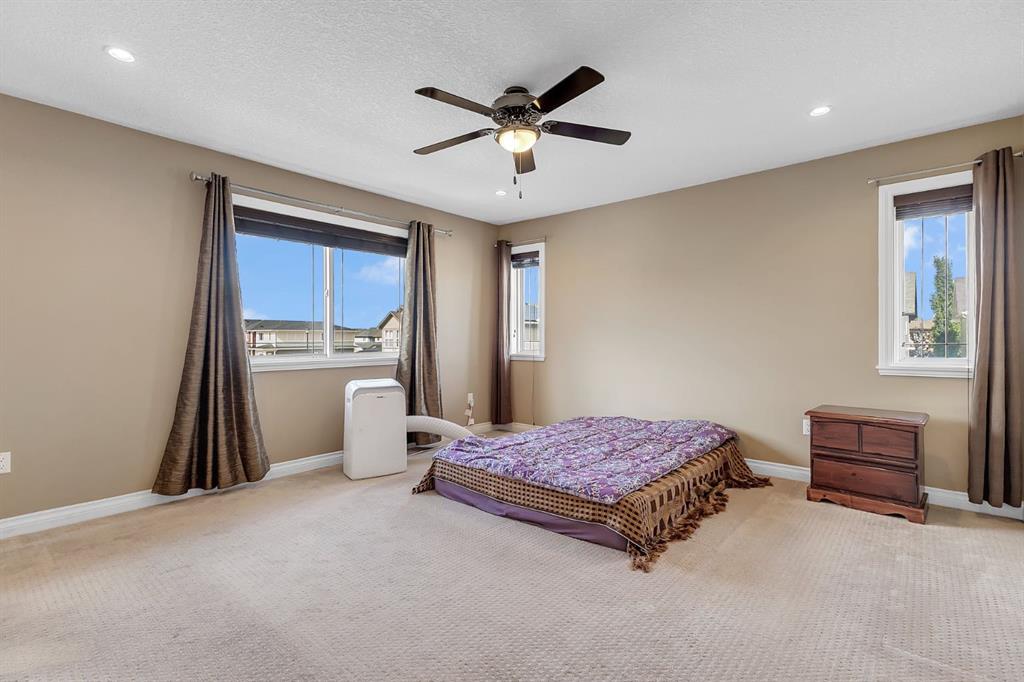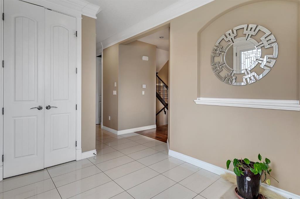 Corner Lot | Approx 2500 SQFT | Mainfloor Bedroom | Custom Woodwork | 2 Ensuites. Stunning 2,500 sq. ft. Fully Upgraded Two-Storey in Bayside. Discover this beautifully designed two-storey home in the sought-after Baywater community, ideally located on a spacious corner lot with a rear paved lane—just steps from Nose Creek Elementary School, parks, and the scenic Canal pathway. This custom-built layout offers a bright family room with a cozy fireplace and built-in cabinetry, a chef’s kitchen with ceiling-height cabinetry and a walk-through pantry, and a formal dining room—perfect for entertaining. A versatile main-floor den can serve as a home office or optional fourth bedroom. Upstairs, you’ll find three generously sized bedrooms and three full bathrooms. The luxurious primary suite boasts a spa-inspired 5-piece ensuite. The second bedroom features its own 4-piece ensuite, while the third bedroom enjoys convenient access to the main 4-piece bath. A spacious bonus room and an upper-level laundry add practicality and comfort. This home showcases exceptional finishes, including hand-scraped hardwood, designer tile, custom railings, in-stair lighting, 8' doors with oversized headers, and 9' ceilings on both the main and lower levels. The exterior is equally impressive with upgraded siding, a rear deck, and an insulated 21' x 23' garage. A perfect family-friendly location where kids can easily walk to school and nearby parks.