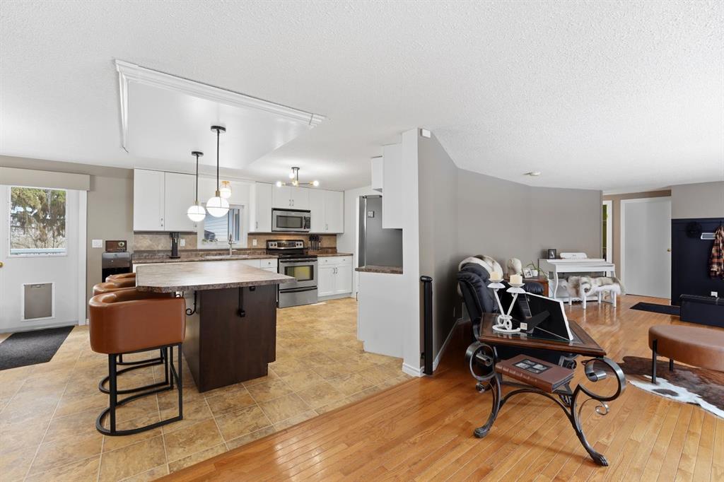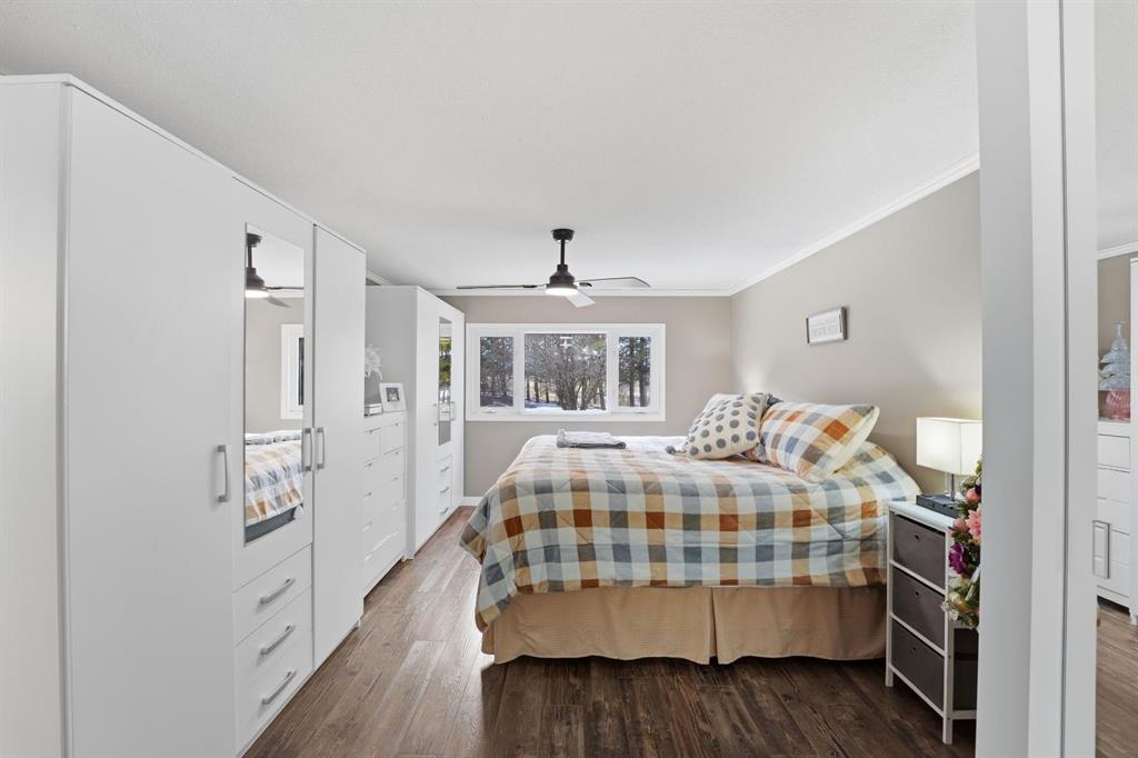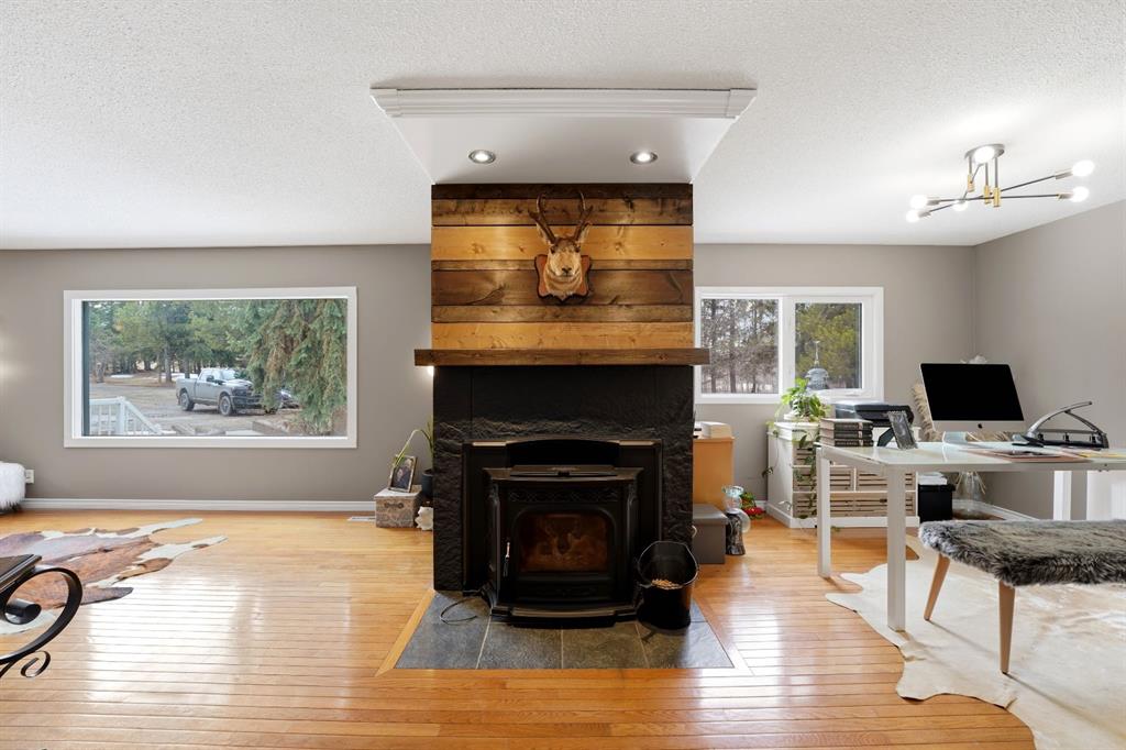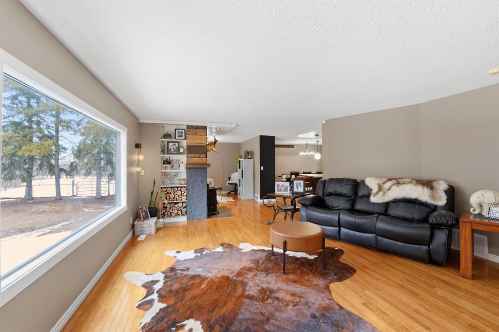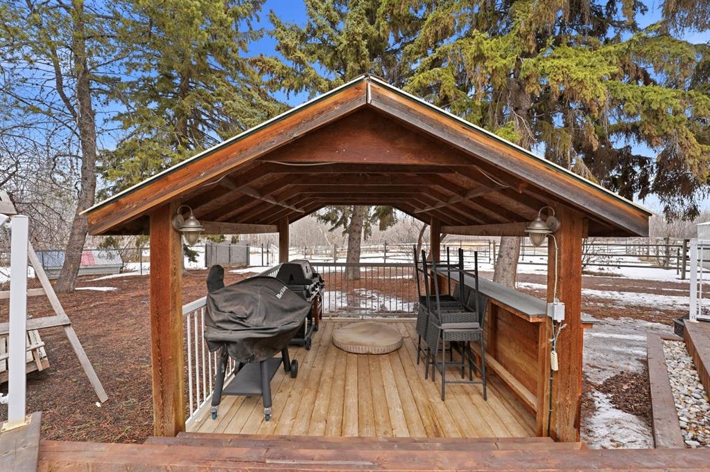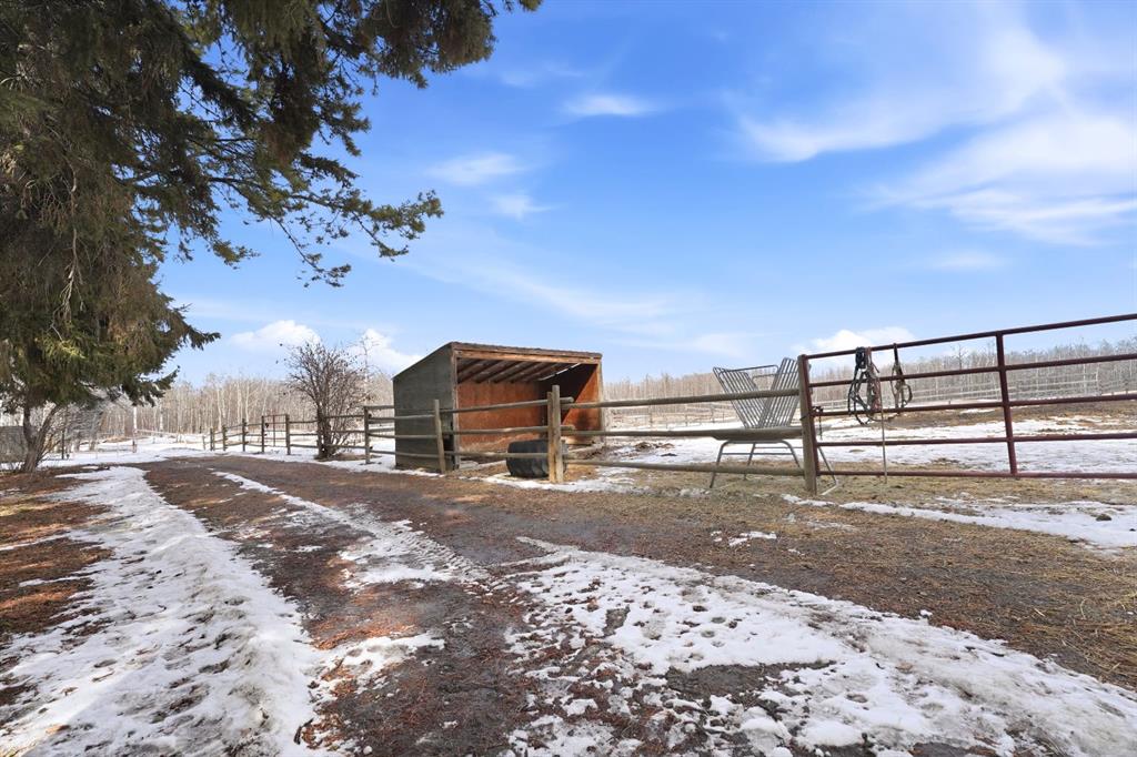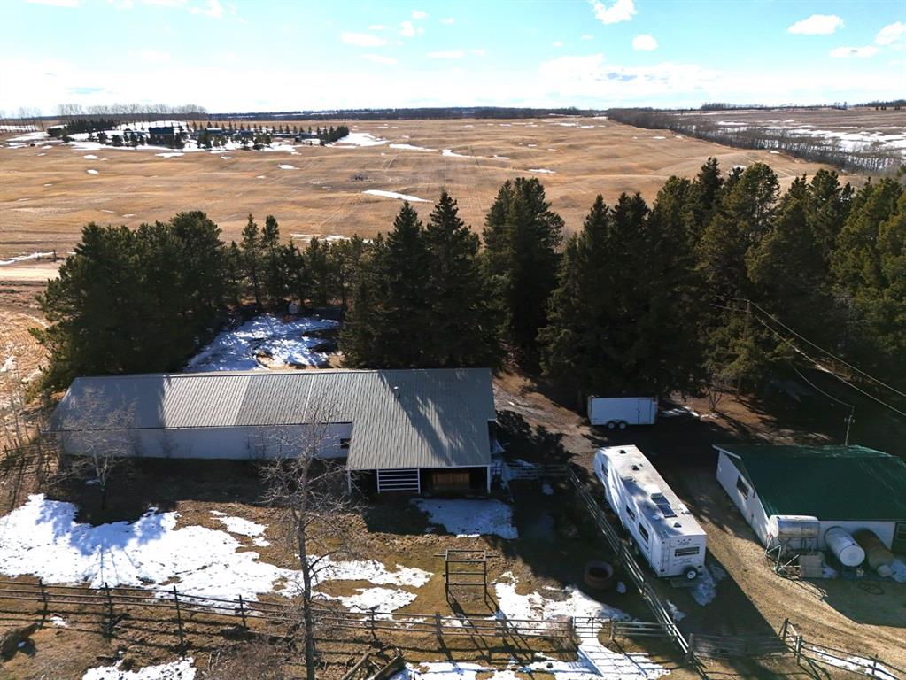 This stunning horse property, 1 km off pavement and just 15 minutes from Lacombe, offers everything you need for a rural lifestyle. The 3 bedroom home with office and bonus room offers modern amenities, and has been meticulously maintained and upgraded over the years. Double detached garage (26x28) for parking or storage, a heated insulated shop (overhead radiant propane, or diesel), measuring 30'X40' with a 10' overhead door and paved floor provides ample space to work or run a business. Attached is a spacious 30x60 pole barn with horse stalls, new rubber floors, and a 19' x 10' sliding machinery door. This property is fully fenced to keep pets secure and livestock safe, with additional cross fencing and paddocks specifically for horses. 4 horse shelters are included, along with a fenced 142' x 73' outdoor sand riding arena. Enjoy the expansive yard with mature trees, a newly constructed deck, and a covered gazebo area - perfect for relaxation and entertaining. There is a flowerbed watering system along the west side of the house, 3 apple trees, a pear tree, and rhubarb around the house. Key features include : Decorative electric front gate enhancing security and convenience, 2 security cameras, paved driveway, New shingles in 2018, new fridge, dishwasher, washer and dryer, and lighting 2026, updated electrical, windows, and drywall 2009. Home has air conditioning and a commercial grade furnace, with a additional heat source - a pellet stove. This property has a drilled well, with well pump in the pump house, and an outdoor hot water tank for bathing horses. The septic system is gravity fed from a holding tank, and the tank has been pumped out every 2 years. The cement lid to the tank was recently replaced (2023). There is 220 and 110 power available in the shop. The two propane tanks for the house and shop are leased from Blindman Valley propane, and there is garbage pickup at the gate every Thursday. This service is paid for up until Dec. 2026.