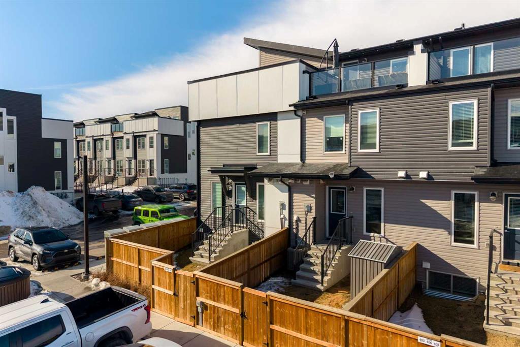 Welcome to this stunning 2023-built townhome in the vibrant community of Seton, offering modern design, thoughtful upgrades, and incredible rooftop views. As you step inside, you’re greeted by a bright open-concept main floor where the living, dining, and kitchen areas flow seamlessly together. Large windows flood the space with natural light, creating a warm and inviting atmosphere. The beautifully upgraded kitchen features stylish cabinetry, upgraded appliances, and a contemporary backsplash that ties the space together perfectly for both everyday living and entertaining. Knockdown ceilings and pot lights add to the fresh, modern feel, making this home truly feel brand new. From the main level, step outside to your fully fenced backyard complete with a shed—ideal for pets, kids, or BBQing on hot summer evenings. On the second level, you’ll find a spacious primary bedroom highlighted by a stunning feature wall and a private 3-piece ensuite. A generously sized second bedroom includes a convenient Murphy bed, creating flexibility for guests, a home office, or both. An additional 4-piece bathroom and laundry closet completes this level. The third floor offers an impressive and versatile family space that can function as a bonus room, media room, home gym, or entertaining lounge. Complete with a wet bar and mini fridge, it’s perfectly set up for hosting friends and family. Step out onto the incredible rooftop deck where you can soak up sun all day long while enjoying expansive views stretching to the mountains and beyond. Additional features include central air conditioning, high-end zebra blinds and curtains, upgraded carpet, luxury vinyl plank flooring throughout, low condo fees, and a fantastic location just steps from the HOA and its amenities. Living in Seton means enjoying one of Calgary’s most dynamic and amenity-rich communities. Residents have access to the impressive Brookfield Residential YMCA at Seton, one of the largest YMCA facilities in North America, as well as the nearby South Health Campus. The community offers a growing urban district filled with shops, restaurants, entertainment options including a VIP Cineplex theatre, grocery stores, cafés, parks, pathways, and convenient access to major roadways. Seton truly delivers the perfect blend of urban convenience and connected community living—and this exceptional townhome allows you to experience it all in style.