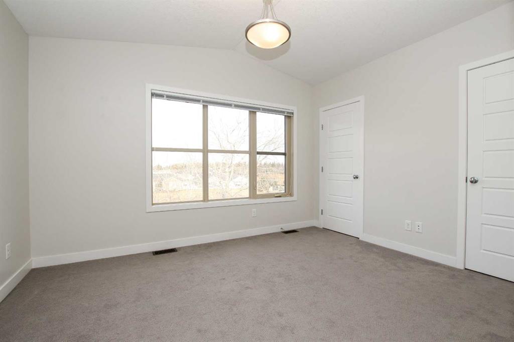 IMMEDIATE POSSESSION AND MOVE IN READY TOWNHOME ~ FULLY DEVELOPED 2 BEDROOMS, 3 BATHROOMS ~ HEATED ATTACHED GARAGE ~ A sun filled foyer with vinyl plank flooring welcomes you to this well cared for home ~ The living room features 9 ft. ceilings, vinyl plank flooring, a storage closet and floor to ceiling south facing windows that fill the space with natural light ~ The eat in kitchen offers a functional layout with an abundance of custom cabinets with pull out drawers, ample granite counter space, full tile backsplash, walk in pantry with floor to ceiling shelving, and large windows above the sink ~ Garden door access to the covered deck with glass and aluminum railings, vinyl waterproofing and a gas line for your BBQ or patio heater ~ 2 Piece bathroom ~ Two primary bedrooms with vaulted ceilings are both a generous size and can easily accommodate king size beds, have ample closet space and have 4 piece ensuites ~ Conveniently located laundry is on the same level as the bedrooms ~ Heated attached garage is insulated, finished with painted drywall and has a man door leading to a courtyard with a playground ~ Walking trails just in front leads to Gaetz Lakes Sanctuary and connects to Red Deer's extensive trail system ~ Walking distance to multiple shopping plazas with all amenities including grocery store, tons of restaurants, medical, clothing shops and more, plus multiple schools and parks all steps away ~ Convenient Clearview Ridge location offers easy access to downtown, and highways.
