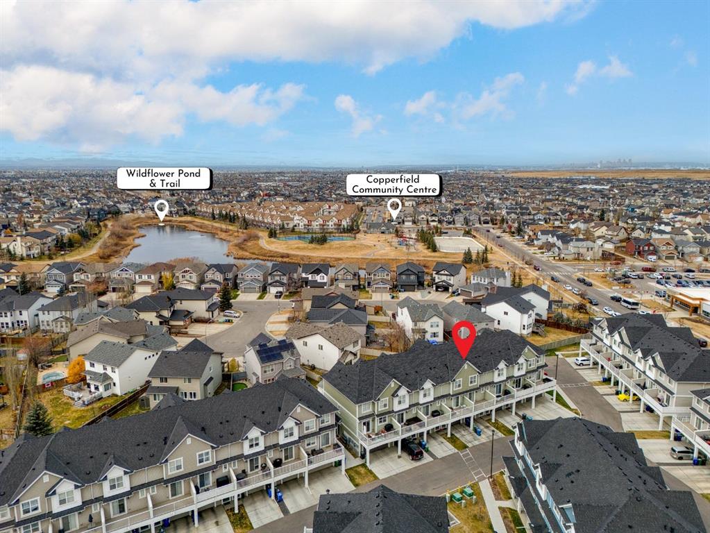 OPEN HOUSE SUNDAY, NOVEMBER 9, 1:00-3:00PM. Welcome Home to Modern Living in the Heart of Copperfield! Step into this bright and stylish townhome that truly has it all. Inside, you’ll find two SPACIOUS BEDROOMS, each with its own full bathroom. One features a beautiful DOUBLE VANITY ENSUITE and WALK-IN CLOSET, making this layout perfect for families, guests, or roommates. The main level offers an open and modern design with laminate floors, a convenient powder room, and a sleek kitchen complete with quartz countertops, stainless steel appliances, and a BBQ gas line on the east facing BALCONY that is ideal for your morning coffee or evening grilling. Enjoy your private west PATIO that opens directly onto GREEN SPACE, a rare and peaceful feature that only select homes in this complex offer. Upstairs, laundry is conveniently located, and on the lower level, you’ll find a LARGE TANDEM ATTACHED GARAGE with space for two vehicles, extra storage, and a driveway for additional parking. This pet friendly complex is known for its friendly neighbours, beautiful modern design, and a well managed condo board that keeps everything looking great. Located just steps from Copperfield School, parks, and playgrounds, this home offers the perfect blend of comfort, outdoor living, and community connection. Book your private showing today and explore the 3D tour to see all that this wonderful home has to offer.