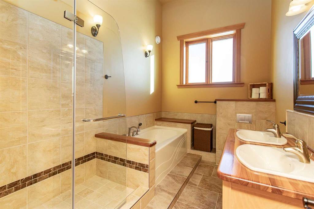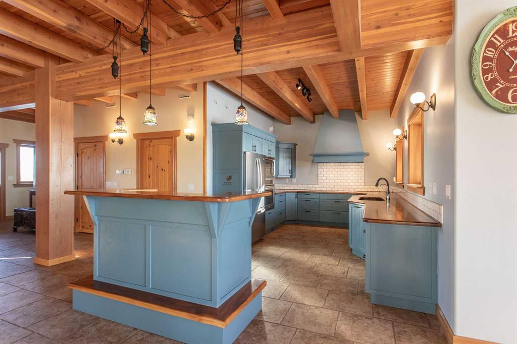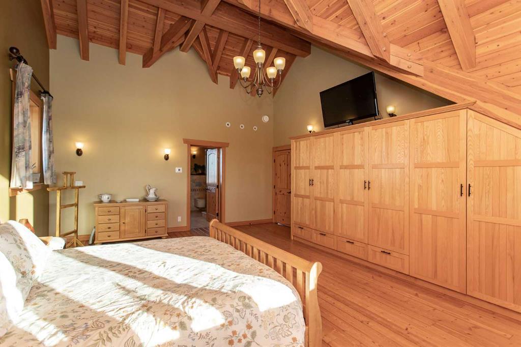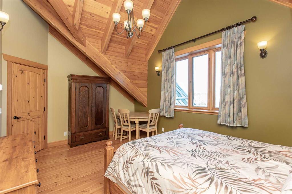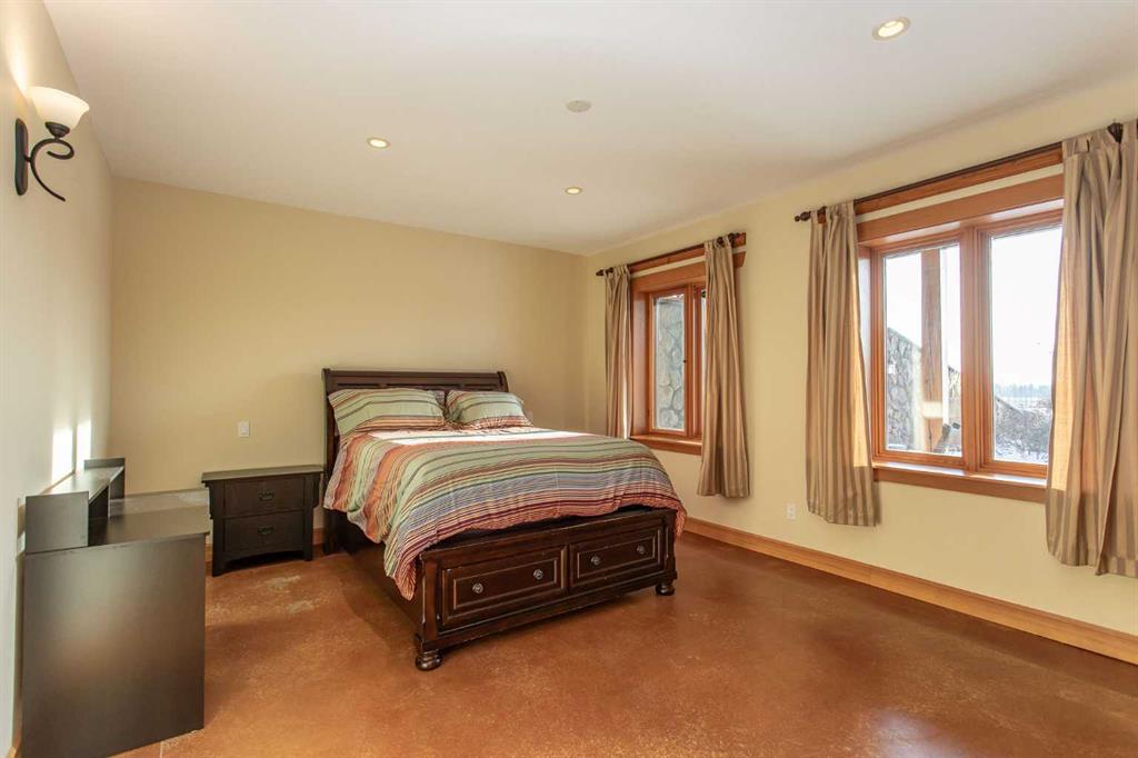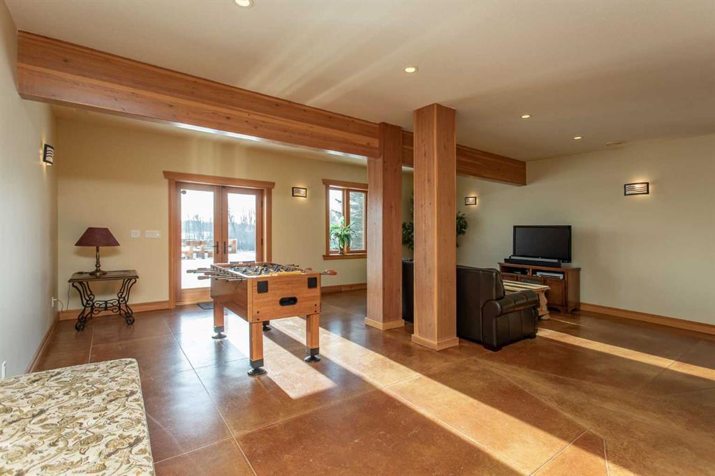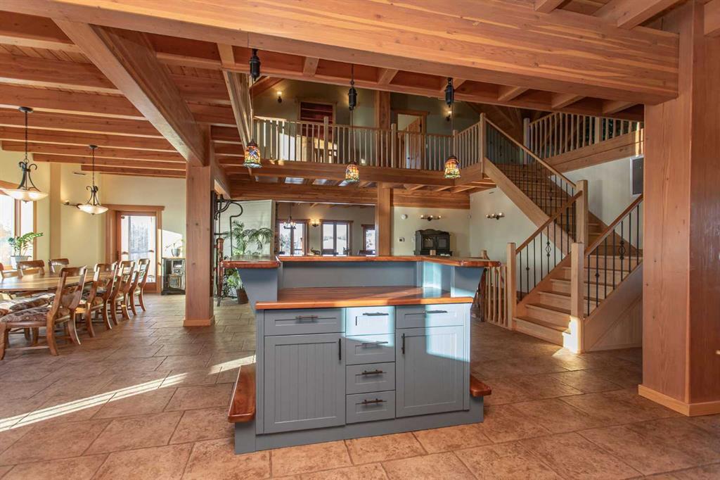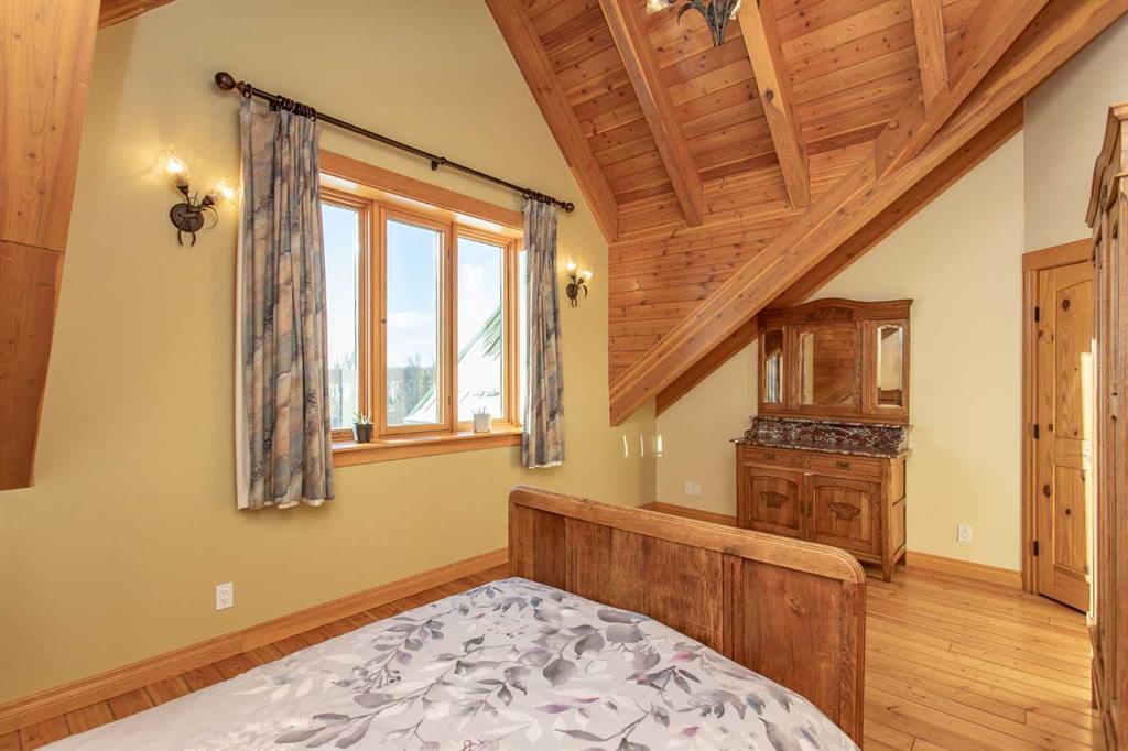 This exceptional 6.5-acre property offers a rare blend of architectural distinction, quality construction, and thoughtful design, set against sweeping panoramic views just minutes from Lacombe. Zoned Ag and meticulously maintained, the manicured yard site is peaceful, private and designed for both lifestyle enjoyment and long-term efficiency. At the heart of the property is a stunning European-inspired, chalet-style two-storey home built in 2008, offering over 7,000 sq ft of developed living space. Constructed entirely with ICF concrete (no stick framing), the home is remarkably solid, quiet, and energy efficient, featuring one-foot-thick exterior walls, concrete floors throughout, and a Super-B insulated roof. Inside, Douglas Fir post-and-beam construction, soaring ceilings, an interior mezzanine, and an open-concept layout create a warm, inviting atmosphere filled with natural light. Covered balconies and walkout basement invite you to enjoy seamless indoor-outdoor living. Fine craftsmanship is evident throughout, from fir hardwood and custom ash cabinetry to walnut countertops and travertine-finished bathrooms. The main living and dining areas are spacious and welcoming, anchored by a beautiful wood-burning fireplace. The kitchen is thoughtfully designed with a center island, wood countertops, new appliances, and generous cabinetry. The primary suite offers a true retreat, with a luxurious 5-piece ensuite. Additional bedrooms and flexible upper-level space provide options for a gym, studio, or quiet reading nook. The lower level is equally well designed, featuring a wine cellar, indoor sauna, recreation area, dedicated laundry room, and a hobby or canning room with sink. Comfort and efficiency are seamlessly integrated with a hybrid geothermal heating and cooling system, in-floor radiant heat on all levels with individual room controls, triple-pane windows, advanced air filtration, humidity control, and zoned HRV systems. The oversized heated attached garage (29’ x 39’) reflects the same quality, offering ICF construction, vaulted ceilings, floor drains, and water service. Completing the property is an impressive 13,500 sq ft shop, fully insulated and heated with radiant heat. With 14-ft ceilings, six overhead doors, mezzanine, office, kitchen, bathroom, mechanical rooms, 220V services, air compressor lines, floor drains, and a 20kVA diesel backup generator, the space is ideal for business use, storage, or hobbies. Additional highlights include a drilled well, new septic field for the residence, geothermal field with 16 vertical heat exchangers, an outdoor firepit, and a 3.5-acre lifetime easement providing added usable land while preserving long-term privacy. Designed to truly live, work, and play in one location, this estate-level acreage offers exceptional flexibility for large families, extended family living, and entrepreneurial or home-based business opportunities. Properties of this caliber must be seen to be fully appreciated.