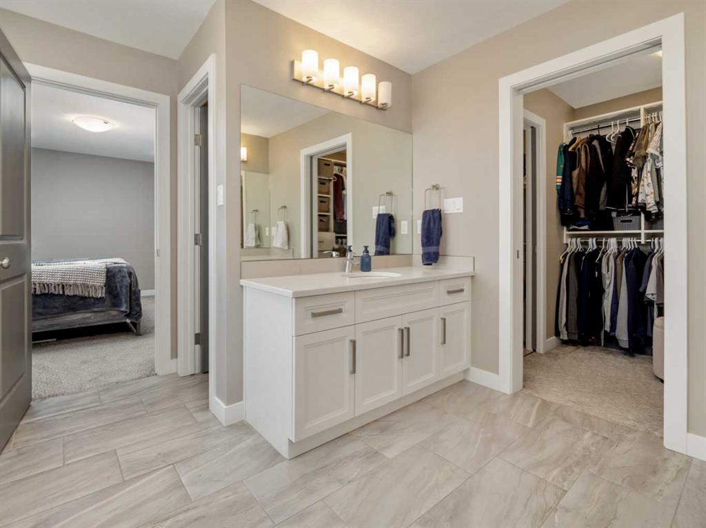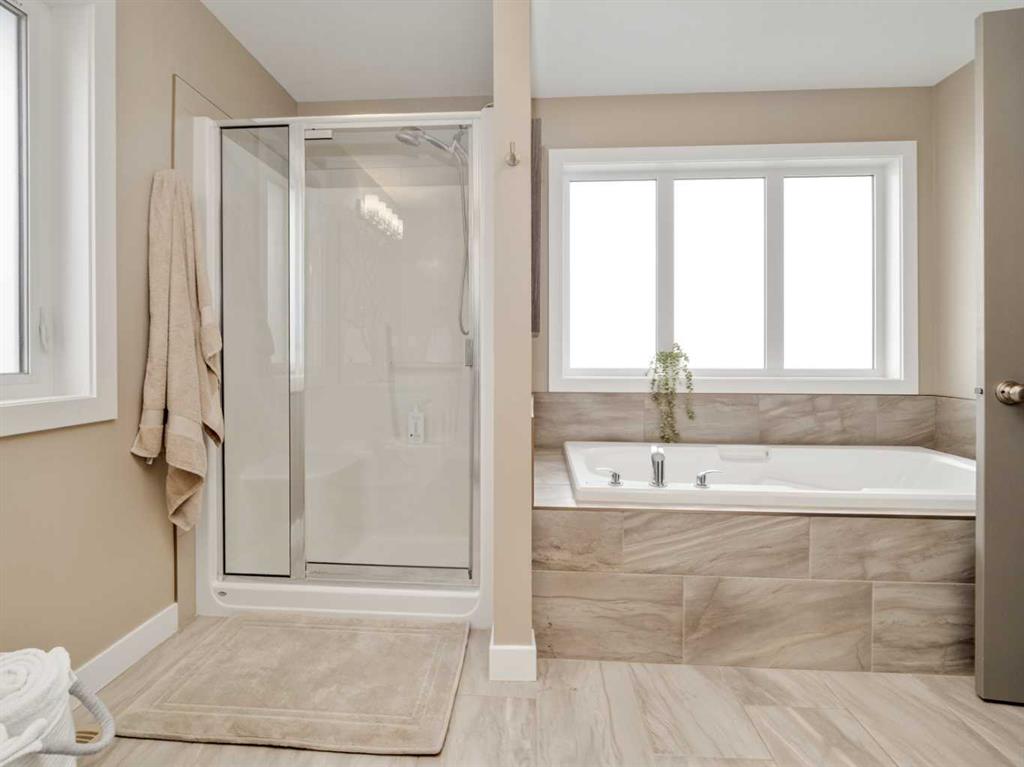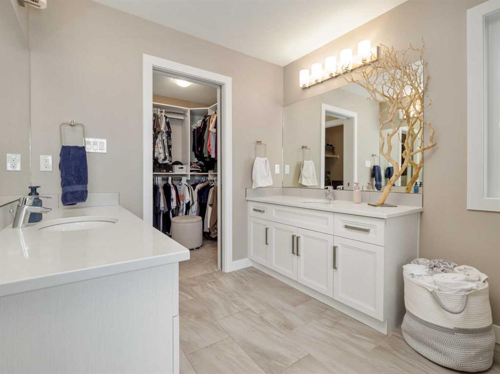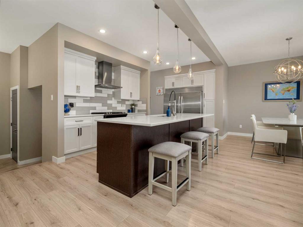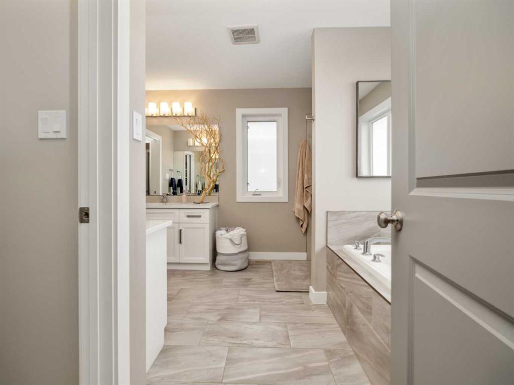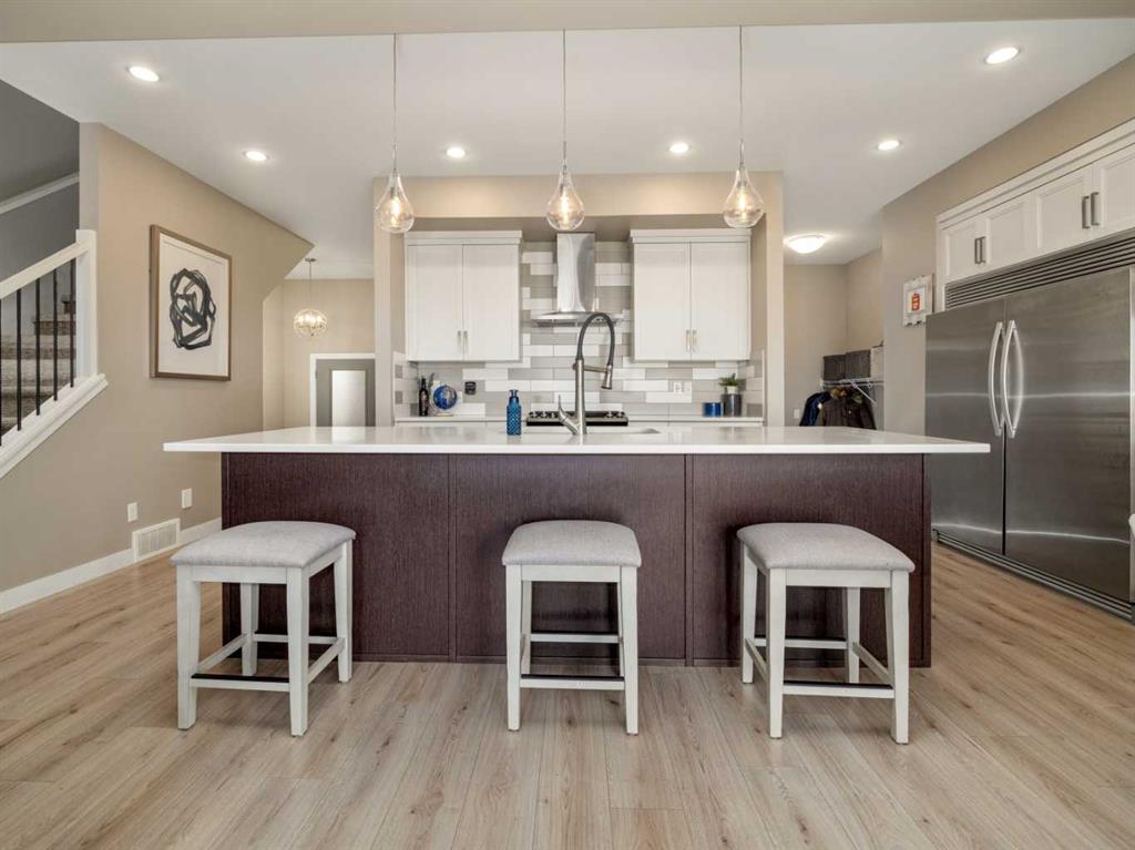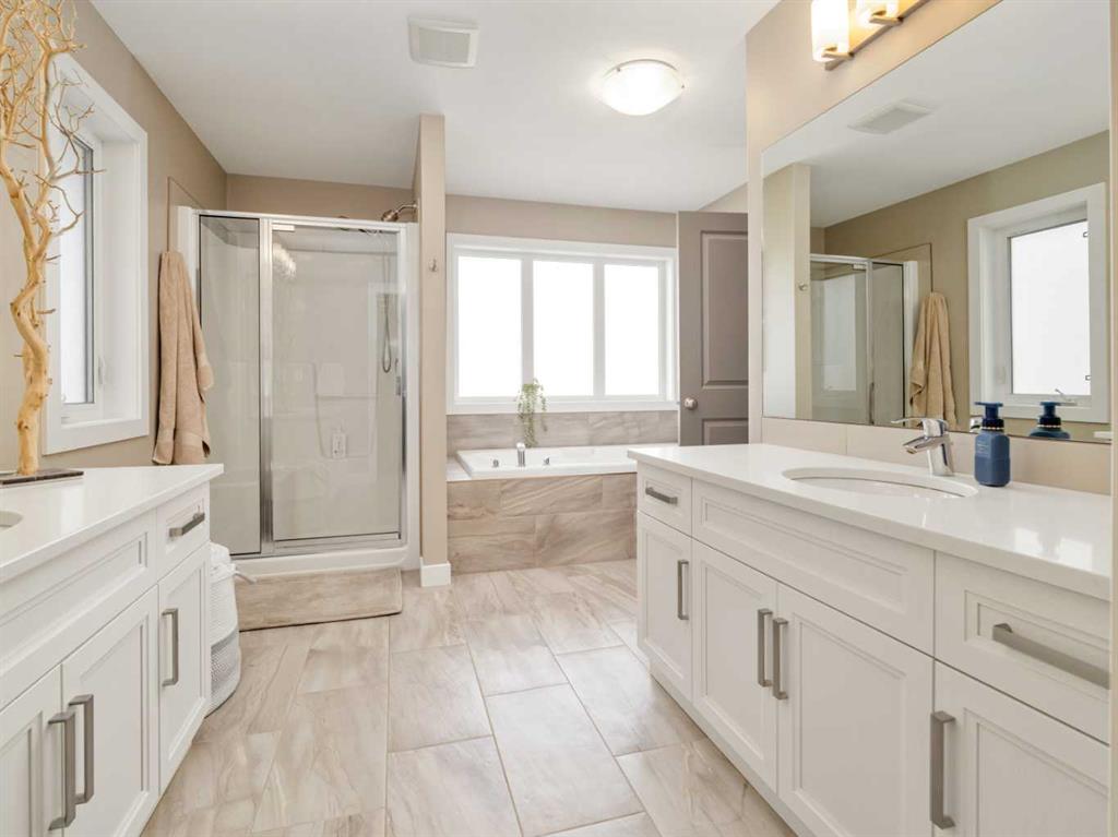 Welcome to this beautiful two storey by Van Arbor Homes. From the moment you walk up the covered front entry, this home just feels inviting. The main floor is bright, open, and designed for real life. The kitchen is a standout with white cabinetry, a massive island, gas stove, the double fridge/freezer combo that is sure to capture your attention and tons of lighting. It flows perfectly into the living and dining space, making it ideal for everyday living or hosting. You’ve also got a great front entry, a functional mudroom, and a powder room tucked away where it should be. Upstairs is where this home really shines. The primary suite is spacious and the ensuite feels like your own little retreat with two separate vanities, a soaker tub, and a large separate shower. The walk-in closet connects right to the laundry room, and you can also access it from the hallway, which just makes life easier. The basement is fully finished with a fourth bedroom, full bathroom, and a huge family room. Outside, the deck has added privacy glass on both sides, and the yard is set up with underground sprinklers. This home is fully loaded with extras including central air conditioning, central vacuum with attachments, and a heated garage with high ceilings and great storage. It’s one of those homes that just checks all the boxes.