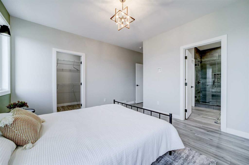 This stunning brand-new, fully developed, walk out bi-level build, is the definition of “turn key GORGEOUS” in a close, right beside a park! Featuring over 2600 square feet of entirely finished space with loads of beautiful upgrades, and designed with real-life functionality in mind. This one offers 5 bedrooms (2 up, 3 down) and 3 bathrooms, with a bright walkout basement that feels like a second main floor. The upper level is warm and stylish, anchored by a beautiful show stopping 72 inch fireplace in the living room, and a covered deck right there for BBQing or just taking in some fresh air, even in the rain or snow. The upgrades in this house include but are not limited to, a kitchen finished with granite countertops and full-height cabinetry that runs right to the ceiling—clean, modern, and timeless. A big central island in this open concept main living space. Energy star appliance package in this energy star rated house, that includes washer, dryer and a gas stove. This one also features main floor laundry. The primary suite located on the main floor is a standout with a large walk-in closet and stunning private ensuite including a gorgeous walk in custom built shower, dual vanity in granite with loads of counter space, and a separate water closet. The additional bedrooms are generously sized throughout, giving you flexibility for kids, guests, office space, or all of the above. Downstairs is where this home really surprises: 9’ ceilings, oversized windows, huge family room, and a wet bar for entertaining, secondary laundry for convenience, and its a walkout! Add instant hot water on demand, and a front attached double garage, plumbed for heat that features a huge upper open space for a mezzanine or a lift- and you’ve got a home that hits hard on value at its list price. If you’ve been waiting for a move-in-ready new build that checks every box, in a close, next to a park, for under $600K- this is the one. Call your agent today and check it out before you miss it!