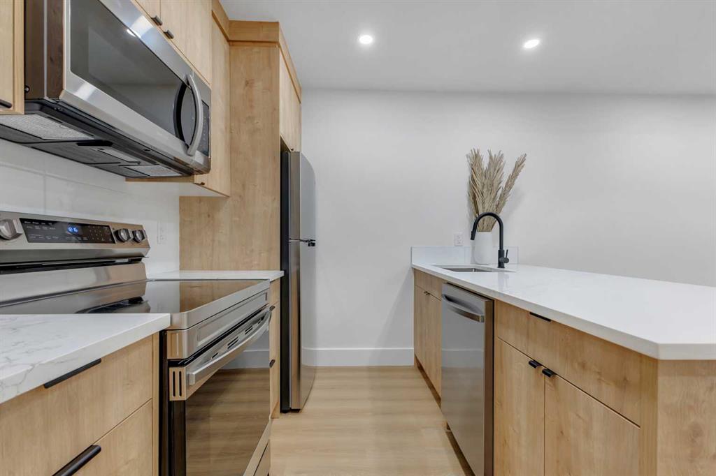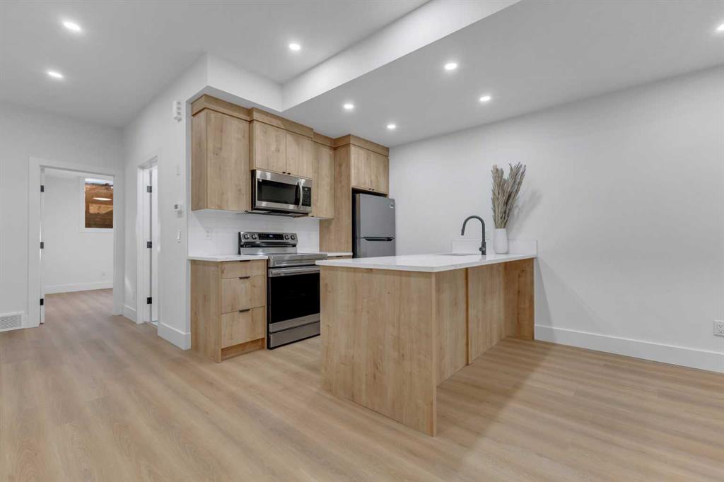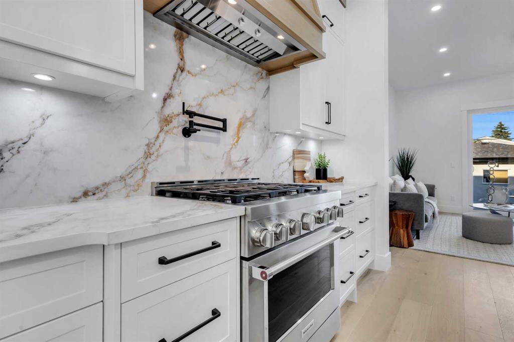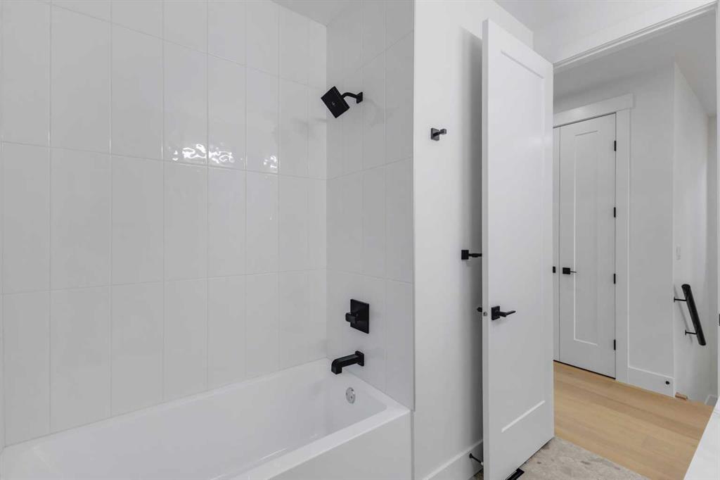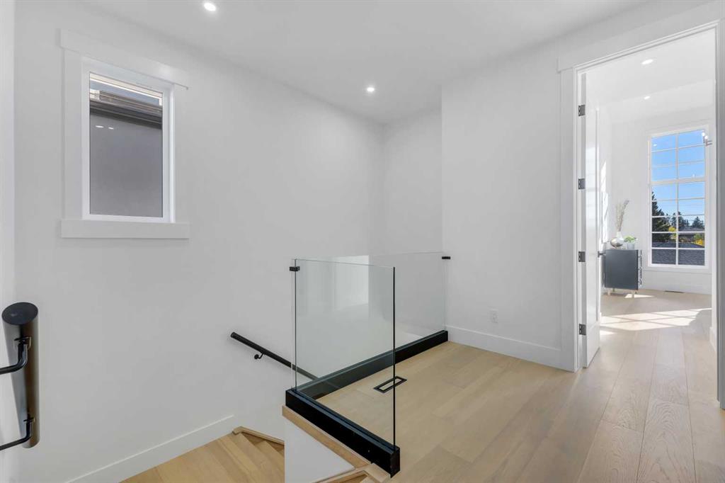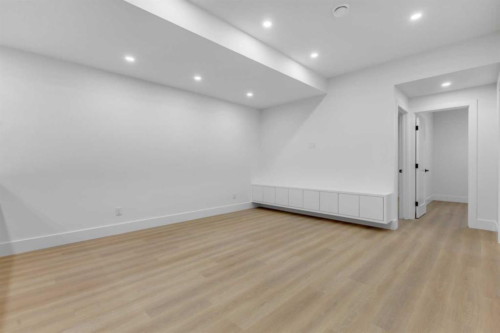 Don’t miss this stunning modern infill in the heart of ROSSCARROCK, designed with HIGH-END FINISHES, a WALKTHROUGH BUTLER’S PANTRY, and a RARE 3-BED, 2-BATH LEGAL LOWER SUITE (approved by the city). With a functional open-concept layout, upscale details, and a prime inner-city location, this home delivers a perfect blend of style and practicality. The spacious foyer welcomes you inside with direct access to the formal dining area, bathed in natural light from oversized windows, making it an ideal space for hosting gatherings or enjoying everyday meals. A walkthrough butler’s pantry seamlessly connects the dining room to the chef’s kitchen, offering custom cabinetry, a beverage fridge, a sink, and additional storage—perfect for entertaining and meal prep. The kitchen itself is a showstopper, featuring ceiling-height cabinetry, quartz counters, a full-height backsplash, and a large central island with bar seating. A stainless-steel appliance package includes a French door fridge, gas cooktop, wall oven, microwave, and dishwasher, ensuring both function and style. More storage is offered by the eye-catching coffee station or wine area, enhanced with LED lighting and glass displays. A main floor home office off the kitchen adds even more convenience for a work-from-home set up. The bright and open living room is designed for comfort and elegance, featuring an inset gas fireplace with a full-height tile surround with built-in cabinetry, and sliding patio doors taking you out to the rear deck. The rear mudroom helps keep daily essentials organized, and an upscale powder room completes the main level. Upstairs, the primary suite is a true retreat with vaulted ceilings, expansive windows, and a spacious walk-in closet. The spa-like 5-pc ensuite is designed for relaxation, featuring heated tile floors, dual sinks, a freestanding soaker tub, and a walk-in shower with full-height tile surround. Two additional secondary bedrooms share a well-appointed 4-pc bath, while a nook on the landing provides the perfect study space and a full laundry room with extra storage ensures everyday convenience. The legal lower suite (approved by the city) is a standout feature, offering a private side entrance and modern finishes as the rest of the home. With 9-ft ceilings, engineered hardwood floors, 2 FULL BATHS AND 3 FULL BEDS, this suite is ideal for tenants, extended family, or additional living space! The 4-pc baths feature tub/shower combos with full-height tile surrounds. The open-concept kitchen and living area include quartz counters, custom cabinetry, a full-size fridge, electric range, and separate laundry. Rosscarrock is a vibrant inner-city neighborhood, offering quick access to downtown via Bow Trail, transit options like Westbrook C-Train Station, and fantastic shopping & dining on 17th Ave! Outdoor lovers will appreciate Edworthy Park, Douglas Fir Trail, and Shaganappi Point Golf Course, plus top-rated schools just minutes away! *Photos from show suite.