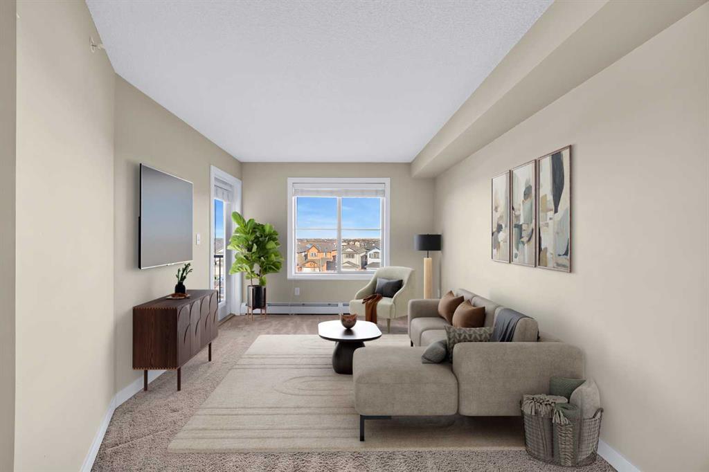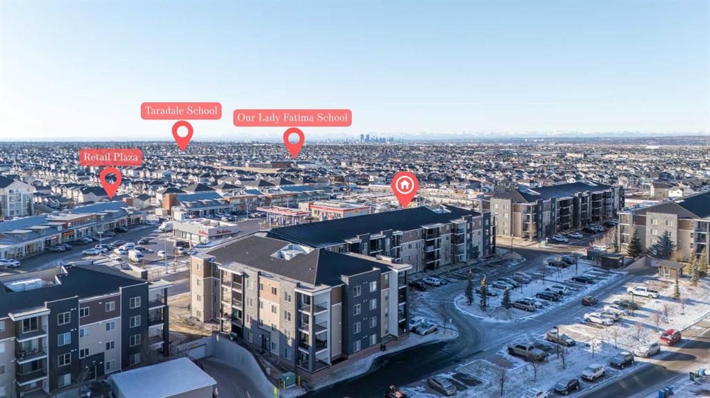 This bright top 4th-floor condo offers 507 sq. ft. of functional living space, conveniently located close to the elevator. The unit features a carpeted bedroom (8’11” × 11’4”) that fits a double size bed with side tables, a spacious living room, and a four-piece bathroom with a granite countertop sink. The kitchen boasts a granite breakfast countertop, double sink, stove, microwave, dishwasher, and a brand new fridge,. Additional highlights include a brand new in-suite washer and dryer and one titled underground parking stall (#463). Residents enjoy excellent convenience with a bus stop right outside, Tim Horton's, a gas station, and a strip mall including groceries just across the street. Genesis Centre, YMCA, and Saddletowne LRT are all within walking distance. Easy access to the airport, Stoney Trail, CrossIron Mills Mall, and Balzac make this location ideal for commuting and shopping.