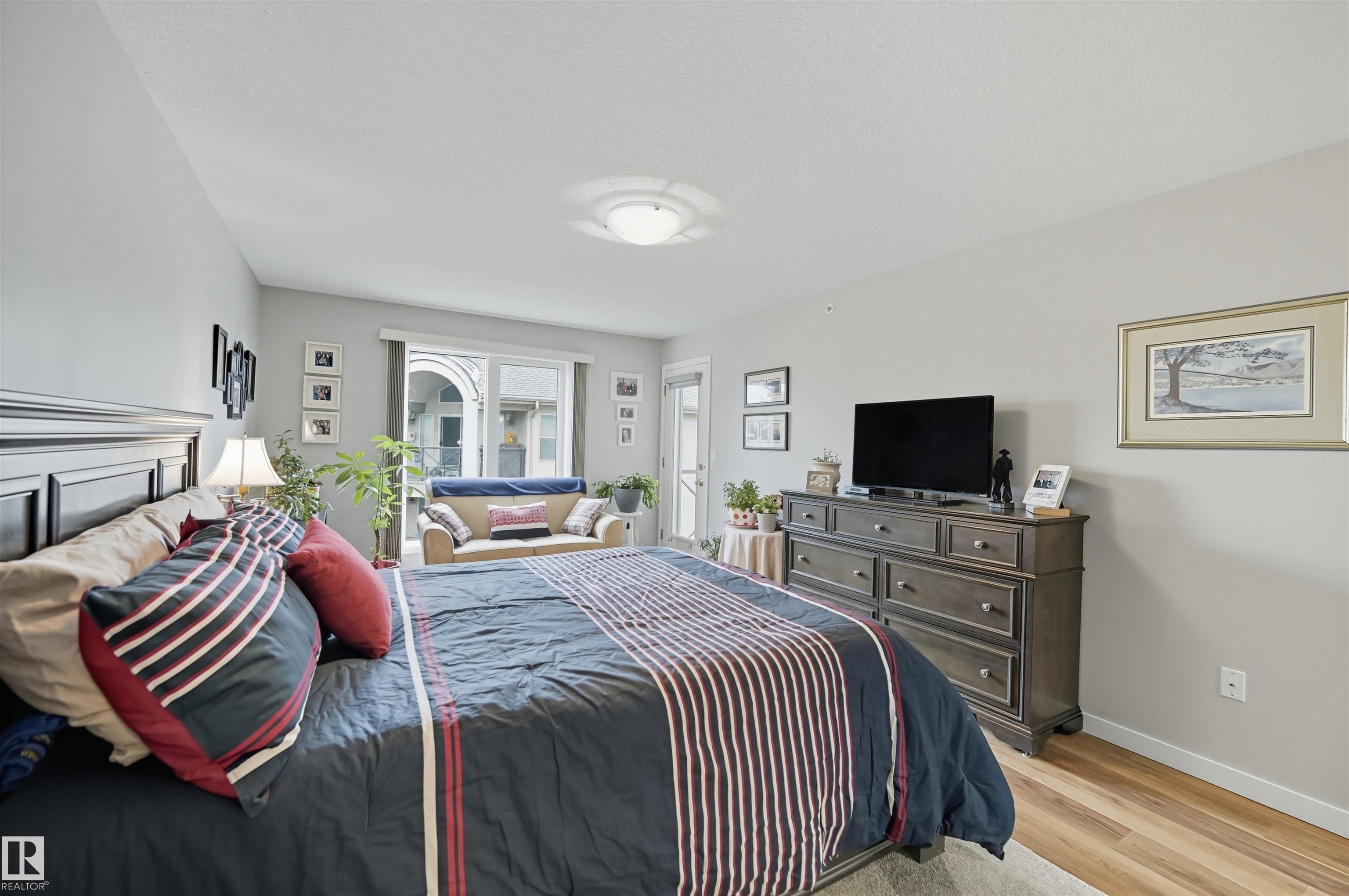 FANTASTIC UPDATED & SIZEABLE unit in a mature 55+ building--welcome to The Renaissance! TOP FLOOR unit has soaring ceilings & private balcony w/tree coverage. NEW LVP flooring & paint gives this unit a modern feel. Open concept kitchen (w/ NEW STAINLESS STEEL APPLIANCES), dining & living room. Huge primary bedroom has patio access, addtl space for seating, walk-in closet & bright ensuite. Spare bedroom for visiting guests, office, extra storage & an addtl 4pc bthrm. In suite storage room w/ washer/dryer plus plenty of storage throughout. Additionally this unit has 2 SECURED UNDERGROUND stalls! Building grounds are impeccably well-kept & have manicured/mature trees & paths. The Amenity Building contains a gym, billiards area, games room, library, social room & incredibly inviting! Easy access to transit (& future LRT) & major arteries. Plus Safeway directly across the street, along w/ other shopping, dining, medical, etc. Condo fees include heat (in-floor), water & shaw.