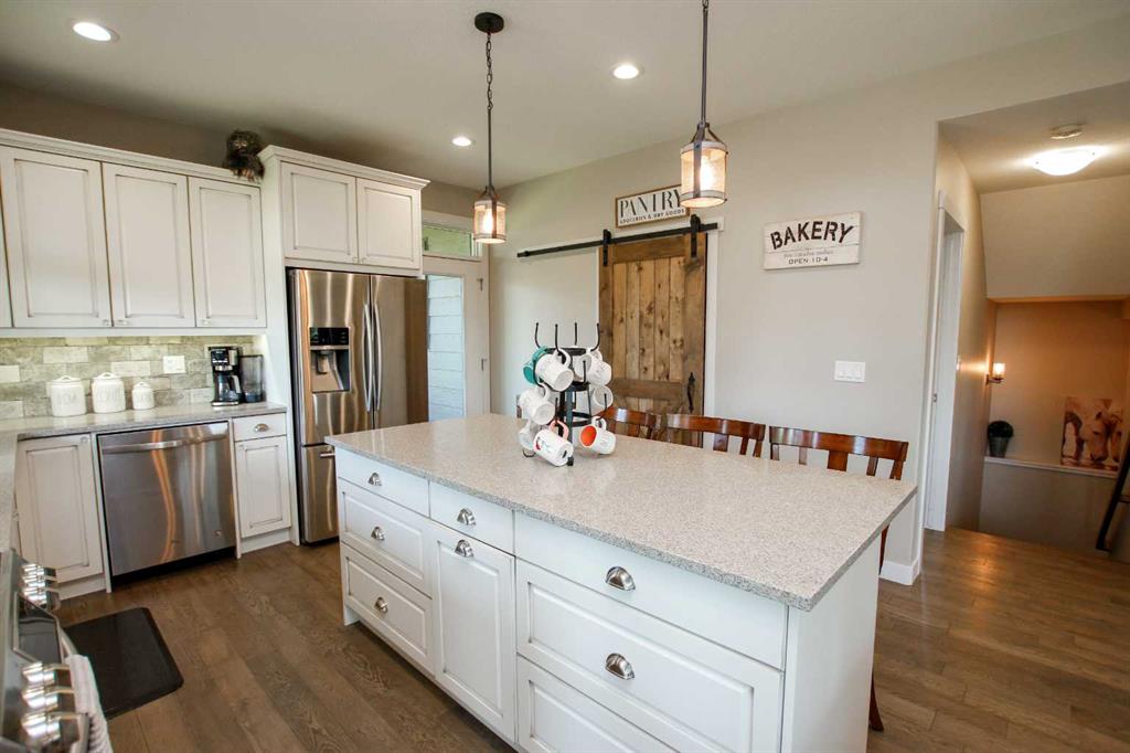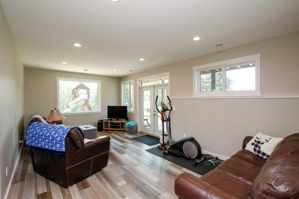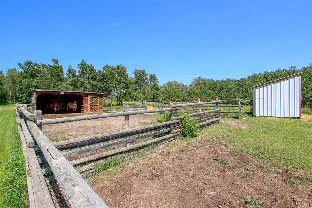 157.69 ACRES ~ FULLY DEVELOPED 2 STOREY WALKOUT ~ 5 BEDROOMS, 4 BATHS W/OVER 2000 SQ. FT. ABOVE GRADE~ 40' X 60' HEATED SHOP W/KITCHEN, BATHROOM, LAUNDRY & LOFT ~ SET UP FOR HORSES ~ 2 PONDS ~ Located just minutes east of Morningside and ideally positioned between Lacombe and Ponoka, this property offers the perfect blend of convenience and seclusion ~ Covered front veranda welcomes you to this well cared for home loaded with upgrades ~ The spacious foyer with 2-storey ceilings leads to the open concept main living space featuring hardwood flooring, high ceilings and an abundance of large windows that fill the space with natural light ~ The stunning kitchen offers an abundance of white cabinets, tons of quartz counter space including a large island with an eating bar, full tile backsplash, under cabinet lighting, window above the sink with a view, upgraded stainless steel appliances, and access to the wrap around deck and yard ~ Easily host large gathering s in the dining room that offers a second garden door with access to the wrap around deck ~ The living room is a generous size and is centred by a cozy fireplace that features a stone surround, raised hearth and a mantle ~ The primary bedroom can easily accommodate a king size bed plus multiple pieces of furniture, has dual closets with built in organizers and an ensuite with a walk in shower and oversized vanity with a built in desk ~ The home office has large windows that fill the space with natural light and is located next to the 2 piece bathroom ~ Laundry is located in it's own room just off the foyer, and offers built in cabinets ~ Open staircase overlooks the main floor and leads to the upper level where you will find 2 generous size bedrooms, a 4 piece bathroom and a playroom or storage space ~ The fully finished walkout basement with high ceilings, large above grade windows and operational in floor heat offers two additional bedrooms, a den/craft room, 4 piece bathroom, ample storage space and a large family room with a separate entry leading to a covered patio area with a hot tub ~ Just behind the house is a fire pit area and a playhouse ~ 40' x 60' shop is heated and fully finished inside with a full kitchen, 4 piece bathroom, laundry, and loft with another treed fire pit area ~ Fencing for horses with a barn and waterer ~ 2 ponds offer water supply for livestock ~ This beautiful property is surrounded by mature trees, rolling hills, scenic country views and is perfectly set up for a variety of uses; hobby farm, equestrian retreat or simply more space to live and grow! Seller receives annual surface lease of $3,000/year.