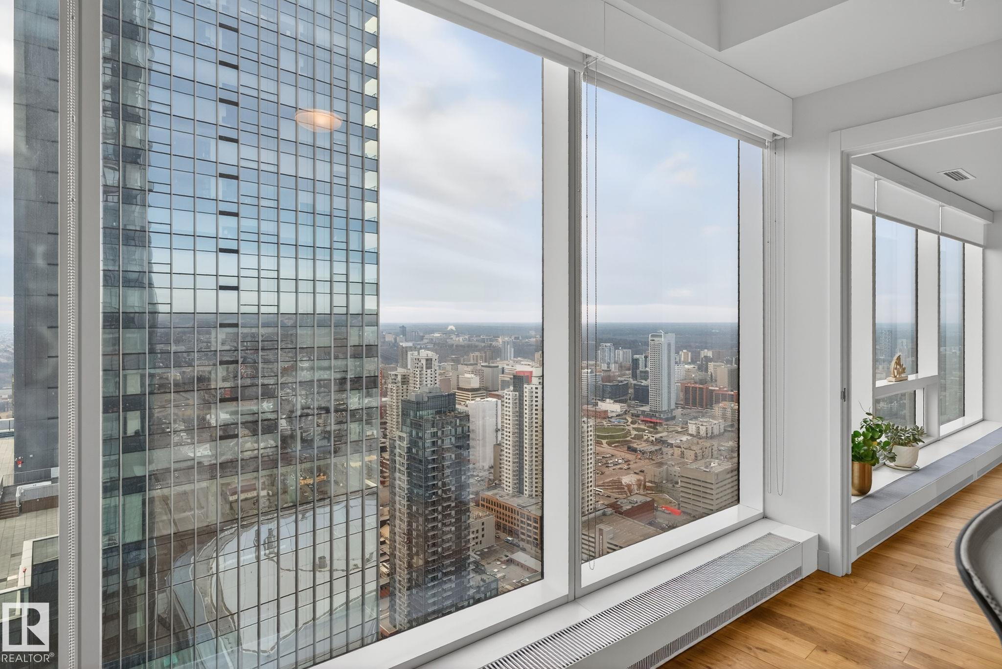 Welcome to THE LEGENDS PRIVATE RESIDENCE, where LUXURY, LIFESTYLE & LOCATION merge in Edmonton’s most iconic high-rise. Perched high above the ICE DISTRICT, this WEST-FACING CORNER SUITE showcases FLOOR-TO-CEILING WRAP-AROUND WINDOWS, incredible SUNSET VIEWS, and DIRECT PEDWAY ACCESS to Rogers Place, City Market Mall, dining, shopping, and year-round entertainment. Inside, enjoy OPEN-CONCEPT LIVING, elegant finishes, TWO SPACIOUS BEDROOMS WITH SPA-INSPIRED ENSUITES, plus a versatile DEN for your office or quiet retreat. Step out onto TWO PRIVATE BALCONIES to take in the skyline. Residents enjoy WORLD-CLASS AMENITIES: indoor POOL, HOT TUB, multiple LOUNGES, chic PARTY ROOMS, private OUTDOOR PATIOS, secure entry, and exclusive access to ARCHETYPE FITNESS. This is DOWNTOWN LUXURY LIVING at its finest.