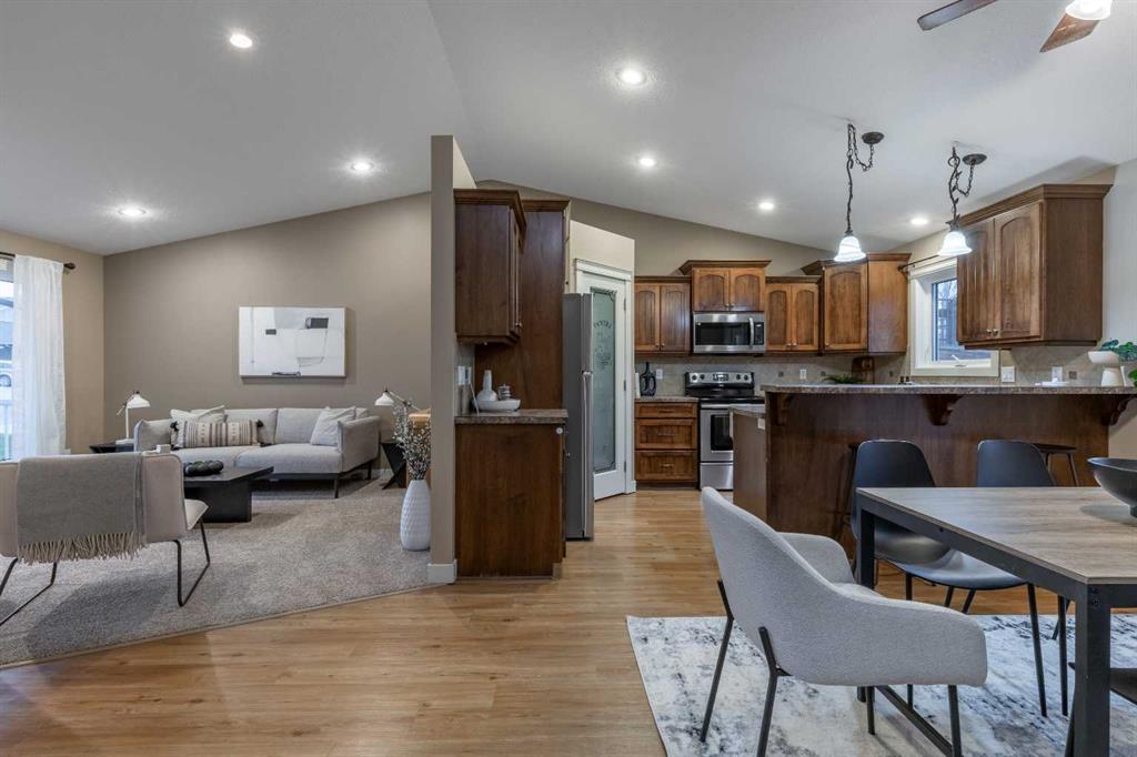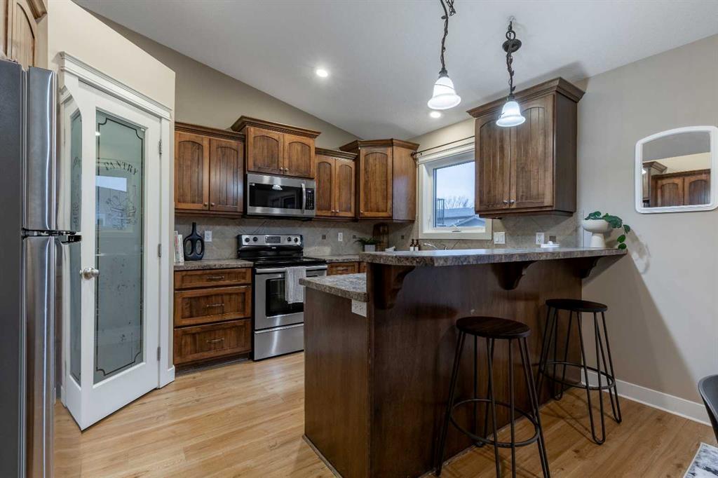 This illegally suited bi-level property features two beautiful units with their own appliances and an ideal location near all Coalhurst amenities! Step past the attached double garage and over the front porch and you'll enter into a large bright living room. Further in, the kitchen features a breakfast bar, dining area, and corner pantry, sure to be a hit with the chef in your family. Two bedrooms can be found down the hall with a full four-piece bath nearby. The primary bedroom at the rear of the main-floor unit includes a four-piece ensuite bath and walk-in closet, creating an ideal layout for families. In the lower unit, two bedrooms are nestled comfortably beside an open-concept kitchen and living room, a full four-piece bath, and a separate laundry room. With a rear deck, rear gravel parking pad, and separate entry, this home is perfect for anyone looking to expand their existing portfolio, live up and rent down, or set up a luxurious retreat for guests. If an illegally suited home in a great community sounds like the place you've been waiting for, give your REALTOR® a call and book a showing today!