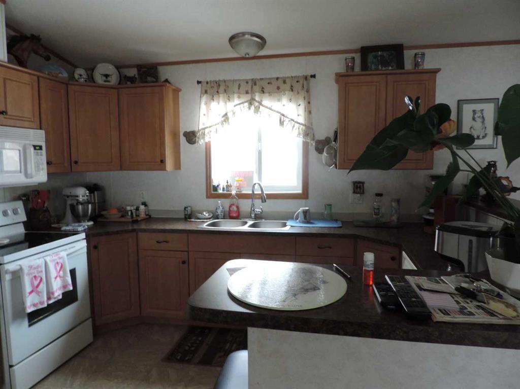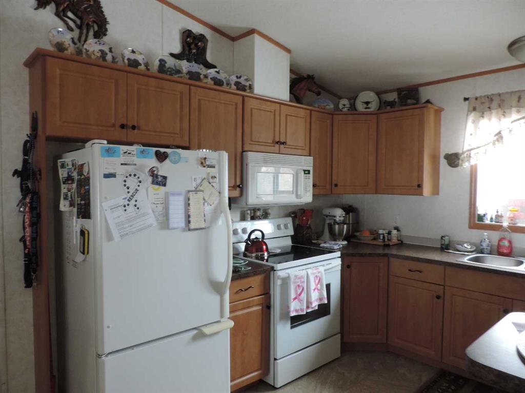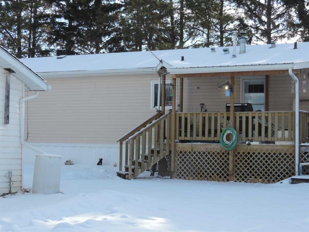 Here is an acreage that is waiting for a family to hobby farming! This 9.84 acres has a barn, sheds, corrals, trees, open area and so much more. Located about 5-10 minutes West from the growing hub of Rimbey. Rimbey has a hospital, churches, schools, commerce, swimming pool, entertainment, clubs, walking trails and so much more to offer. If you a bord its because you wan to be. The home has Vaulted ceilings with 1440 sq. ft. of living space containing four bedroom two large four piece baths (one being an ensuite). The kitchen and living room is open concept in design. Main floor laundry, Front and back deck, 10'x24' 2-tier, 8.6,x16' and a ground level 8'x11' with railings as well as a dog run complete this well kept living quarters. There is a heating 24x2 double detached garage, 220 wiring in a 12,x16; work shed plus a huge 34'x32' detached shop will keep your busy hand busy. there are other smaller sheds for the toy and other support equipment. The drive way has an entrance and an exit as well as being shelters with large pine treed. If you are looking for country living and yet close to people, then look no further; YOU ARE HOME.