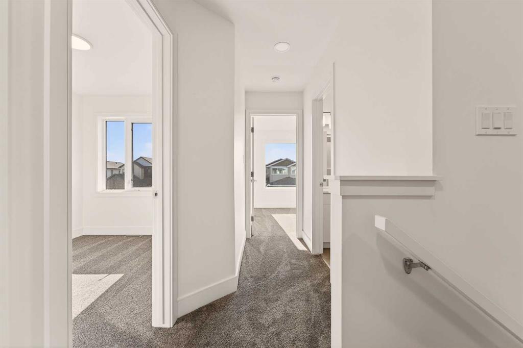 Welcome to the Pockton half duplex by Stranville Living Master Builder, a brand new home offering modern design, smart use of space, and no condo fees. This thoughtfully built property includes an attached single garage with a sizeable front driveway, plus the added convenience of a rear parking pad—something you rarely get with a home of this size. The main floor is bright and open, anchored by an impressively large kitchen that truly sets this home apart. Finished with quartz countertops, abundant cabinetry, and generous counter space, the kitchen is both stylish and highly functional. High-end appliances elevate the space, including a sleek induction cooktop, panelled Fisher & Paykel fridge, panelled dishwasher, and a built-in oven and microwave. A spacious built-in pantry keeps everything organized, while the peninsula with bar seating creates the perfect spot for casual meals or entertaining. Just beyond the kitchen is the open dining area, seamlessly connected to the main floor living room for an easy, flowing layout. From the dining room, step out onto the already-installed back deck, which leads into your private backyard and rear parking pad—ideal for everyday convenience or hosting friends and family. Upstairs, the second level features three spacious bedrooms, including a well-appointed primary suite complete with dual vanities, a walk-in shower, and a walk-in closet. The additional bedrooms are generously sized, making this home a great fit for families, guests, or a dedicated home office setup. This is a clean, modern half duplex that delivers premium finishes, practical parking, and ownership simplicity—all without condo fees.. GST is included in the price as well as a 10 year new home warranty.. Photos are virtually staged.