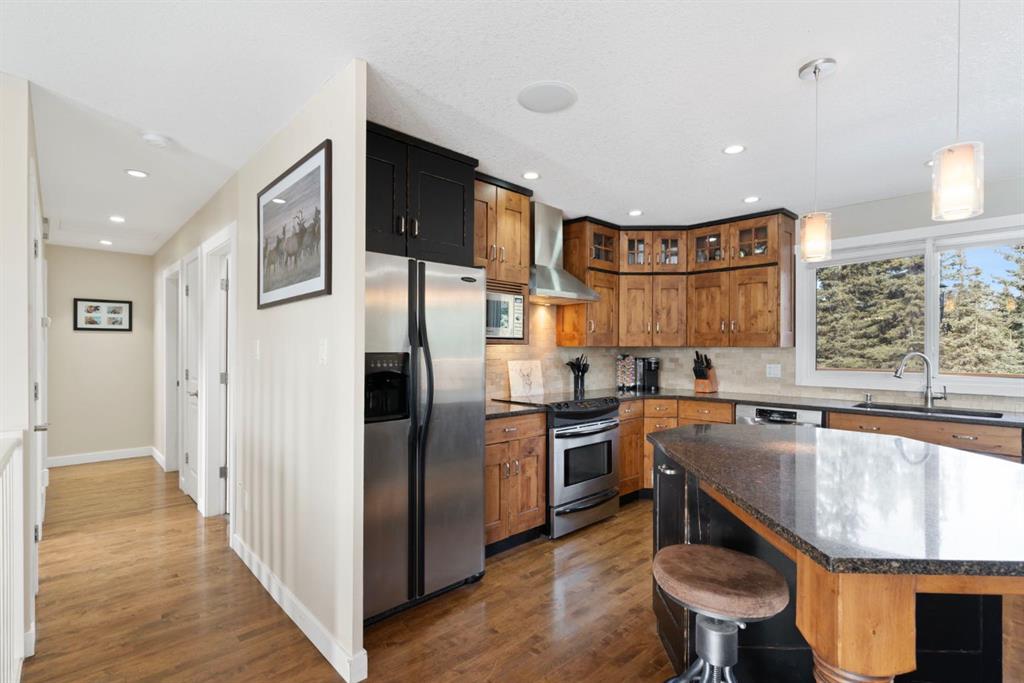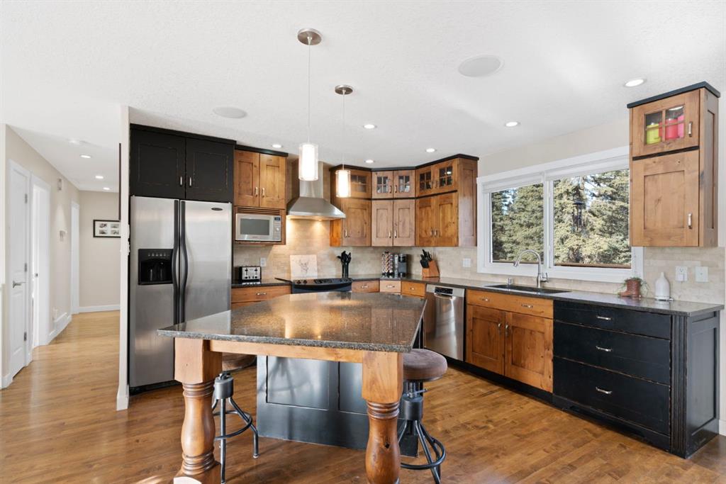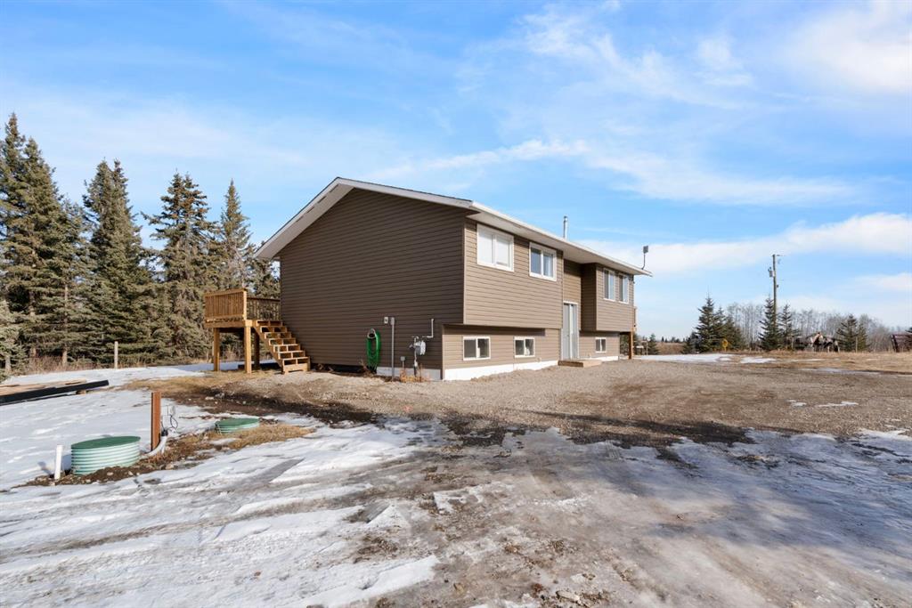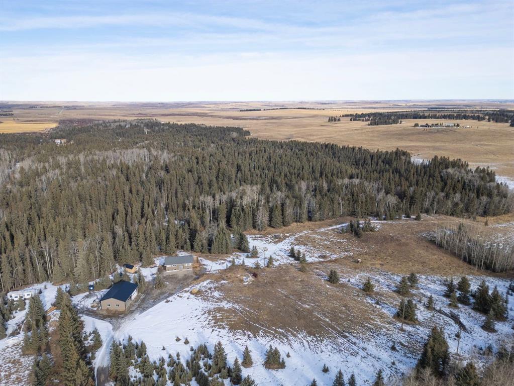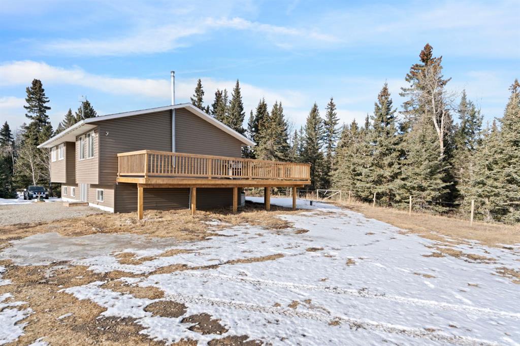 You're invited to our open house this Saturday February 7th from 11 am to 2 pm at 44226 Township Road 242. This property is set back from the road and sheltered by a beautiful stand of mature spruce and poplar trees, the home enjoys exceptional privacy while still providing open pasture and yard space for animals, recreation, or future plans. The setting offers wide-open skies, tranquil surroundings, and true separation from neighbours. The well-maintained bi-level home features a bright and welcoming main floor with warm hardwood flooring and large windows that capture natural light and views of the surrounding landscape. The kitchen is both functional and inviting, complete with rich wood cabinetry, granite countertops, stainless steel appliances, and a central island with seating. The adjacent dining area opens onto an expansive wraparound deck that spans the length of the home, creating a seamless indoor-outdoor connection and providing incredible space for entertaining, relaxing, and enjoying the peaceful setting. The main level includes a spacious primary bedroom, two more bedrooms, and a full 4-piece bathroom. The unfinished downstairs offers a generous recreation space, laundry area, and substantial storage, with room to further customize to suit your needs. This home has new siding, new roof, 100 ft well, New septic system, New services in last 3 years. Home was built in 1980 and moved onsite in Nov 2021 with updates done. The detached 40 x 32 ft shop is a standout feature, offering 12 ft high ceilings, overhead doors, excellent lighting, dedicated workspace, and abundant room for vehicles, tools, and projects. Whether you’re a hobbyist, tradesperson, or simply need serious storage, this shop delivers. If you’ve been searching for a private acreage that offers usable land, established trees, and functional infrastructure, all within a reasonable drive to surrounding communities, this property presents an exceptional opportunity to enjoy rural living without compromise." Mountain views from the West side of the land. Great quad-ing trails and lots of deer, elk, moose and other creatures have been seen on this property. Properties in this area sell fast. Call to view before its gone.