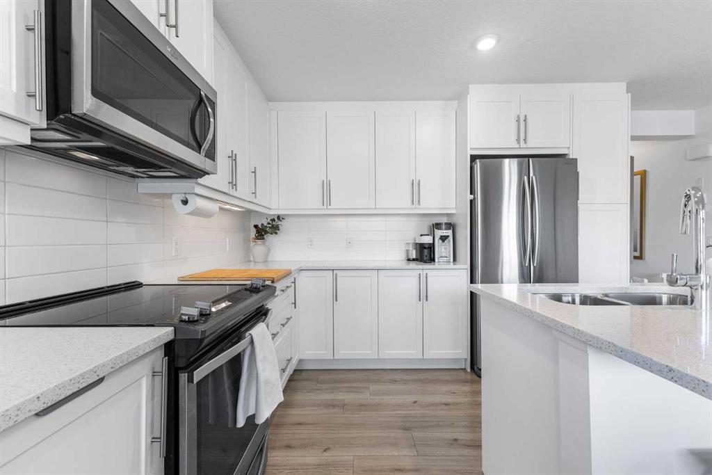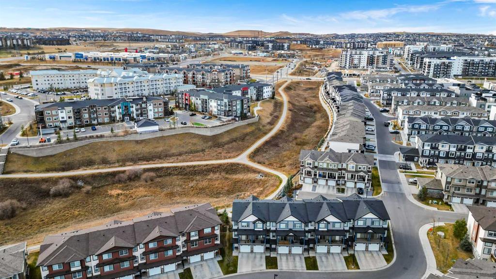 This stunning 3-bedroom, 2.5-bathroom townhome at 443 Sage Hill Grove NW shows better than a showhome. Impeccably maintained, fully upgraded, and perfectly positioned with unobstructed SW ravine views and direct access to the pathway system. One of only two homes in the entire development offering this rare combination of 13-foot living-room ceilings and a peaceful natural backdrop, this property delivers a sense of light, space, and serenity that truly stands apart. Step inside and you’ll immediately appreciate the open, airy layout, designer lighting, feature brick accent wall, and expansive windows that flood the home with natural light. The kitchen features upgraded stainless appliances (including a counter-depth fridge), modern cabinetry, and sleek double-roller blinds for privacy and light control. Upstairs, you’ll find two spacious ensuite bedrooms, an exceptional layout for professionals, guests, or shared living, plus convenient upper-floor laundry and generous storage. The fully finished lower level adds a bright third bedroom, perfect for a home office, guest suite, or fitness space. Comfort meets efficiency with central air conditioning, updated railings and doors for a modern aesthetic, and a clean, neutral palette that feels fresh and move-in ready. The attached garage and private driveway provide parking for two vehicles, and there’s ample visitor parking right outside the door for friends and family. Enjoy the best of both worlds, a quiet, well-kept complex surrounded by greenspace, yet only minutes to Sage Hill Crossing, schools, grocery stores, coffee shops, and major routes. The $274 monthly condo fee covers exterior insurance, landscaping, snow removal, window washing, garbage/recycling, and overall grounds maintenance for true lock-and-leave convenience. This is your chance to own one of the most desirable units in the complex. A 10/10 home that feels brand-new, in an unbeatable location.