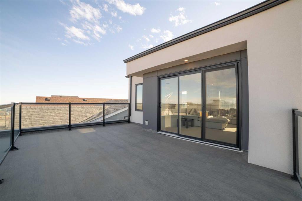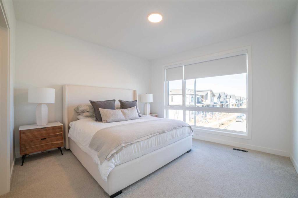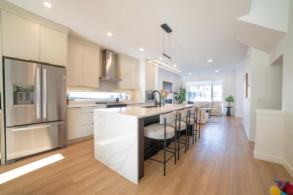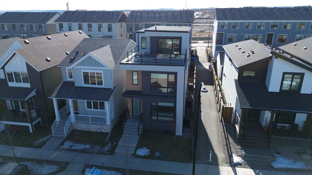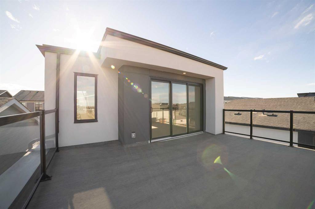 Don’t miss this fantastic 3 bedroom, 2.5 bath home offering nearly 2,100 sq ft of living space, ideally situated on a corner lot in the sought-after community of Alpine Park. The home features beautiful modern and elegant finishes throughout, including white oak luxury vinyl plank flooring, quartz countertops, soft-close kitchen and bathroom cabinetry, stainless steel appliances, ceramic tile, high-quality carpet, recessed lighting, knockdown ceilings, upgraded light fixtures, and bright off-white paint. The main floor boasts 9-foot ceilings. At the front, a spacious living room, complete with a built-in electric fireplace. The kitchen features an oversized waterfall island, ceiling-height cabinetry, pot drawers, built-in microwave, gas range, executive hood fan, coffee bar, built-in mini fridge, and additional windows that fill the space with natural light. The dining area is tucked toward the backyard, creating a cozy dining experience, with floor-to-ceiling windows that bring in plenty of natural light. Upstairs, the 9-foot ceilings continue throughout the second floor. The large primary bedroom includes a spacious walk-in closet and an impressive ensuite featuring dual sinks, a soaking tub, and a tiled stand-up shower. Down the hallway you’ll find a conveniently located laundry room, a 4-piece bathroom, and two generously sized bedrooms, each with their own closet. The third floor offers an exceptionally large bonus room, surrounded by windows on nearly every side, along with an oversized private rooftop patio with glimpses of downtown Calgary. This space is perfect for relaxing on summer evenings or hosting friends and family for weekend BBQs. The home also includes a detached two-car garage, private fenced backyard, central air conditioning, and a large unfinished basement with endless possibilities. This home is in a great community with lots of green space, water features, upcoming school and commercial developments. Its a 5 min drive away from many existing schools, grocery stores, restaurants and a Costco!