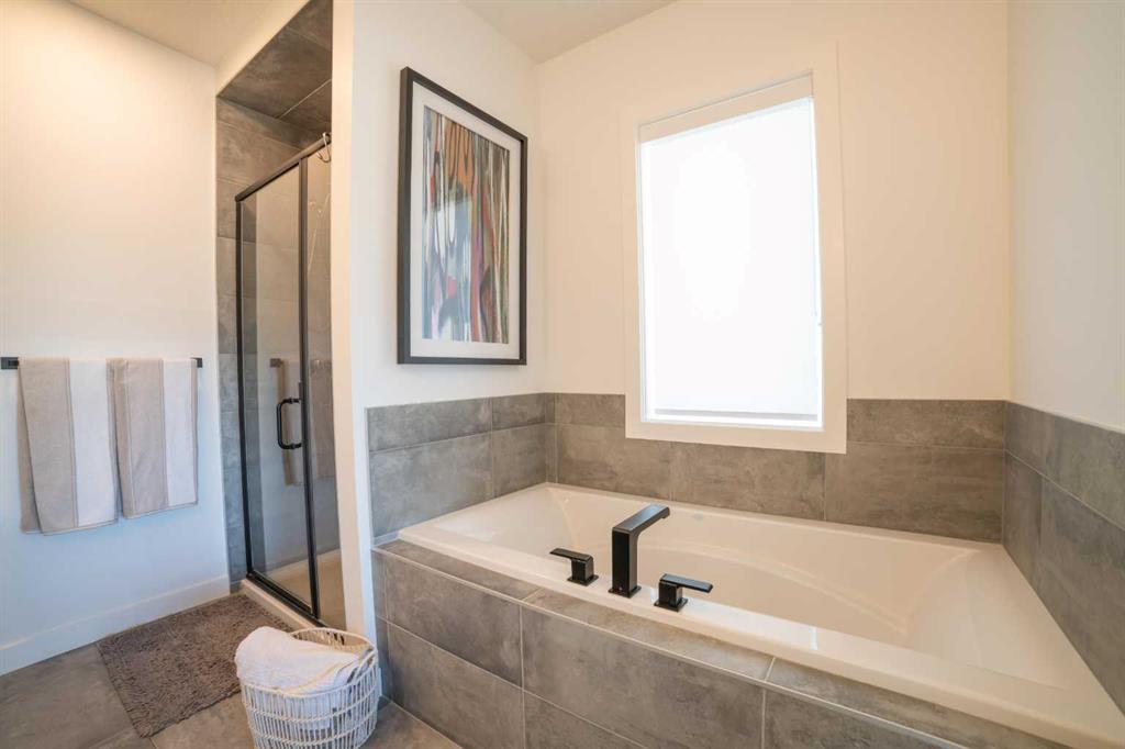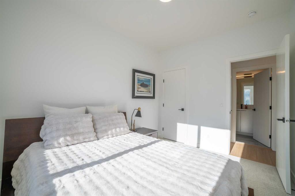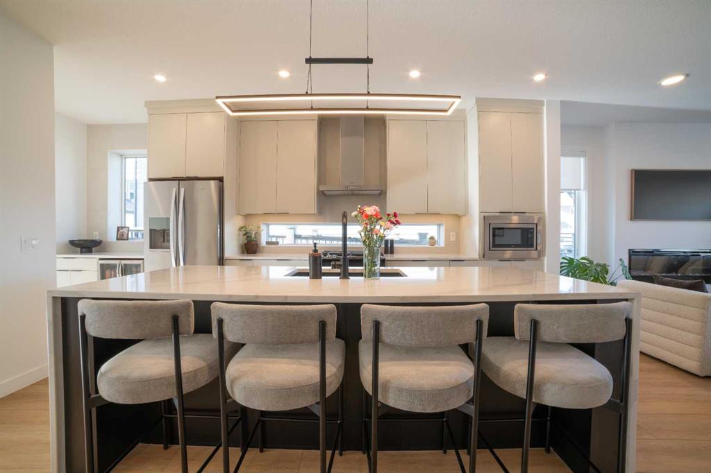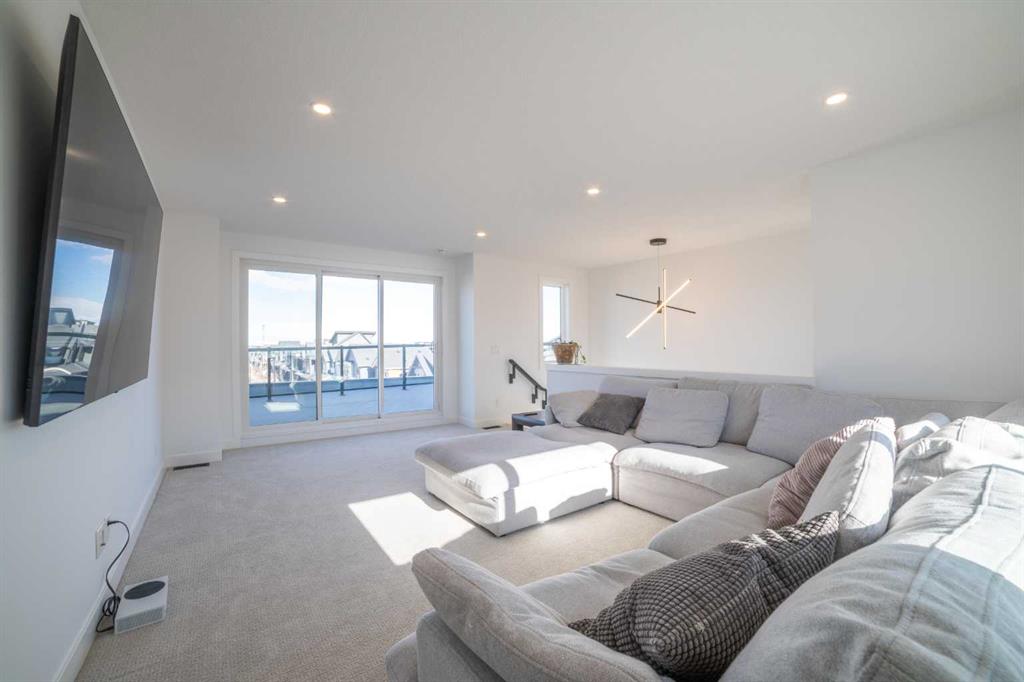 Don’t miss this fantastic 3 bedroom, 2.5 bath home offering nearly 2,100 sq ft of living space, ideally situated on a corner lot in the sought-after community of Alpine Park. The home features beautiful modern and elegant finishes throughout, including white oak luxury vinyl plank flooring, quartz countertops, soft-close kitchen and bathroom cabinetry, stainless steel appliances, ceramic tile, high-quality carpet, recessed lighting, knockdown ceilings, upgraded light fixtures, and bright off-white paint. The main floor boasts 9-foot ceilings. At the front, a spacious living room, complete with a built-in electric fireplace. The kitchen features an oversized waterfall island, ceiling-height cabinetry, pot drawers, built-in microwave, gas range, executive hood fan, coffee bar, built-in mini fridge, and additional windows that fill the space with natural light. The dining area is tucked toward the backyard, creating a cozy dining experience, with floor-to-ceiling windows that bring in plenty of natural light. Upstairs, the 9-foot ceilings continue throughout the second floor. The large primary bedroom includes a spacious walk-in closet and an impressive ensuite featuring dual sinks, a soaking tub, and a tiled stand-up shower. Down the hallway you’ll find a conveniently located laundry room, a 4-piece bathroom, and two generously sized bedrooms, each with their own closet. The third floor offers an exceptionally large bonus room, surrounded by windows on nearly every side, along with an oversized private rooftop patio with glimpses of downtown Calgary. This space is perfect for relaxing on summer evenings or hosting friends and family for weekend BBQs. The home also includes a detached two-car garage, private fenced backyard, central air conditioning, and a large unfinished basement with endless possibilities. This home is in a great community with lots of green space, water features, upcoming school and commercial developments. Its a 5 min drive away from many existing schools, grocery stores, restaurants and a Costco!