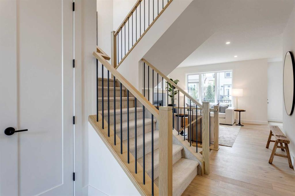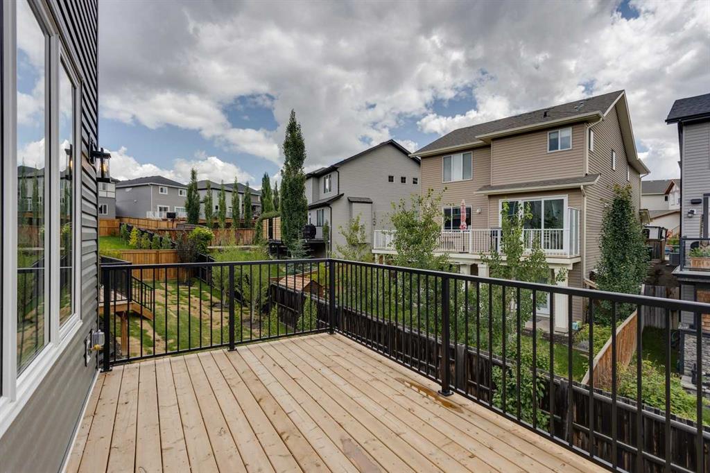 Introducing the “Henry”! Nestled in the foothills of Cochrane, on the doorstep to the majestic Rocky Mountains. 46 Heritage Close, showcases the quality workmanship and attention to detail in both design and finishings of Fifth Avenue Homes. This home offers 2,100 sq ft above grade with potential to develop another 900 sq ft in the walk-out lower level (builder has plans available and can develop for additional cost). The main floor features a great room with a gas fireplace, the open concept is perfect for entertaining and family gatherings. The beautifully designed kitchen is a dream! Custom cabinets, top-of-the-line fixtures, pantry, Quartz counters and table-top island with stool seating. The eating area adjoining the kitchen has room for a full-size dining suite and access to the 14.5'x9' deck with gas BBQ line. There is a front flex room that can be used as an office, den or formal dining room. Completing the main floor: 2 piece bathroom and mud room with access to the double garage. Engineered hardwood, custom tile work and 9’ ceilings throughout the main floor. The upper level is perfectly designed for a large family! The bonus has room for toys, TV or computer desk, laundry room, 2 spacious bedrooms plus the primary suite with a spa-style ensuite and walk-in closet. The home sits on an east exposure, walk-out lot in the popular community of Heritage Hills, close to the park and tot lot. Minutes to the 1A highway west to the mountains or head east for an easy commute to Calgary; close to old town Cochrane with its many shops and restaurants.