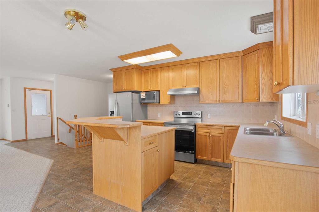 This Great Home is ready for the next story. It was built with function in mind and is perfect for the family or the empty nesters. The outside Stucco finish with the River Rock make this a very solid exterior with very little outside maintenance. The yard is fully landscaped, but low maintenance in mind. There is a back deck with Trex Decking and aluminum railing off the kitchen. On the parking pad in the back of the house there is a 30 RV plug to have the holiday trailer ready to go and easy to pack. When you walk into the home it opens up to the living room. The living room has a nicely appointed mantle fire place with the same river rock as the exterior of the home. This makes the front living area a cozy area to entertain or watch TV. On the north side of the main floor is the kitchen and dining area. The kitchen has a breakfast bar island to also enjoy meals, or everyone can sit at the dining room table. The kitchen has a full package of brand new stainless steel appliances. There is a 4 piece bathroom on the main just down the hall from the kitchen . The primary bedroom is attached to a 3 piece ensuite. The laundry is on the main floor and is just off the garage entry with a counter for folding and a pantry for the extra kitchen supplies. The garage and basement have full functioning in-floor heat. The mechanical room is in the basement. There is a forced air furnace and two hot water tanks, one for the domestic water along with one for the in-floor heat. The basement has a roughed in bathroom along with all the exterior walls drywalled, painted and electric outlets installed. It is an open foot print with all the potential to be a great living space for the family.