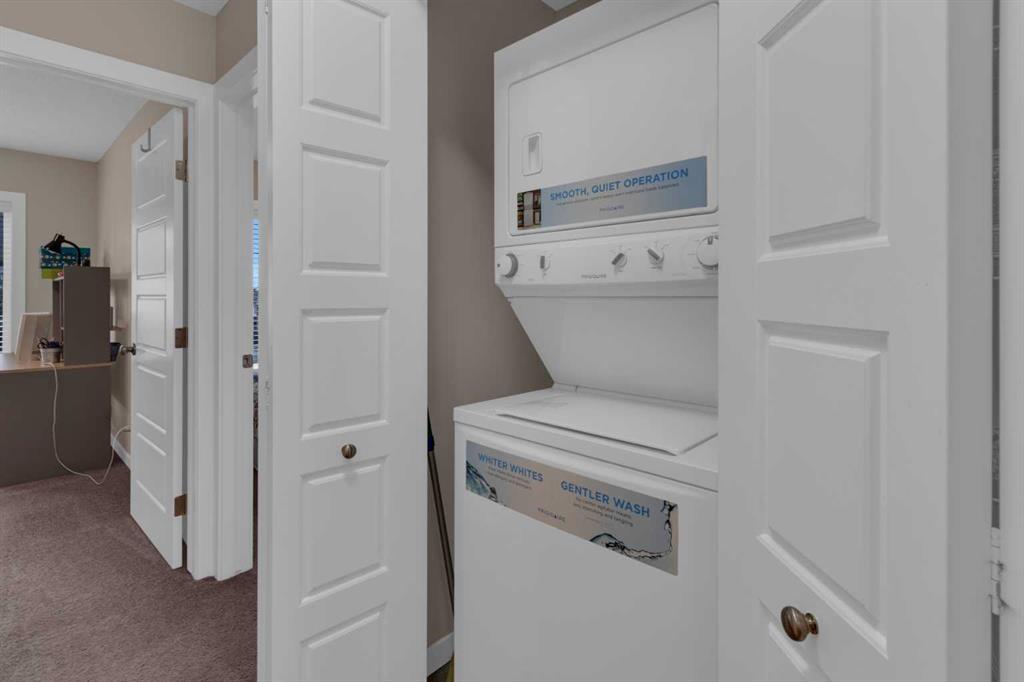 Step into contemporary elegance with this stunning, move-in-ready 4-bedroom 2.5 bath townhome with double attached garage in the highly desirable community of New Brighton. Offering over 1600 sq. ft of sophisticated living space, this property is perfectly suited for modern families, professionals, or first-time owners seeking comfort, convenience and quiet. Upon entry, the bright, open-concept main floor, showcases the gleaming hardwood floors and an abundance of natural light. The spacious living room flows seamlessly into the dining area and a chef-inspired kitchen, highlights stainless steel appliances, quartz countertops and ample cabinetry. Glass doors off the dining area lead out to your west-facing patio for effortless grilling and outdoor relaxation. Upstairs, you'll find three well-proportioned bedrooms. The generous primary suite is a true retreat, boasting a large walk-in closet and a luxurious 4-piece ensuite bath. Two additional well-sized bedrooms are perfect for children or guests, serviced by a second full bathroom with the convenience of a dedicated upper-floor laundry area. The lower level extends the living space with a fourth bedroom/office space/flex room and additional utility room with storage. Added convenience with a double attached heated garage plus guest parking directly across from the townhome. Located in a well-managed, pet-friendly complex, you're just moments from local schools, various parks, and sports fields and the renowned New Brighton Community Centre, offering year-round fun from splash parks to outdoor hockey, is a short drive away. Plus, the nearby shops, services, and dining of High Street in McKenzie Towne ensure everything you need is close at hand. Don't miss the chance to own an upgraded, stylish home in one of Calgary's most vibrant communities. Schedule your private viewing today!