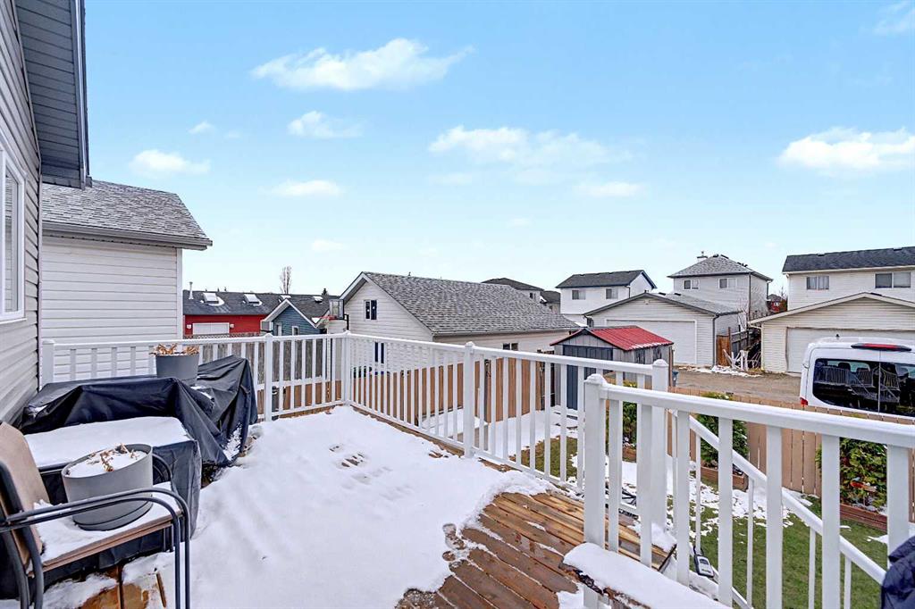 Welcome to this well-maintained bi-level home in the heart of Martindale, offering a functional layout and plenty of space for the whole family! The main level features a bright and open living room, a large dining area perfect for entertaining, and a spacious kitchen complete with newer stainless steel appliances. You’ll also find two comfortable bedrooms, a full 4-piece bathroom, and convenient access to the back deck—ideal for summer BBQs and relaxing evenings. The fully developed lower level impresses with soaring 10-foot ceilings, creating an open and airy feel throughout. This level includes a massive third bedroom, an additional 4-piece bathroom, a generous rec room, and a dedicated laundry area. Outside, enjoy a large backyard with a rear parking pad, offering both space and convenience. Located close to schools, parks, transit, and all amenities, this is a fantastic opportunity in a family-friendly community. Both siding and shingles were replaced one year ago. Book your private showing today!