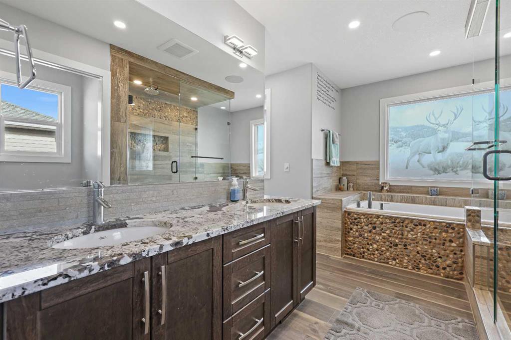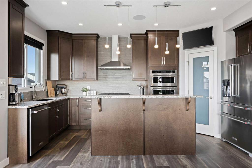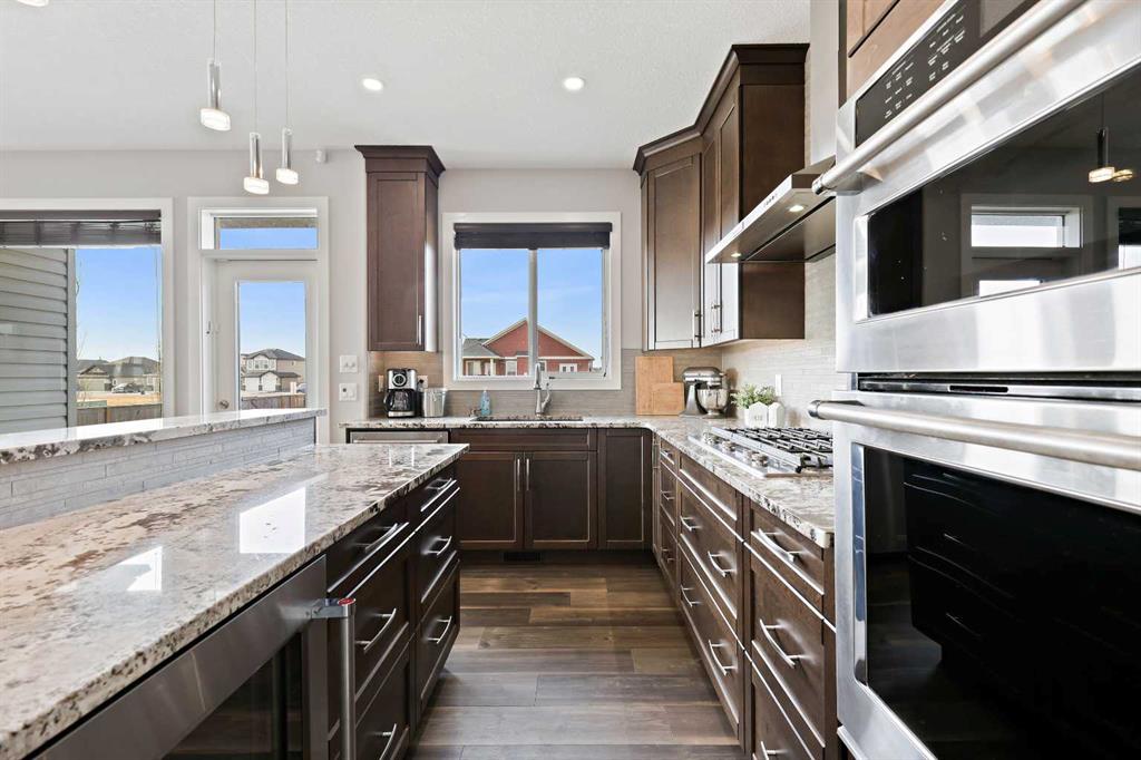 Welcome to 5 Hanson Lane – The Home That Truly Has It All! If you’re searching for a home that offers style, quality, and comfort, this custom-built property is the perfect fit. Designed and constructed by the homeowner with top-of-the-line finishes and upgraded electrical, this stunning home is move-in ready and waiting for your personal touch. Situated on a massive corner lot with no neighbors in front, you can enjoy peaceful mornings on your front porch as the sun rises. The oversized heated triple-car garage is ready for your projects — complete with in-floor heating (boiler required), welder wiring, and extra rebar in the slab for added stability. The west-facing backyard is a blank canvas, ready for your dream outdoor space. The steel-framed back deck is maintenance-free and ready for composite decking in the color of your choice. With RV parking in the front and a low-maintenance yard, this home offers both convenience and functionality. Inside, you’ll love the open-concept main floor featuring a gorgeous stone fireplace in the living room. The kitchen is a baker’s delight, complete with double wall ovens and warming drawer, gas range, wine fridge, all top-of-the-line KitchenAid stainless steel appliances. Under-cabinet lighting and updated fixtures enhance the sleek, modern design. Upstairs, you’ll find a bonus room, two spacious bedrooms, a laundry room with wash sink, and the luxurious primary suite. The primary retreat features a spa-inspired ensuite with double vanity, large walk-in shower, soaker tub, and private toilet area, as well as a massive walk-in closet and private west-facing balcony — perfect for watching sunsets or summer rain showers. The unfinished basement offers 9’ ceilings, large windows, and rough-ins for a wet bar — a true blank slate ready for your vision. It also includes in-floor heating (boiler required), reinforced concrete, and extra rebar for superior durability. Additional features include: Luxury vinyl plank flooring throughout, Photocell ambient stair lighting, Built-in speaker system (zone-controlled via app) in house, deck, and garage, 2024 hot water tank, Home security system. Don’t miss your chance to own this incredible property in the heart of Langdon. Book your private showing today with your favorite Realtor or join us this weekend for the open house!