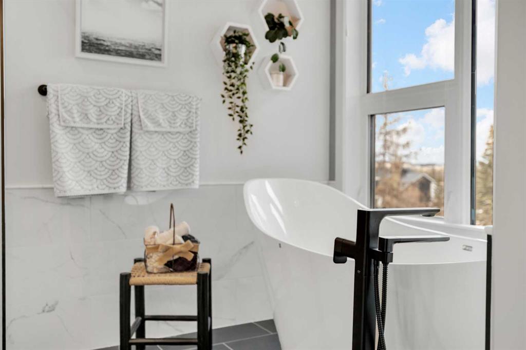 This exceptional home in Lakeway Landing defines luxury living in Sylvan Lake, offering over 2,200 sq ft of impeccably finished space designed for both everyday comfort and entertaining. The open-concept main level is anchored by a striking Douglas Fir beam, soaring 20-foot ceilings, and a dramatic floor-to-ceiling stone fireplace, all flooded with natural light from expansive windows. The chef-inspired kitchen blends function and beauty with granite countertops, stainless steel appliances, a rare side-by-side fridge and freezer, and custom cabinetry featuring thoughtful storage solutions. A walk-through pantry connects to the mudroom, while triple patio doors off the dining area open to a spacious deck—perfect for morning coffee or evening gatherings. Upstairs, the primary suite is a true retreat with a spa-like five-piece ensuite, freestanding soaker tub, large glass shower, and walk-in closet with custom organizers. A private patio with lake views completes the suite. A second bedroom, full bathroom, and a well-designed laundry room complete the upper level. The walkout lower level offers two additional bedrooms, a large bathroom, wet bar, and spacious family room, with access to a covered outdoor living area surrounded by low-maintenance landscaping. Built to an uncompromising standard, this home features in-floor heating in garage, ensuite and basement, central AC, HRV system, on-demand hot water, spray-foam insulation, and a heated triple-car garage with 12.5-ft ceilings. A rare blend of elegance, efficiency, and craftsmanship in one of Sylvan Lake’s most sought-after communities.