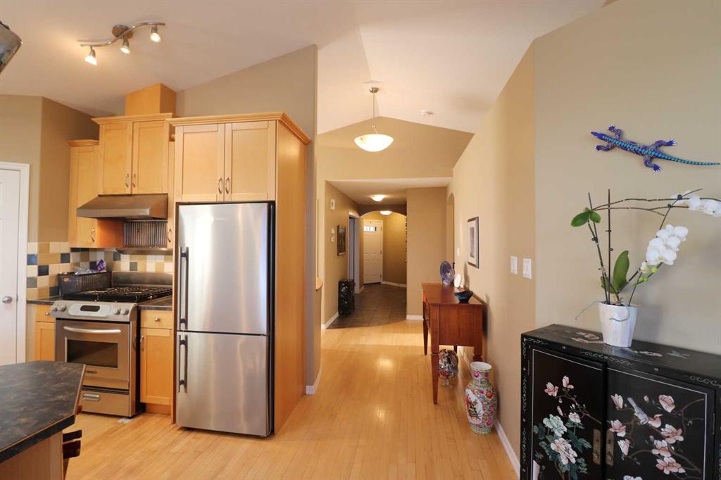 Have you been waiting for a bungalow in Riverstone to be listed for sale? Here is your opportunity to own a 1,348 sq ft, fully developed, 2+2-bedroom home with appealing highlights inside and out. A low traffic location and family friendly neighbourhood is just the beginning. The home's interior features a wide-open floor plan, vaulted ceilings, a skylight, hardwood flooring, large windows, a gas fireplace, maple kitchen cabinetry, a convenient island, a walk-in pantry, a gas stove with stainless steel appliances, a spacious primary bedroom, a 4-pc ensuite, a walk-in closet, and main-floor laundry with washtub. A nicely developed lower level features oversized windows, a family room, two more bedrooms, another full bathroom, a 15'x 15' undeveloped area, and convenient storage space. Enjoy plenty of sunshine from your two-tiered, south-facing backyard lounge space complete with composite decking and opaque glass half walls that provide a low maintenance component, wind shelter, and privacy. Central A/C, underground sprinklers, a decent sized double attached garage. and a paved back laneway round out the highlights of the home. Riverstone is well known for its exceptional walkways, greenspaces, creeks, ponds, and playground areas. Nearby schools, convenience shopping, Paradise Canyon Golf Resort, and the University of Lethbridge add to the neighbourhood's appeal. Call your Real Estate Professional today to book your viewing!