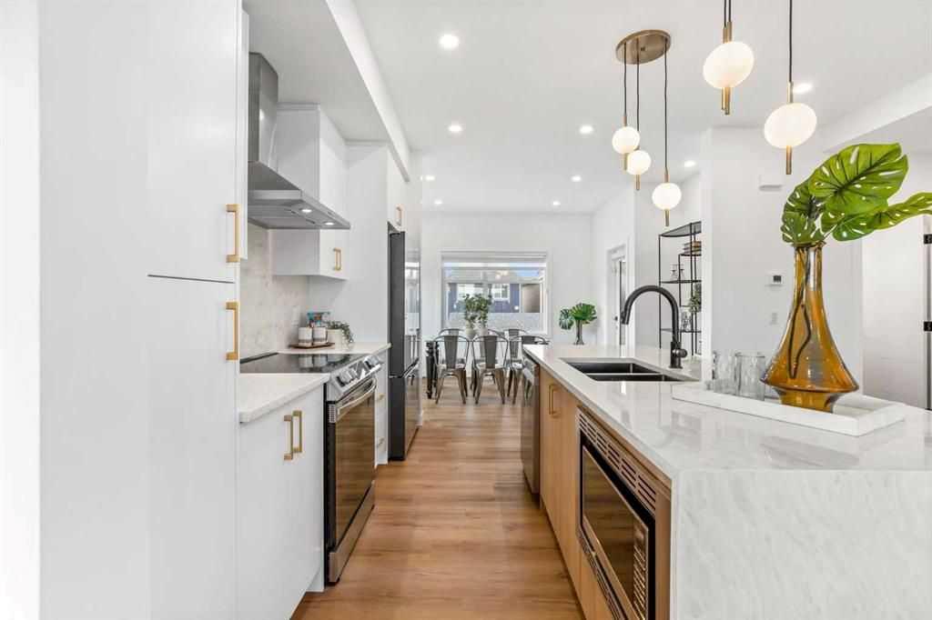 LIMITED TIME PROMO NO CONDO FEES for the First Year – enjoy maintenance-free living and extra savings. Get a Parking Stall for Only $1 (Value $7,500). Choose One Bonus Option: • Free Upgrades valued at $2,500, or • $2,500 Cash Credit at possession, or • $2,500 Gift Certificate for Calgary Best Buy Furniture. Modern Luxury Studio Townhouse in Belvedere – Possession December 2025 Welcome to this beautifully designed main-floor luxury townhouse located in the vibrant new community of Belvedere, SE Calgary. Offering 689.52 sq. ft. of thoughtfully planned, open-concept living, this 2-bedroom, 1-bathroom home perfectly blends modern elegance, comfort, and functionality—ideal for first-time buyers, downsizers, or savvy investors seeking a low-maintenance lifestyle. Step inside and be greeted by 9 ft. ceilings that create an airy, spacious feel throughout. The home showcases luxury vinyl plank flooring and a bright, open layout designed for effortless living. The chef-inspired U-shaped kitchen is a true centerpiece, featuring: Full-height cabinetry offering ample storage. Quartz countertops with a sleek modern finish. Premium stainless steel appliances. Pantry for additional kitchen storage and organization. Both bedrooms feature large windows and generous closets, while the 3-piece bathroom includes floor tiles and a full-height ceramic tub surround. Additional conveniences include a linen closet, in-suite washer/dryer, and dedicated storage space. Unbeatable Location & Lifestyle, Situated in one of Calgary’s fastest-growing communities, you’ll enjoy unmatched access to everyday essentials and recreation: Steps to Costco, Walmart, Cineplex, restaurants, and major banks. 3 minutes to Stoney Trail, 4 minutes to Highway 1, and 15 minutes to Downtown Calgary 7 minutes to Gurdwara Sahib & 1-minute walk to a future school site and nearby park This is a rare opportunity to own a modern, low-maintenance home in a sought-after SE Calgary location. Whether you’re buying your first home, investing, or simplifying your lifestyle—this property checks all the boxes. Note: Photos are from the show home to demonstrate quality of construction and finishes; actual unit may vary. Don’t miss your chance to call Belvedere home—book your private tour today!