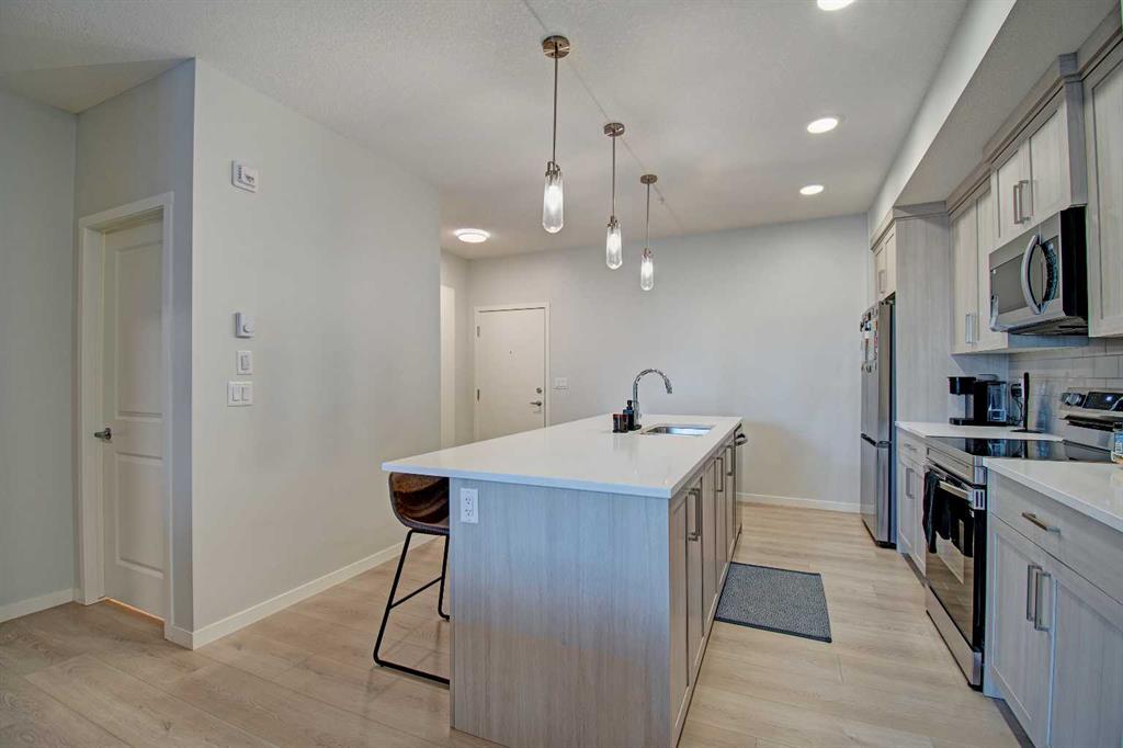 Welcome to this beautifully appointed ground floor condo in the vibrant community of Seton. Built in 2025, this modern 1 bedroom, 1 bathroom unit offers stylish and functional living, perfect for first time buyers, downsizers, or investors. Step inside to discover durable luxury vinyl plank flooring throughout and a bright open concept layout. The contemporary kitchen features sleek white quartz countertops, stainless steel appliances including fridge, stove, and dishwasher, and ample cabinetry, making it both elegant and practical. Enjoy the convenience of in unit stacked laundry for added ease. The spacious bedroom is complemented by a well designed bathroom, while the large ground floor balcony provides the perfect outdoor space for relaxing or entertaining. Ideal for those with mobility considerations, this unit offers easy access with no stairs required. Additional highlights include one assigned surface parking stall and a prime location close to shopping, dining, amenities, and transit in one of Calgary’s most sought after communities.