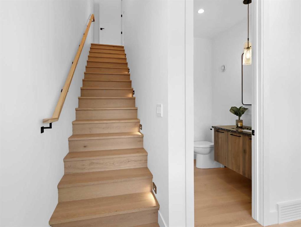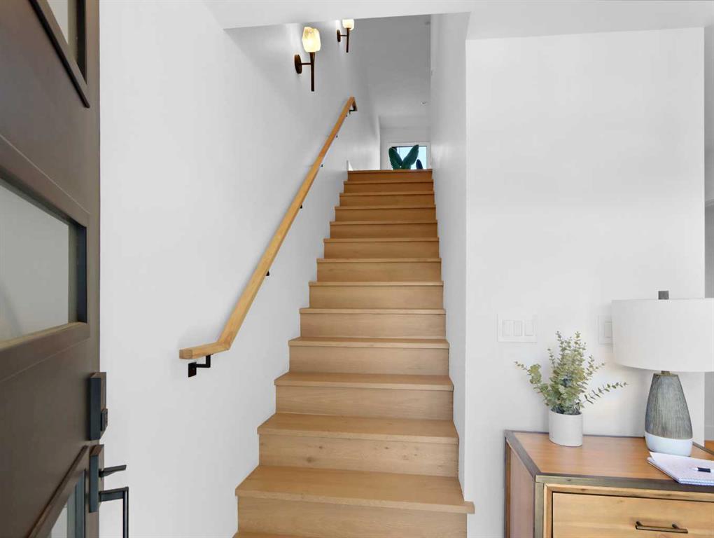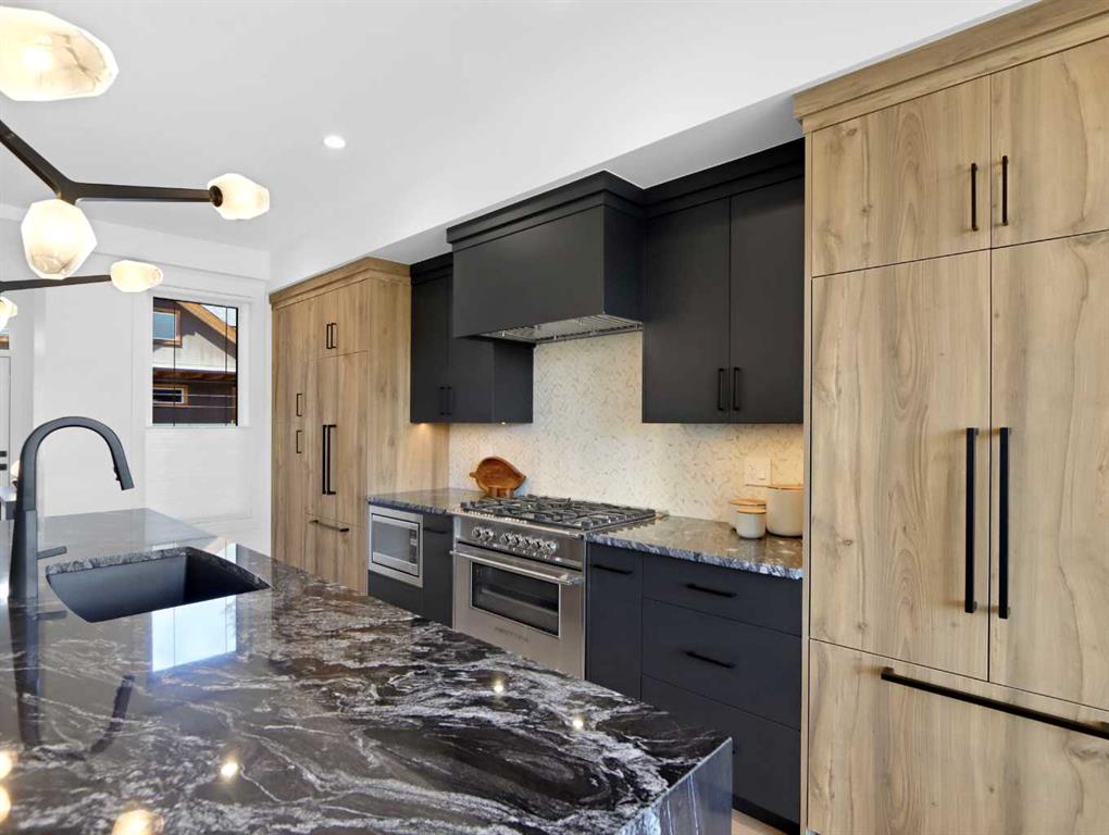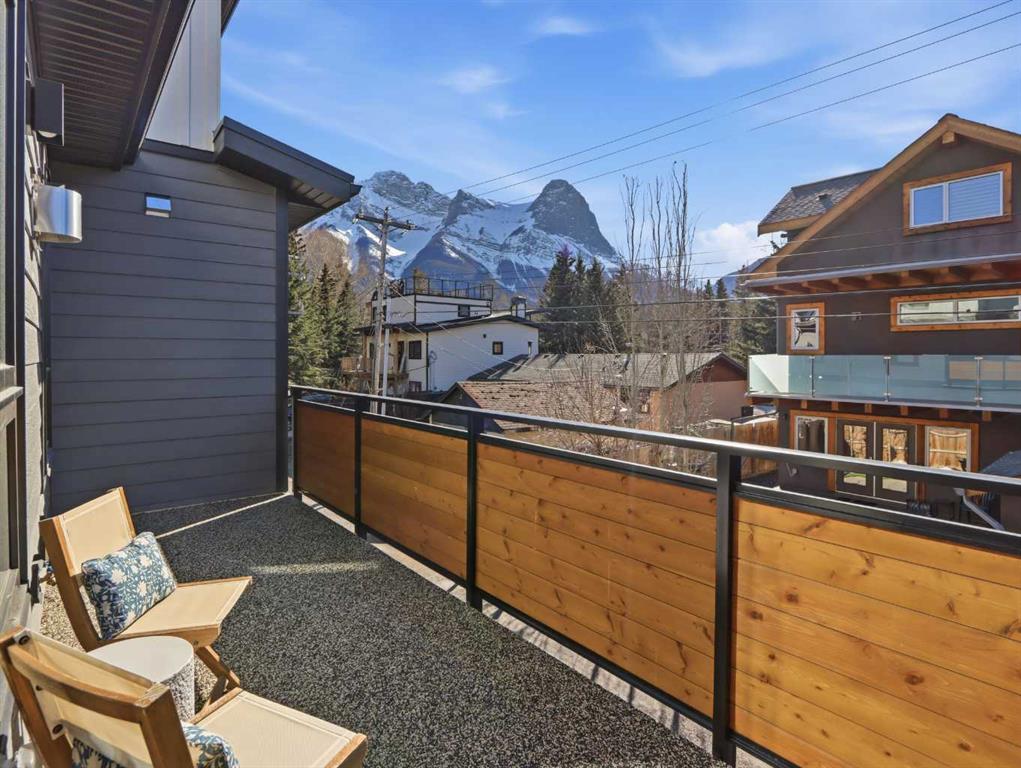 This stunning, never lived in 2,461 sq ft half duplex is a rare offering that blends luxury craftsmanship, thoughtful design, and breathtaking mountain views into one exceptional home. With 3 bedrooms, 4 baths, and an uncompromising level of finish throughout, this residence is purpose built for both elevated entertaining and peaceful everyday living. The main level welcomes you with an impressive open concept living space anchored by soaring vaulted ceilings and a dramatic wall of windows that frame the surrounding peaks. A true chef’s kitchen stands at the heart of the home, featuring premium appliances including two counter depth fridges and freezers, dual dishwashers, a sprawling island with custom organizers, and an abundance of workspace and storage. The dining area is designed for hosting, complemented by a warm, inviting electric fireplace and seamless access to the large view deck—perfect for morning coffee, evening cocktails, or simply soaking in the scenery. Also on the main level is a bright office nook with mountain views, a generous walk in pantry, and a stylish 2 piece powder room. Upstairs, the private primary retreat offers a serene escape with a spa inspired 5 piece ensuite, heated tile floors, and a spacious walk in closet complete with its own laundry. Every detail has been considered to maximize comfort and convenience. The ground level features a spacious and welcoming entry foyer leading to a well designed mud/gear room with built in cubbies and bench seating—ideal for mountain living. This level also includes a second laundry area with sink, two additional bedrooms (one with its own 3 piece ensuite), a separate 4 piece bath, and access to the epoxy finished double garage, all fully heated with in floor heat. The home’s mechanical systems are equally impressive, offering high efficiency performance with three independent thermostats—one for each floor—ensuring personalized comfort throughout. Additional highlights include: • Under tile heating in the primary ensuite • Rough in for EV charger • Low maintenance landscaping and exterior • No condo fees or bylaws • Exceptional natural light from oversized windows • Easy access to Canmore’s river pathways and a short walk to Main Street This home delivers the perfect blend of luxury, functionality, and low maintenance mountain living. Every finish, fixture, and design choice reflects quality and attention to detail. A truly exceptional opportunity in one of Canmore’s most desirable locations.