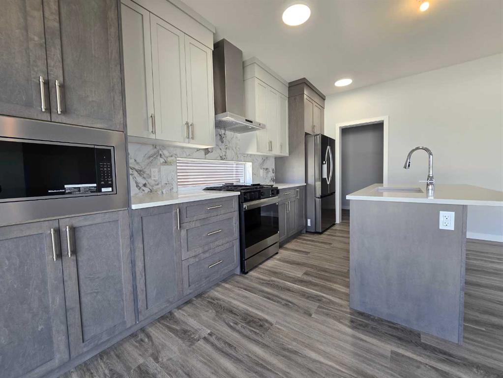 Welcome to 512 Baywater Manor SW in Airdrie, a brand new home built by award winning McKee Homes that offers 2,060 square feet of above grade living space with modern style and everyday comfort in mind. This Built Green Certified home provides energy efficiency, long term value, and savings on energy costs. The main floor showcases a bright kitchen with a central island, gas range, abundant counter space and cabinetry, and a walk in pantry. The dining area flows into the living room, creating a natural gathering space, and a main floor bedroom with a full 4 piece bathroom adds flexibility for family or guests. Upstairs you will find three generous bedrooms including the owner’s suite with a walk in closet and an ensuite with dual sinks and a separate shower. A bonus room, laundry area, and a full bathroom complete the upper level. The home sits on an oversized lot with a big back yard and a double attached garage. The basement includes a rough in for future development and a separate side entrance, offering added possibilities. Bayside is a highly desired community known for its canals, green spaces, and kilometers of connected pathways. A new 1.3 acre recreation park will soon add even more to enjoy, featuring a paved pump track, a parkour style fitness playground, corn hole boards, and open play areas. Everyday conveniences, schools, and local shops are all close by, making this an ideal place to call home.