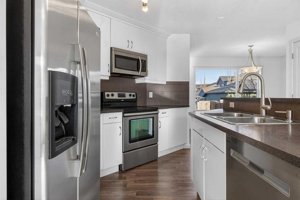 This beautifully presented END-UNIT townhouse offers exceptional value and functionality, The best part? It's not a condo—so NO CONDO FEES, and it truly feels and functions more like a semi-detached home at townhouse pricing. Offering an incredibly rare, OVERSIZED BACKYARD with tons of grass, this outdoor space is perfect for children, pets, and all kinds of activities. Inside, the open and flowing main floor features a central, functional kitchen with island and breakfast bar, large windows that flood the home with natural light, and a dining area with direct access to a deck, making indoor-outdoor living a breeze. Upstairs are THREE FULL BEDROOMS—a standout feature in the neighbourhood where many townhomes offer only two—including a spacious primary bedroom with ensuite, plus an additional 4-piece bathroom. The basement is wide open and awaiting your customization, offering ample room for a large rec room, an additional bedroom, and is roughed-in for a bathroom. Completing the package is a DOUBLE DETACHED GARAGE with space for two vehicles, tools, bikes, and extra storage, along with beautiful curb appeal showcased by modern colours and a welcoming exterior. Ideally located in desirable Evanston, this family-oriented community is close to great schools, parks, amenities, and offers a friendly atmosphere where you can truly get to know your neighbours.