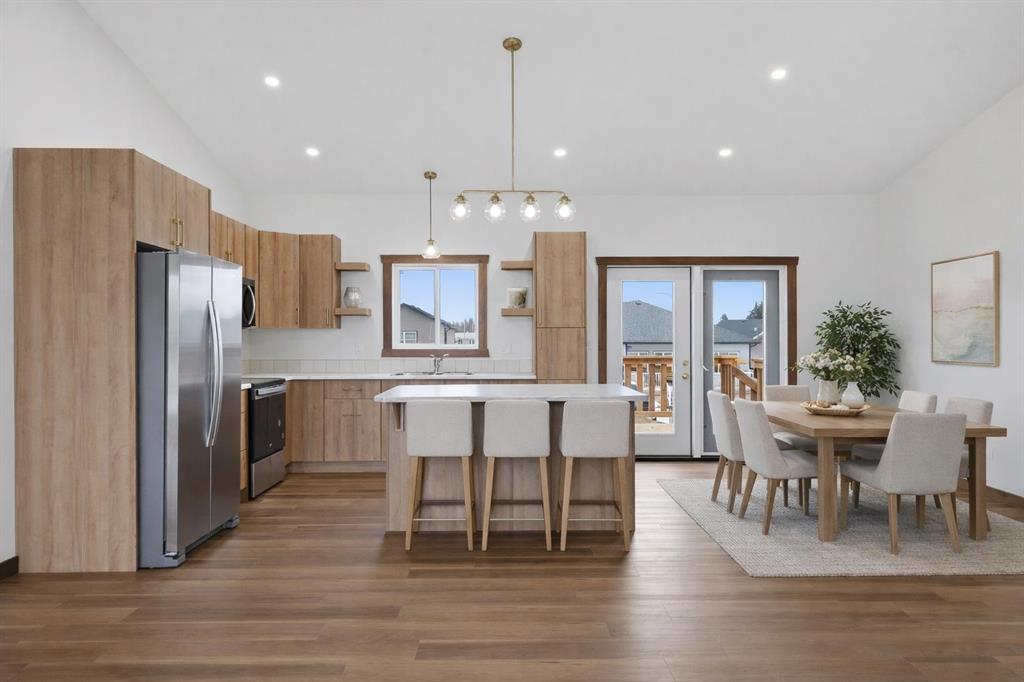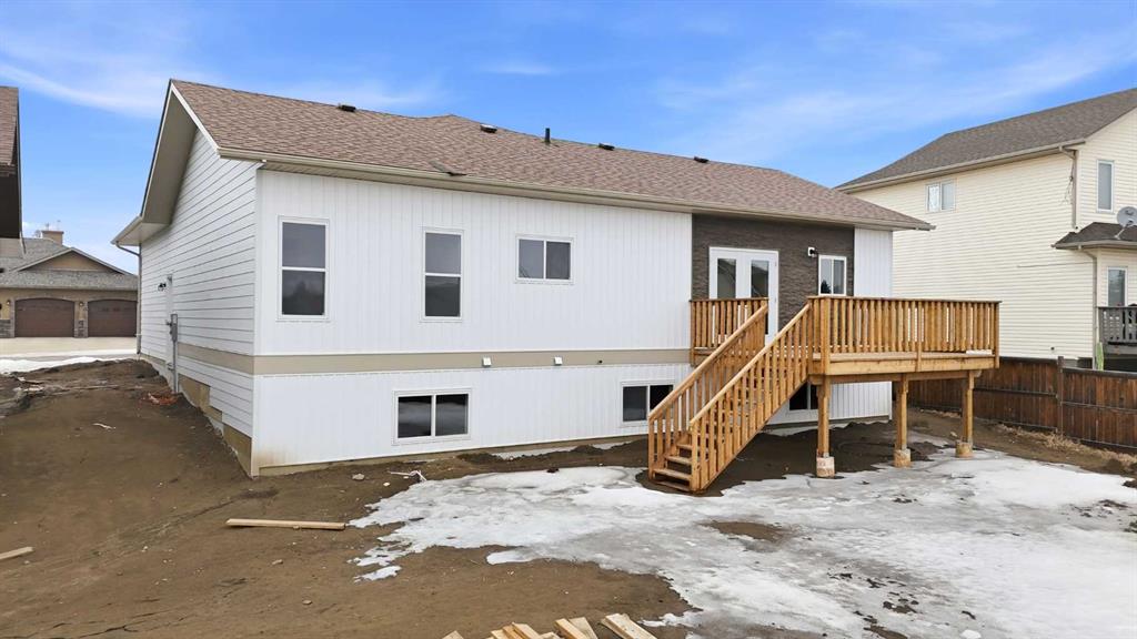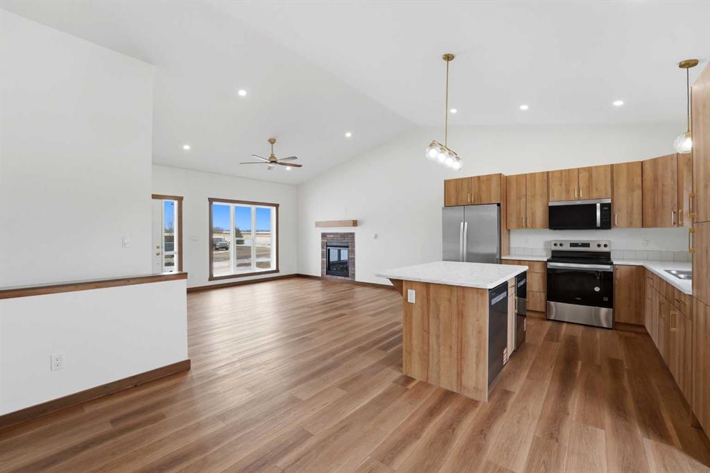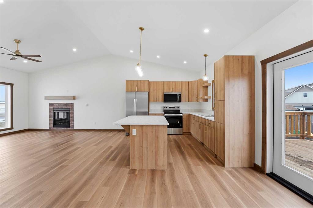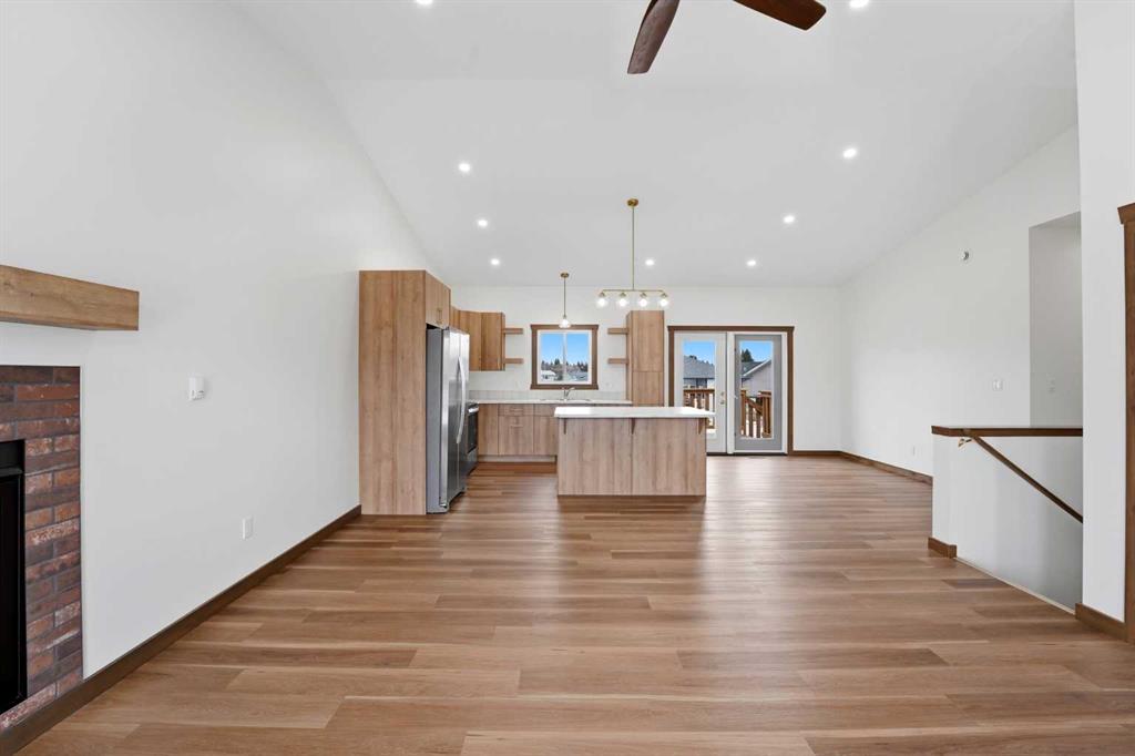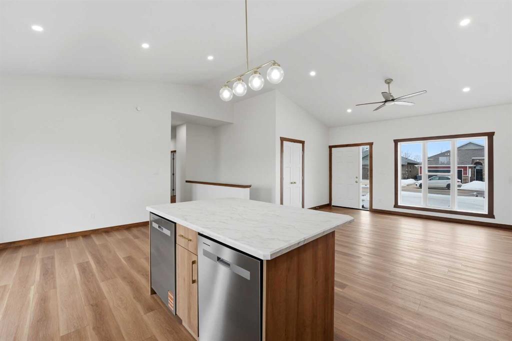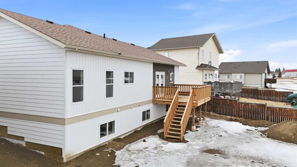 Welcome to this beautiful brand-new bungalow by Larchwood Homes, built this year and perfectly located on the outskirts of town in the charming community of Eckville - just 15 minutes from Sylvan Lake and half hour from Red Deer. From the moment you arrive, you’ll be impressed by the stunning curb appeal and double attached garage. Step inside to a bright and inviting main floor featuring vaulted ceilings, modern light fixtures, a cozy gas fireplace, and patio doors leading to the massive backyard—perfect for entertaining or enjoying peaceful outdoor space. The kitchen offers beautiful laminate countertops, a large island, modern oak cabinetry and even two dishwashers, making it an ideal setup for busy families or those who love to host. Venture down the hall and you’ll find two good-sized bedrooms and a full 4-piece bathroom with storage. The laundry is conveniently located in the boot room, complete with a spacious coat closet and direct access to the garage. The garage features soaring ceilings and is roughed-in for in-floor heat. The primary bedroom retreat offers a massive walk-in closet and a private 4-piece ensuite, providing a comfortable and functional space to unwind. The unfinished basement is ready for your future development, featuring large windows, roughed in for in floor heat, and a bright, open layout that doesn’t feel like a typical basement. Don’t wait—this beautiful new home could be the perfect fit for you!