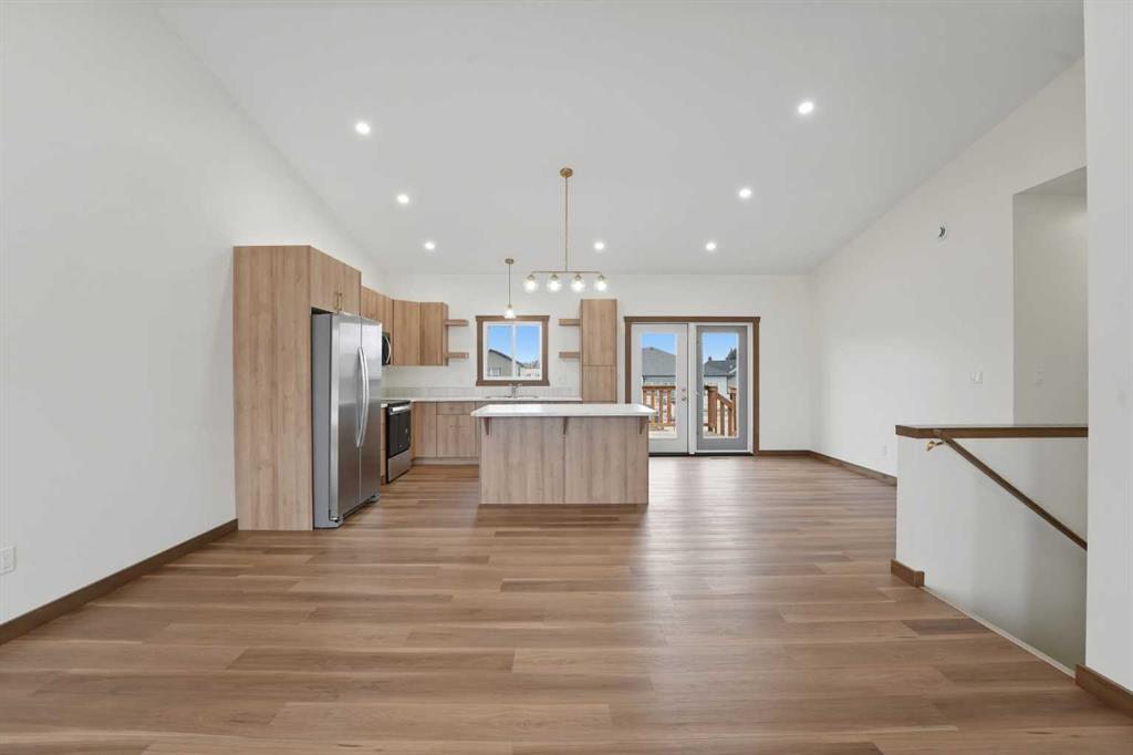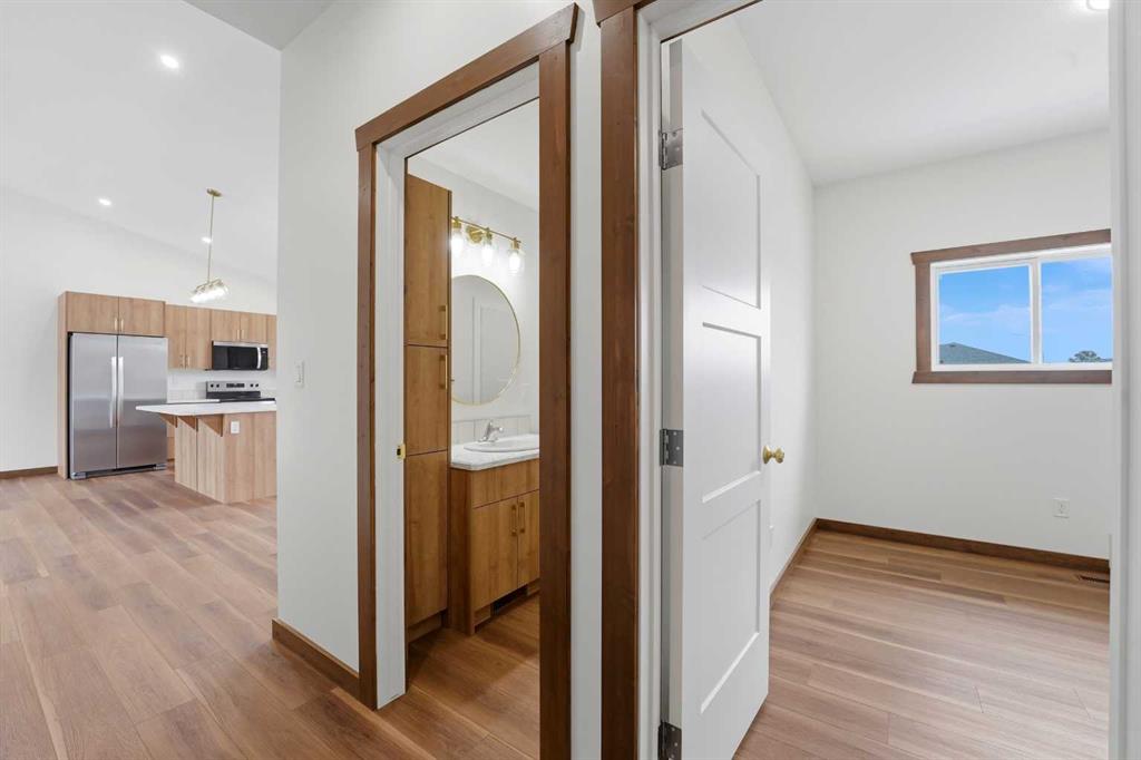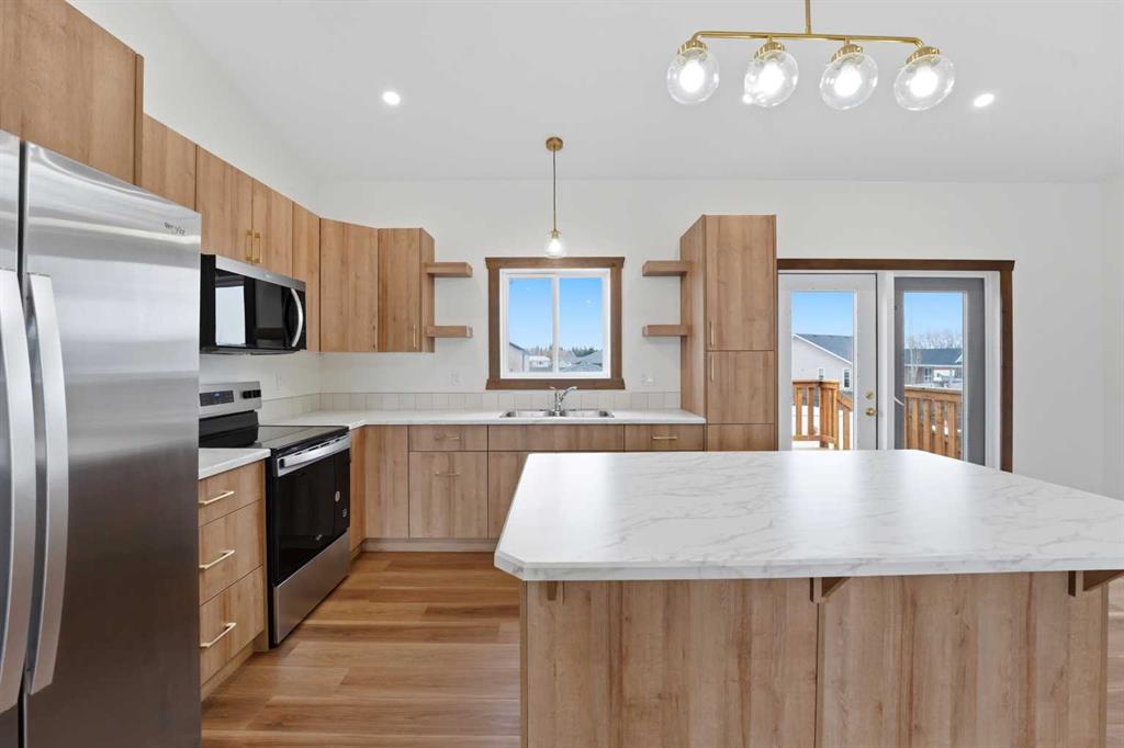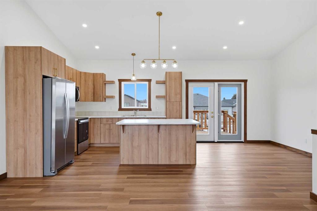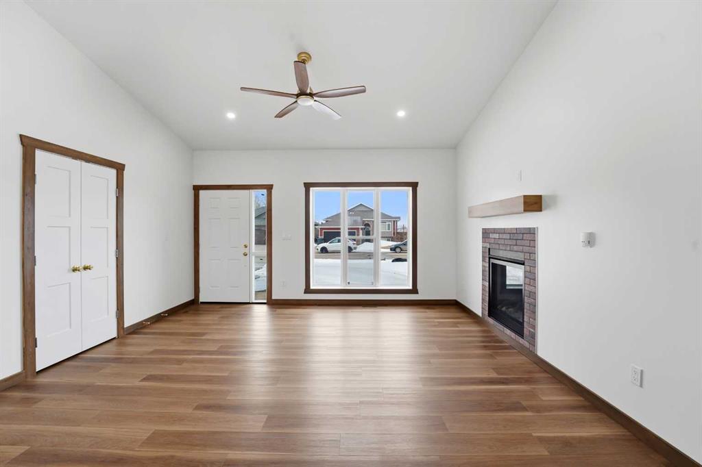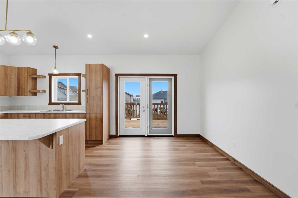 Welcome to this beautiful brand-new bungalow by Larchwood Homes, built this year and perfectly located on the outskirts of town in the charming community of Eckville - just 15 minutes from Sylvan Lake and half hour from Red Deer. From the moment you arrive, you’ll be impressed by the stunning curb appeal and double attached garage. Step inside to a bright and inviting main floor featuring vaulted ceilings, modern light fixtures, a cozy gas fireplace, and patio doors leading to the massive backyard—perfect for entertaining or enjoying peaceful outdoor space. The kitchen offers beautiful laminate countertops, a large island, modern oak cabinetry and even two dishwashers, making it an ideal setup for busy families or those who love to host. Venture down the hall and you’ll find two good-sized bedrooms and a full 4-piece bathroom with storage. The laundry is conveniently located in the boot room, complete with a spacious coat closet and direct access to the garage. The garage features soaring ceilings and is roughed-in for in-floor heat. The primary bedroom retreat offers a massive walk-in closet and a private 4-piece ensuite, providing a comfortable and functional space to unwind. The unfinished basement is ready for your future development, featuring large windows, roughed in for in floor heat, and a bright, open layout that doesn’t feel like a typical basement. Don’t wait—this beautiful new home could be the perfect fit for you!
