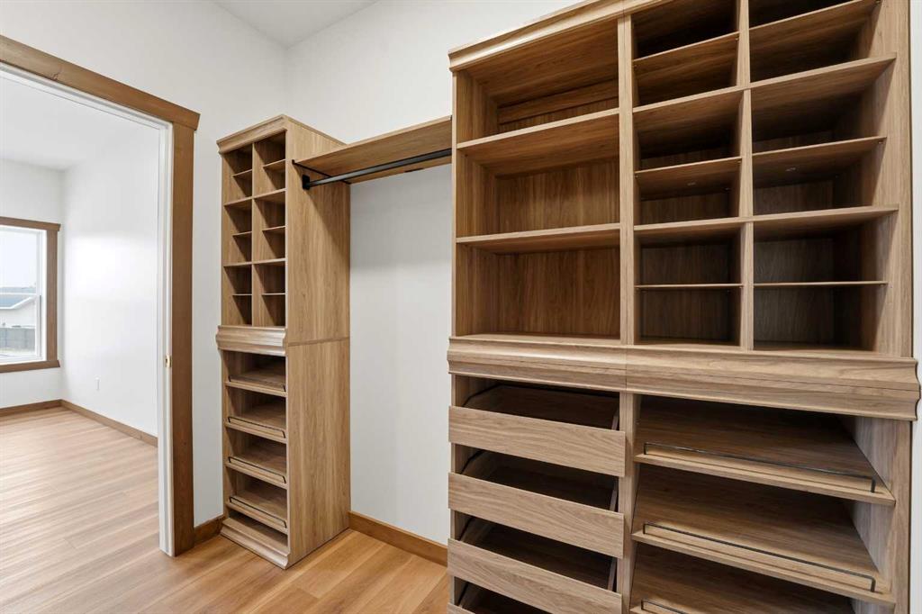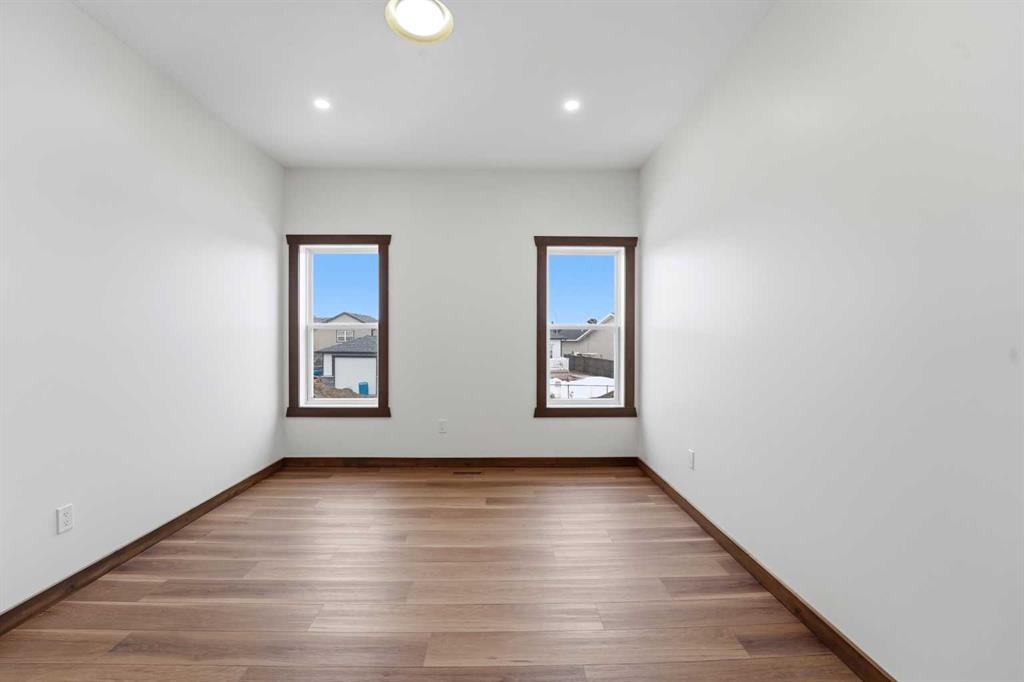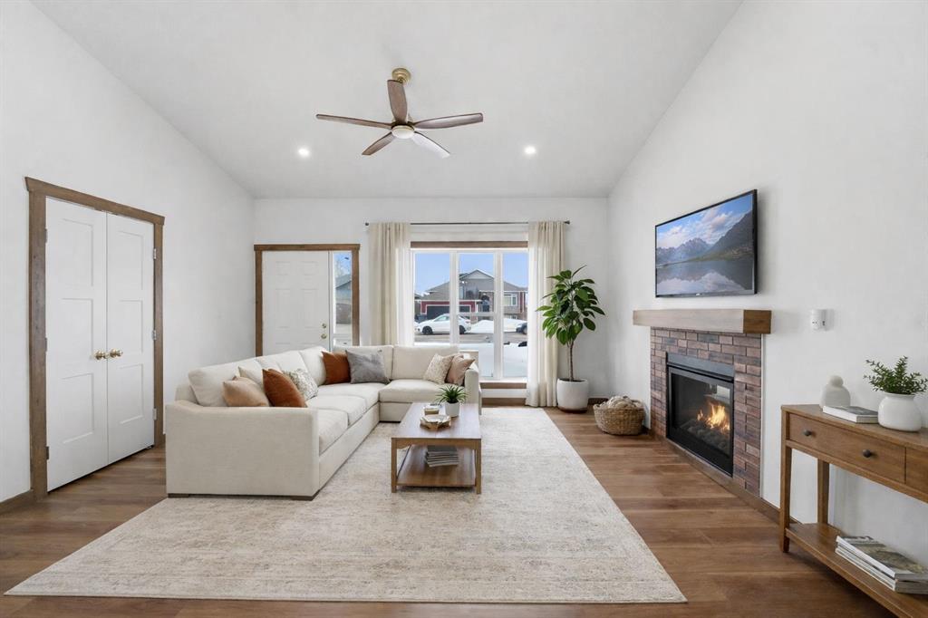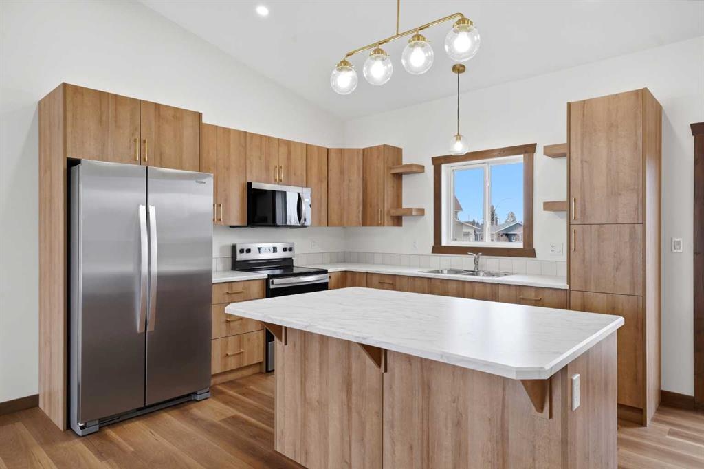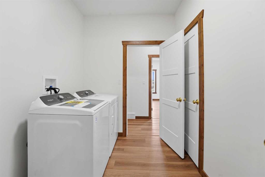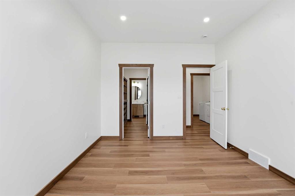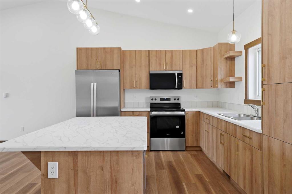 Welcome to this beautiful brand-new bungalow by Larchwood Homes, built this year and perfectly located on the outskirts of town in the charming community of Eckville - just 15 minutes from Sylvan Lake and half hour from Red Deer. From the moment you arrive, you’ll be impressed by the stunning curb appeal and double attached garage. Step inside to a bright and inviting main floor featuring vaulted ceilings, modern light fixtures, a cozy gas fireplace, and patio doors leading to the massive backyard—perfect for entertaining or enjoying peaceful outdoor space. The kitchen offers beautiful laminate countertops, a large island, modern oak cabinetry and even two dishwashers, making it an ideal setup for busy families or those who love to host. Venture down the hall and you’ll find two good-sized bedrooms and a full 4-piece bathroom with storage. The laundry is conveniently located in the boot room, complete with a spacious coat closet and direct access to the garage. The garage features soaring ceilings and is roughed-in for in-floor heat. The primary bedroom retreat offers a massive walk-in closet and a private 4-piece ensuite, providing a comfortable and functional space to unwind. The unfinished basement is ready for your future development, featuring large windows, roughed in for in floor heat, and a bright, open layout that doesn’t feel like a typical basement. Don’t wait—this beautiful new home could be the perfect fit for you!