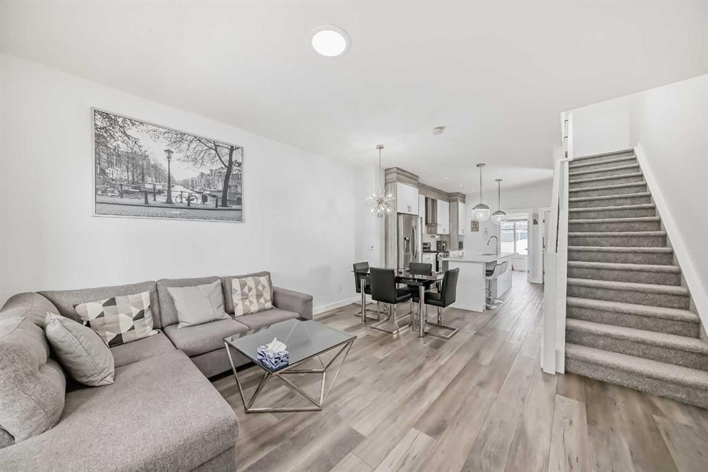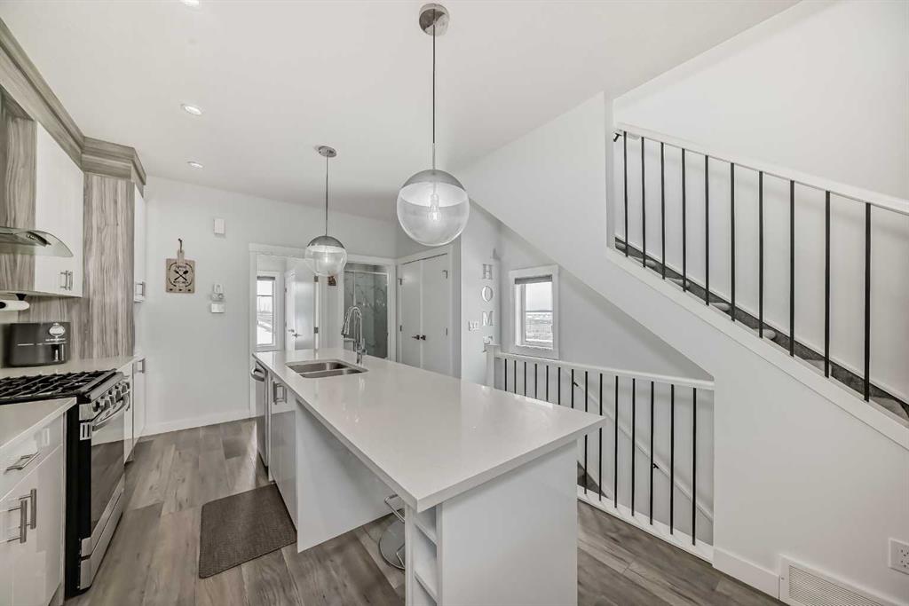 Welcome to this beautifully crafted modern Townhouse featuring 3 bedrooms, 3 full bathrooms, and a DOUBLE TANDEM GARAGE in the sought-after Skyview Ranch NE community in Calgary. Blending style with practicality, this home provides generous space and thoughtful upgrades throughout. The main level includes a spacious double tandem garage with extra storage, perfect for vehicles, tools, or seasonal. items. The second level showcases a chef-inspired kitchen with glossy DUAL TONE CABINETRY, a large ISLAND WITH QUARTZ COUNTERTOPS, sleek STAINLESS STEEL APPLIANCES, a modern range hood, and ample counter and storage space. The open-concept living and dining areas are filled with natural light through oversized windows and feature a fireplace that adds warmth and character. Elegant LVP flooring enhances the modern aesthetic. This level also offers a bedroom and a full bathroom with a standing shower, ideal for guests, in-laws, or a home office. Upstairs, the third level provides privacy and comfort with TWO SPACIOUS PRIMARY BEDROOMS, each with its OWN PRIVATE ENSUITE bathroom. A conveniently located laundry room adds practicality. Location is key, and this home excels in that regard. You’re within walking distance of Prairie Sky School, Apostles of Jesus School, and Kidz Space Daycare, making it perfect for families. Just a minute away, a vibrant shopping plaza offers grocery stores, banks, cafés, and a variety of dining options. Calgary International Airport is just 10 minutes away for travellers. Downtown Calgary is within 20 minutes, with quick access to Deerfoot Trail and Stoney Trail, ensuring easy connectivity. With modern finishes, a versatile layout, a prime location, and convenience, this home has everything you need. Whether you’re a first-time buyer, a growing family, or an investor, this is an exceptional opportunity to own a unique home in Skyview Ranch. Don’t miss your chance to make it yours!