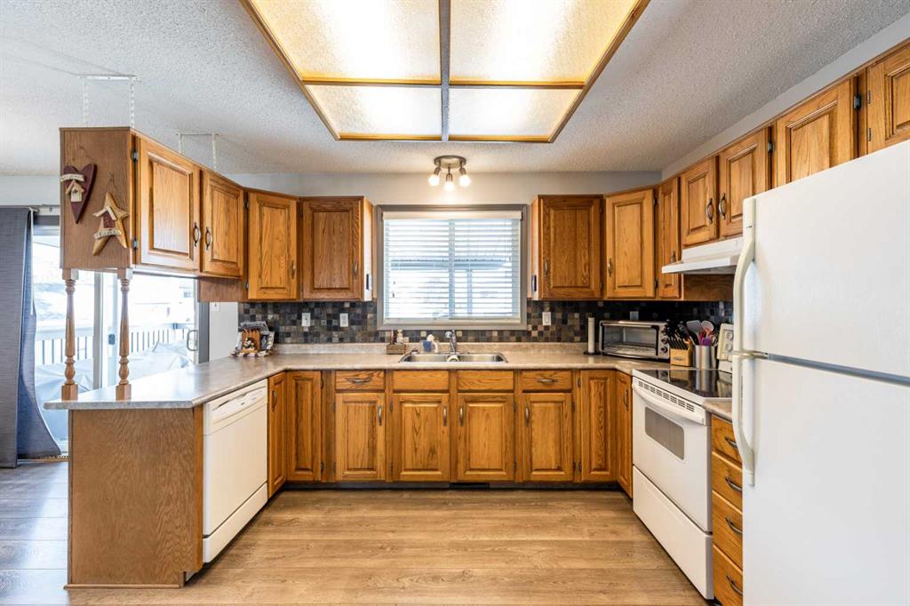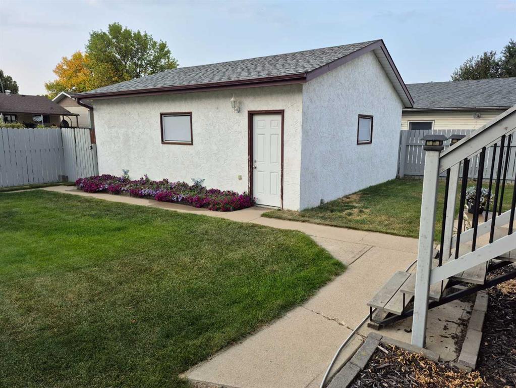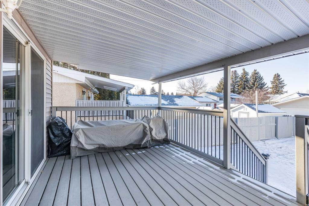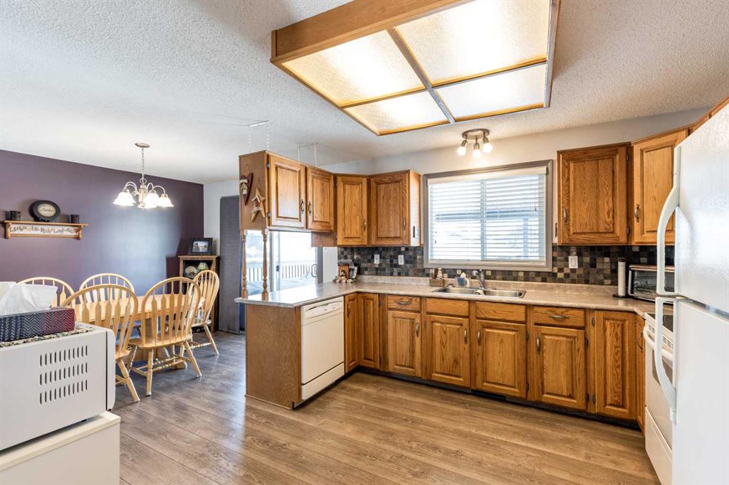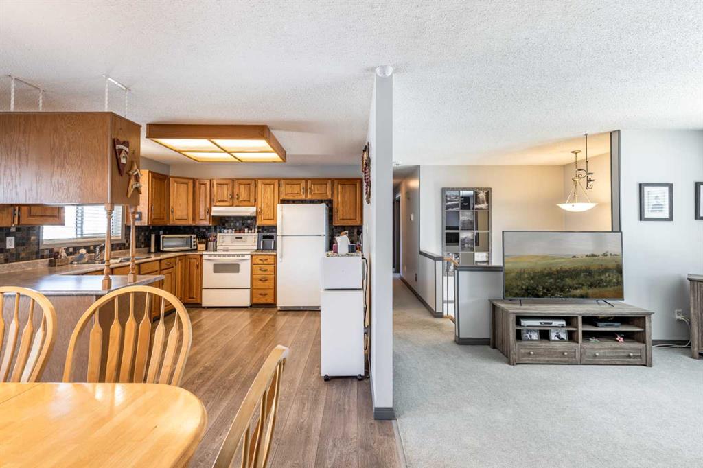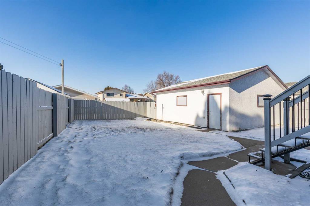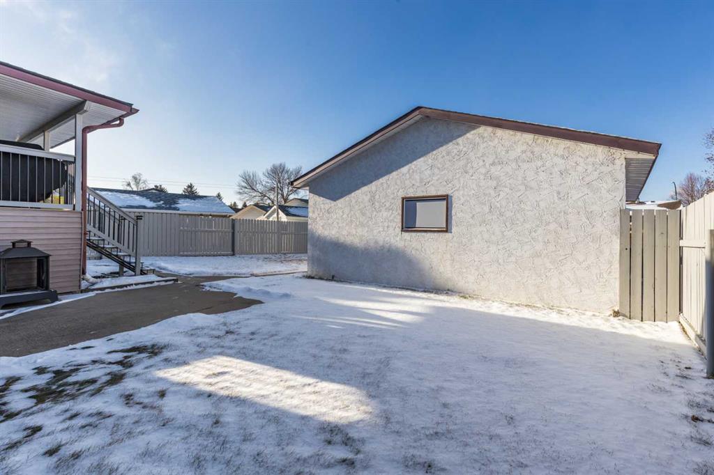 Welcome to this beautiful family home in the highly desirable Ross Glen. Featuring 3+1 bedrooms and 2.5 bathrooms, this well-maintained property is perfect for growing families. The open kitchen, with warm oak cabinetry, flows seamlessly into the dining area, where patio doors lead to a large covered deck, ideal for entertaining, with enclosed storage underneath to keep those backyard essentials organized. The lower level offers a spacious family room with a gas stove for cozy evenings, a large additional bedroom, plenty of storage, laundry, and a renovated 3-piece bathroom. Outside, enjoy a fully landscaped backyard with a hot tub hookup, a 23'4" x 23'4" detached garage, and RV and/or additional off street parking in the front. Conveniently located close to schools, shopping, the water park, and greenbelt walking paths, this home combines comfort, functionality, and an unbeatable family-friendly location.