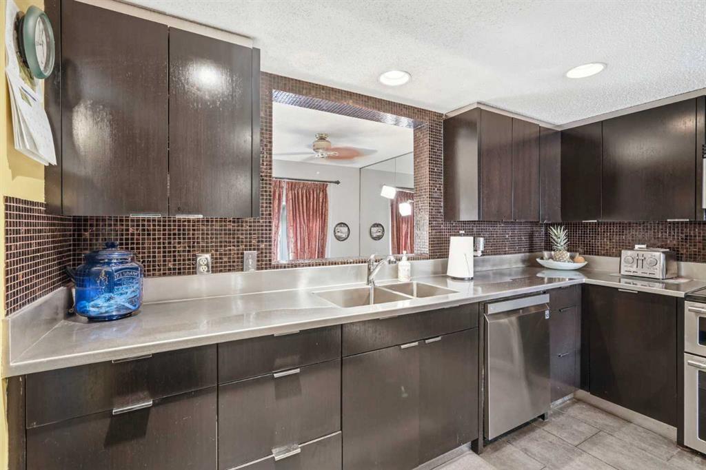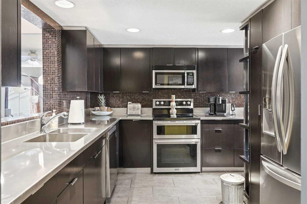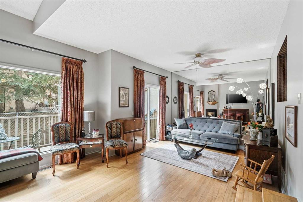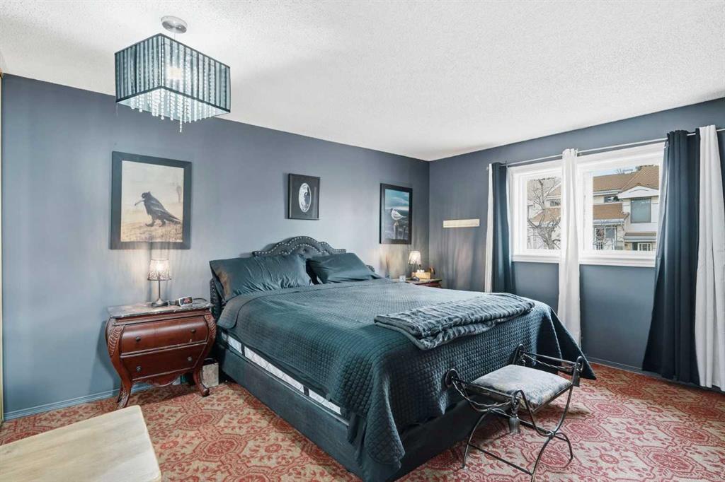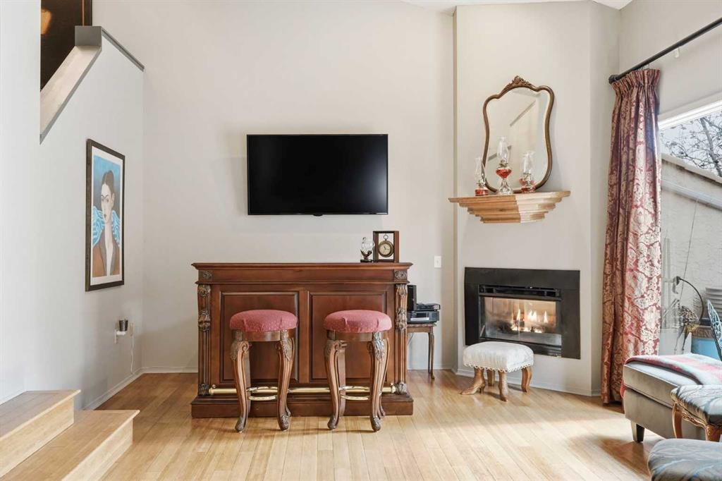 **Open House Sunday, April 26, 2–4 PM** Welcome to this beautifully maintained 2-bedroom, 3-bathroom townhome in the highly sought-after community of Patterson, offering a rare combination of privacy, functionality, and low-maintenance living just minutes to downtown. This thoughtfully designed home features two spacious primary bedrooms, each with its own ensuite, making it ideal for professionals, roommates, or guests. The main level showcases vaulted ceilings, bamboo flooring, and a bright, open-concept living space centered around a cozy gas fireplace. The kitchen is both functional and stylish, featuring sleek black cabinetry, a unique stainless steel countertop, ample storage, and a newer dishwasher (2024)—a modern, design-forward space that stands out from the ordinary. Enjoy your own private, tranquil outdoor setting with both an upper deck and a lower walkout patio—perfect for relaxing or entertaining. The fully finished walkout basement adds incredible flexibility, featuring a large recreation/media room with a second fireplace (wood-burning with gas log lighter), a spacious finished laundry room, and a dedicated hot tub room with capped plumbing (not currently in use), plus direct outdoor access. Additional highlights include new furnace and central A/C (2023), Poly-B plumbing replaced, new bedroom windows, and a single attached garage, all within a pet-friendly, well-managed complex with low condo fees. Ideally located in a quiet, green space setting with quick access to downtown, Westhills, Aspen Landing, C-Train, and major routes.