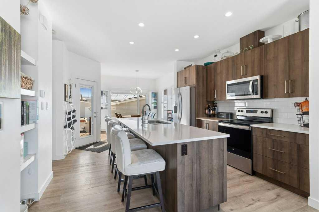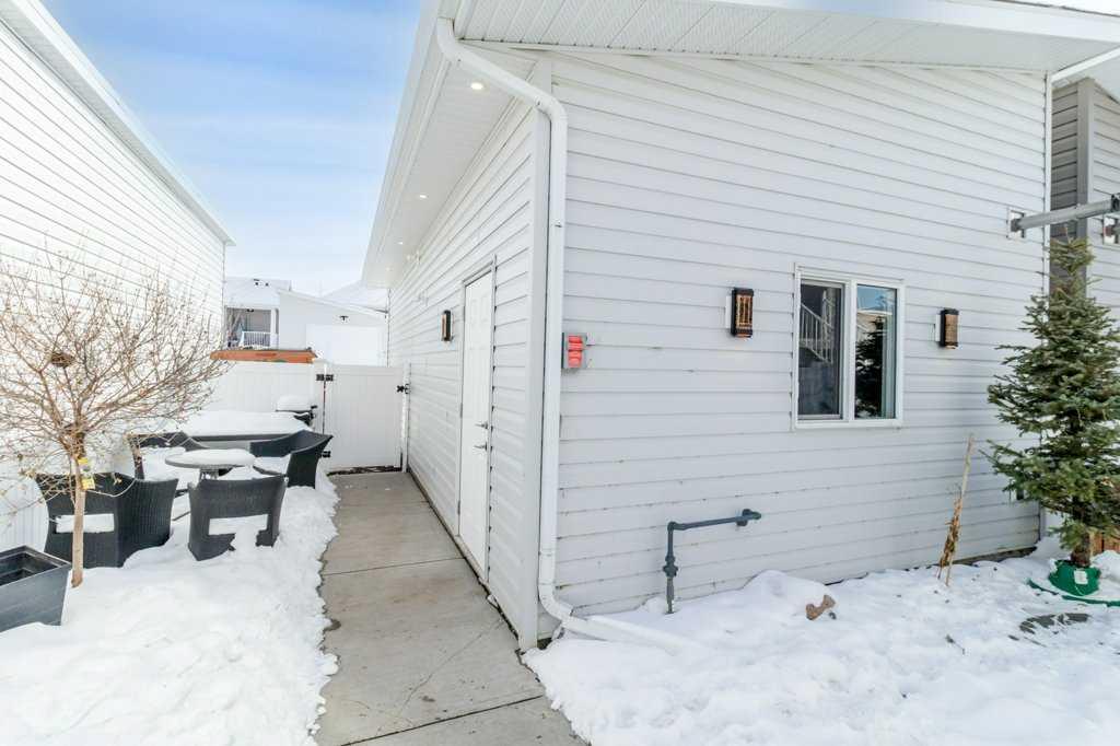 This beautifully designed end-unit townhome offers quality craftsmanship and thoughtful finishes throughout. The main floor impresses with vaulted ceilings, vinyl plank flooring, and carpet, creating a bright and welcoming living space. The kitchen features wood cabinetry with soft-close doors and drawers, quartz countertops, a full tile backsplash, and a new dishwasher. A two-piece bathroom completes the main level. Downstairs, you’ll find three bedrooms, including a spacious primary suite with a walk-in closet and private four-piece ensuite. The two additional bedrooms share a four-piece bathroom, and a conveniently located laundry closet completes the lower level. The backyard is fully landscaped and includes an 8x10 covered deck with aluminum railings, vinyl fencing, and a gravel parking pad. This home also features Gemstone exterior lighting and solar panels, offering both enhanced curb appeal and energy efficiency. In addition, the property includes a single detached heated garage equipped with overhead shelving, a workbench, and a PVC Wall Slide organizer system—ideal for storage and workspace needs. For added comfort and privacy, all shared interior walls are soundproofed using Roxul insulation and resilient channels between the studs and drywall to reduce noise and vibrations. A low $136.50 per year HOA fee covers community lighting, pathways, ponds, a playground, and green space maintenance. With no condo fees, this is an exceptional opportunity for low-maintenance living.