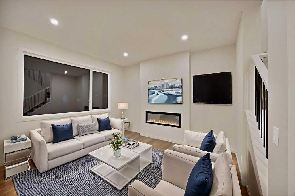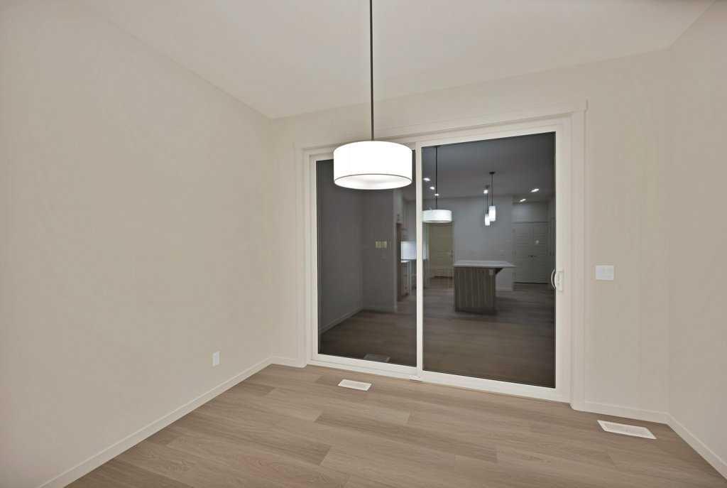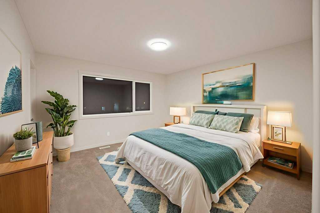 Welcome home to this stunning walkout duplex that perfectly blends modern elegance with functional design. This brand-new construction offers 1,565 square feet of meticulously crafted living space with an attached double front garage, set on a generous 3,579 square foot walkout lot that backs onto a beautiful greenspace with a pond. The main floor welcomes you with a spacious living area featuring an elegant electric fireplace, while a walkthrough pantry connects the mudroom to the gourmet kitchen. Here, stainless steel appliances, including a gas stove and chimney hood fan, shine under recessed lighting. The open-concept layout seamlessly integrates the kitchen, great room, and dining area, where large windows fill the space with natural light and create an inviting atmosphere for both everyday living and entertaining. Upstairs, the primary bedroom serves as a private retreat, complete with a luxurious four-piece ensuite and a sprawling walk-in closet that provides ample storage for your wardrobe essentials. Enjoy serene views of the pond and green space, with no adjoining backyard to interrupt the scenery. Two additional spacious bedrooms offer large windows framing picturesque views of the surrounding landscape. A conveniently located laundry room, equipped with a front-load washer and dryer, adds both comfort and practicality to your daily routine.