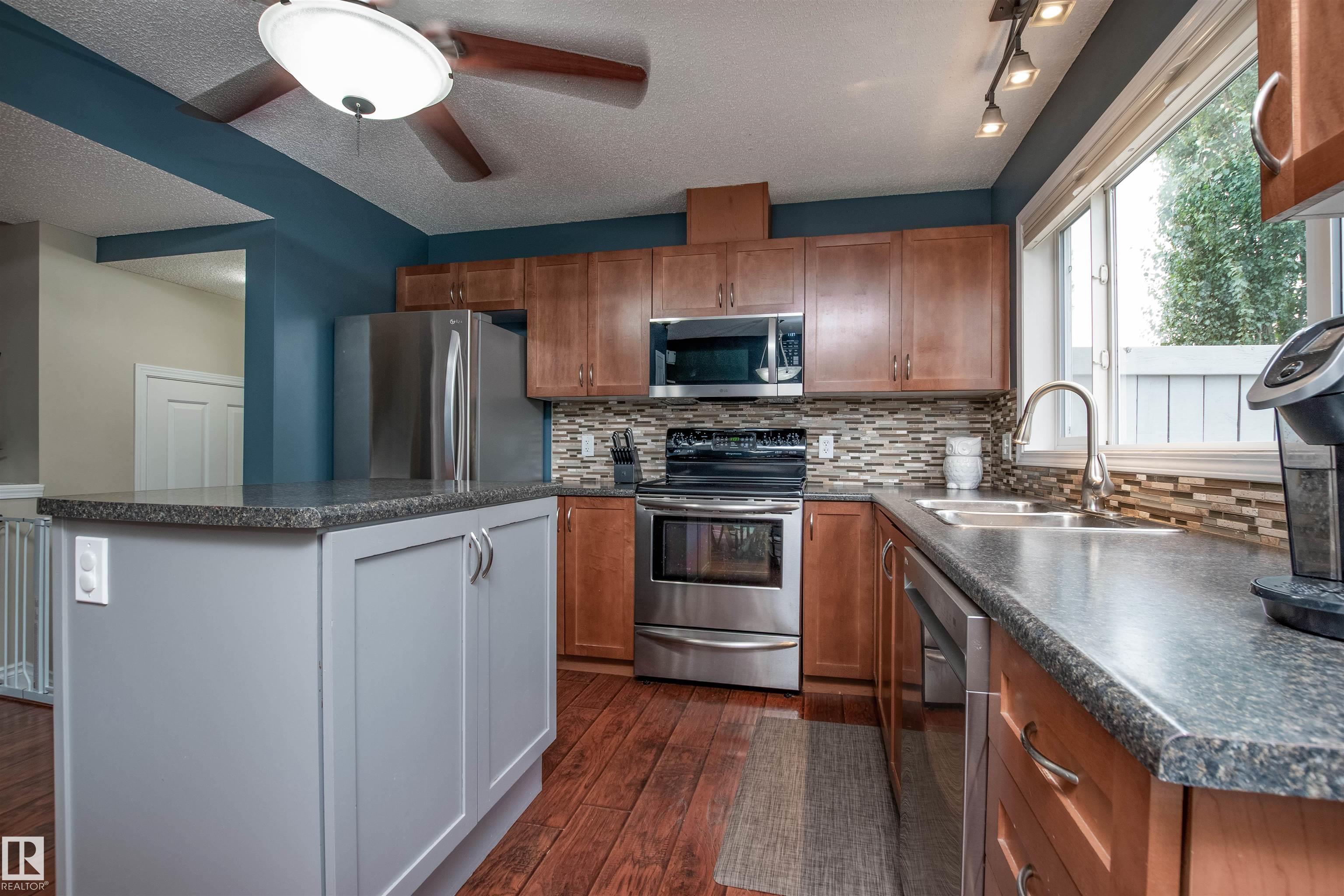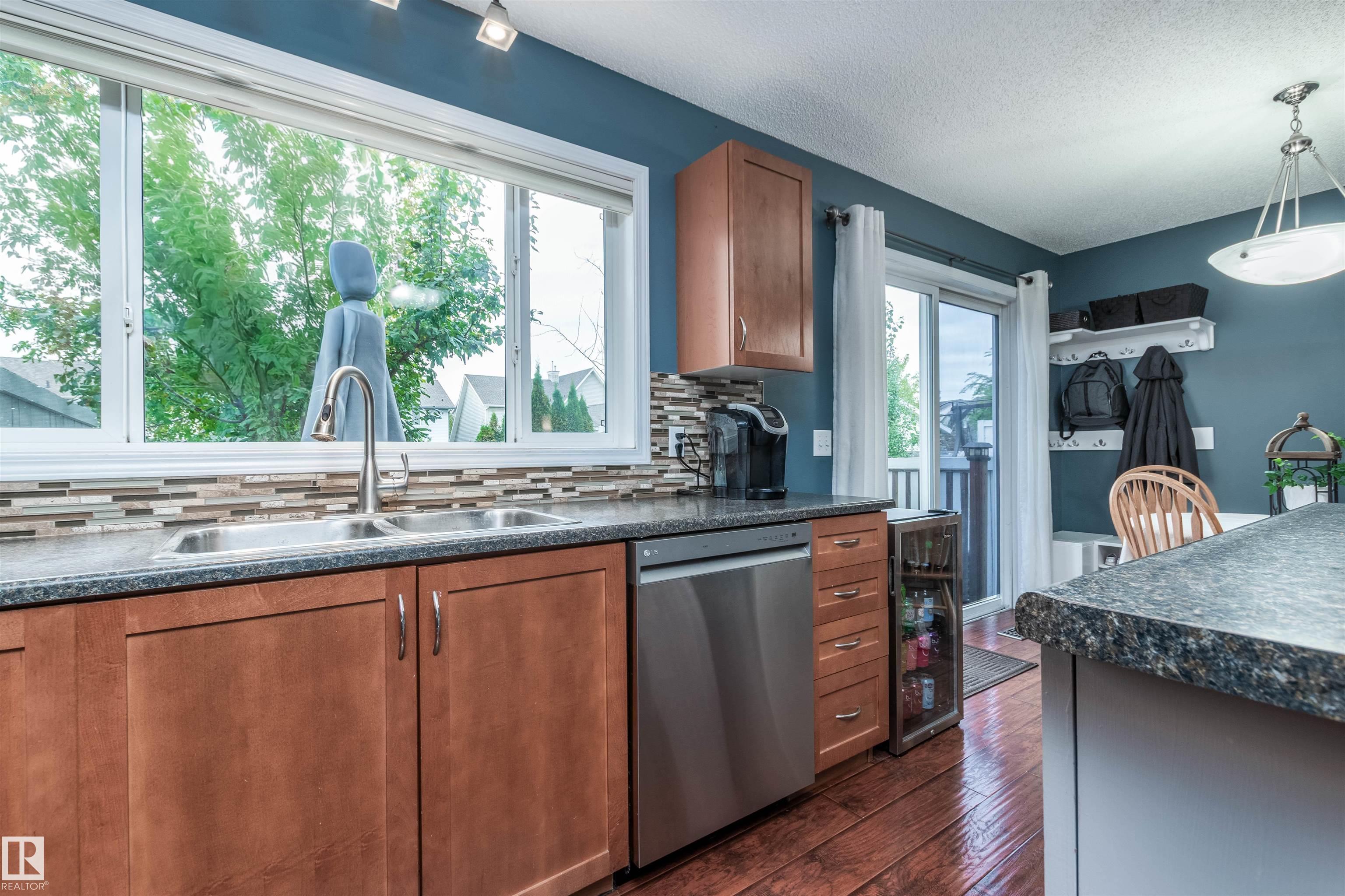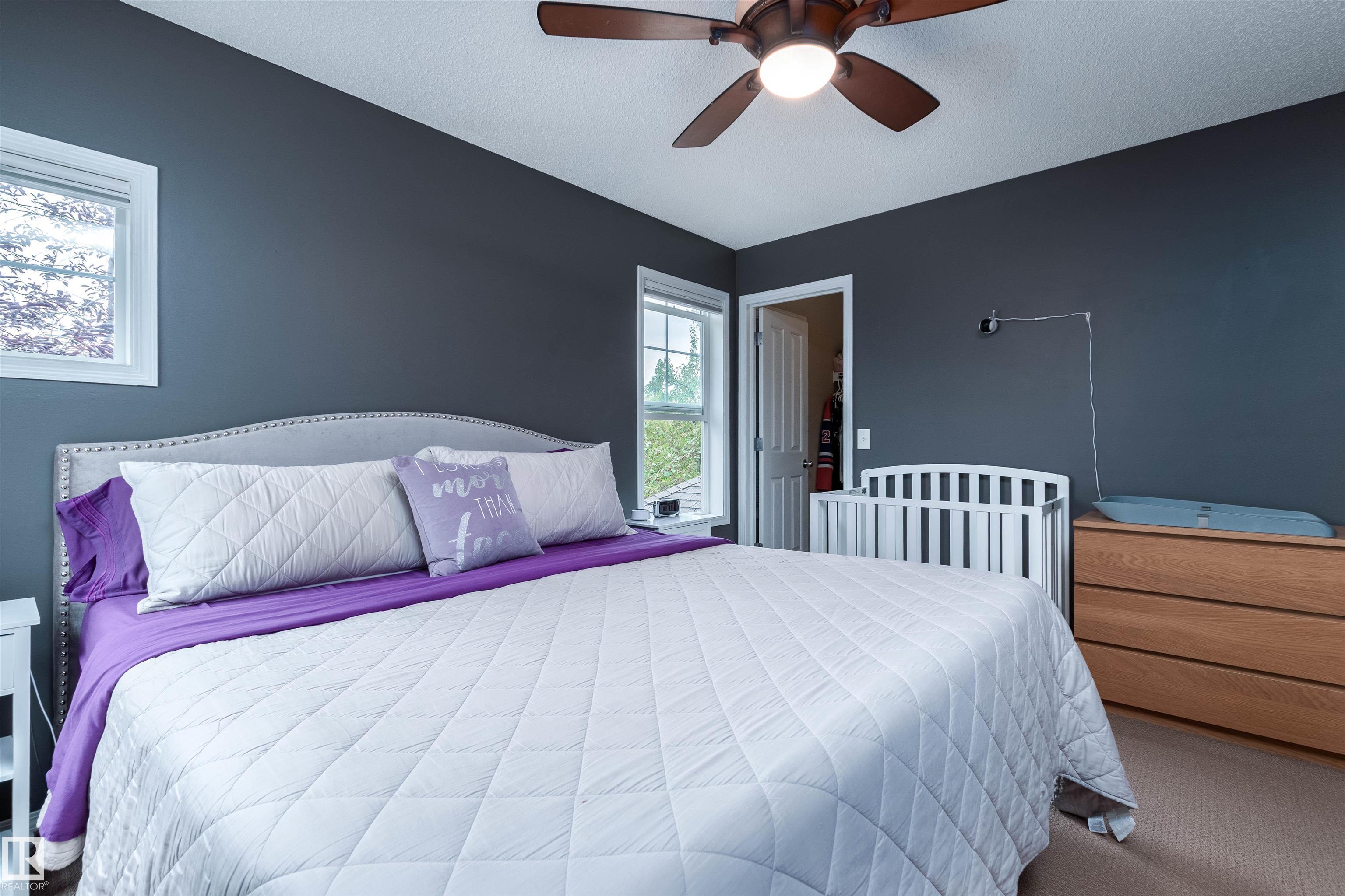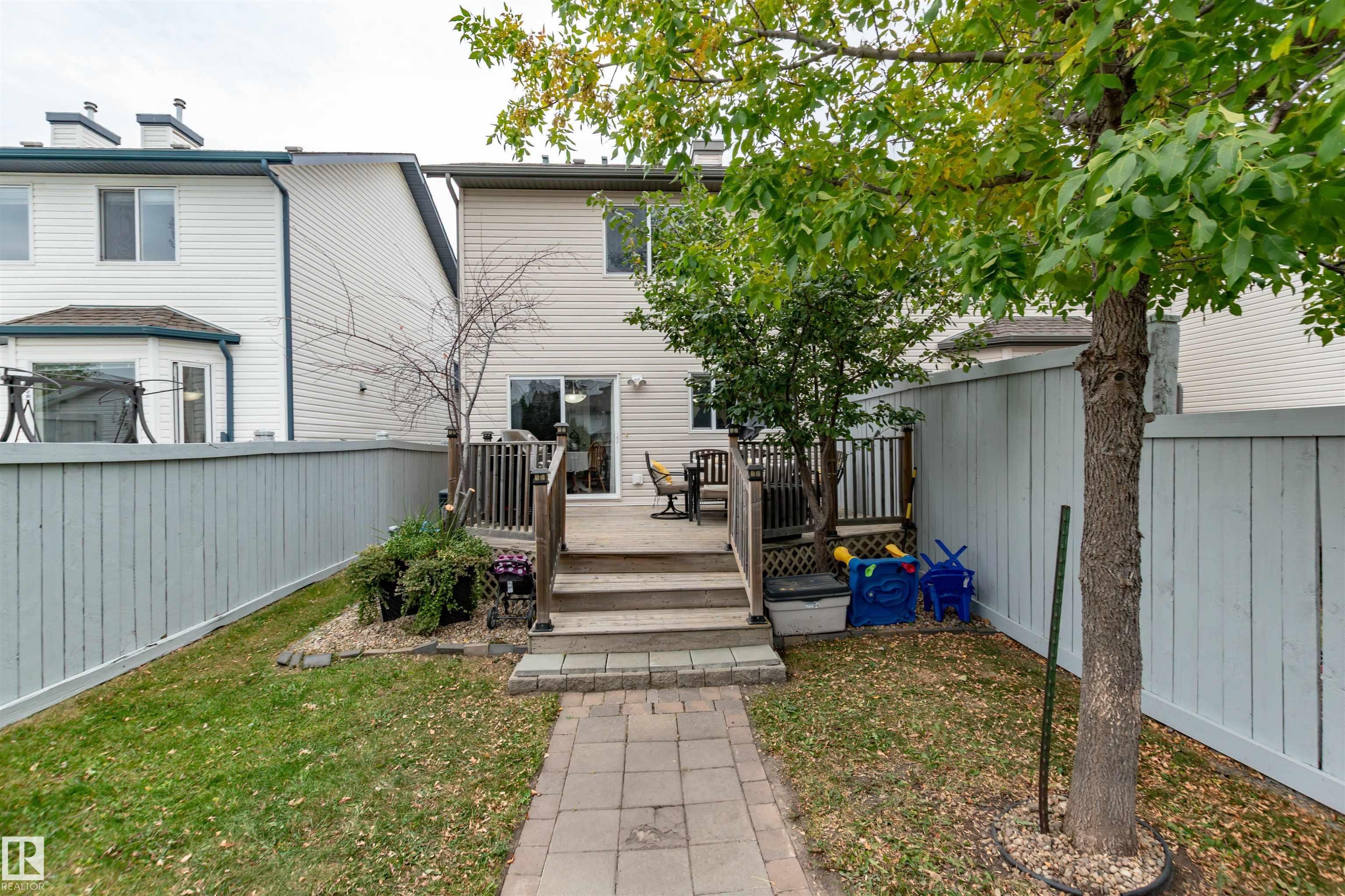 Welcome to this half duplex in The Hamptons, beautifully landscaped with low-maintenance gardens, mature trees, 2 sheds, and a large parking pad at the back. Step inside to a bright living room with an open concept that flows into the dining area and kitchen, complete with stainless steel appliances. The main floor features newer kitchen cabinets and a convenient 2-piece bathroom. Upstairs offers 2 large bedrooms, with each bedroom enjoying its own 4-piece ensuite for privacy and ease. Large windows throughout keep the home airy and light. The unfinished basement provides ample storage or the chance to develop additional living space to suit your needs. Recent upgrades include a newer hot water tank, furnace, and central air conditioning. A well-kept home inside and out, ready to move in and enjoy.