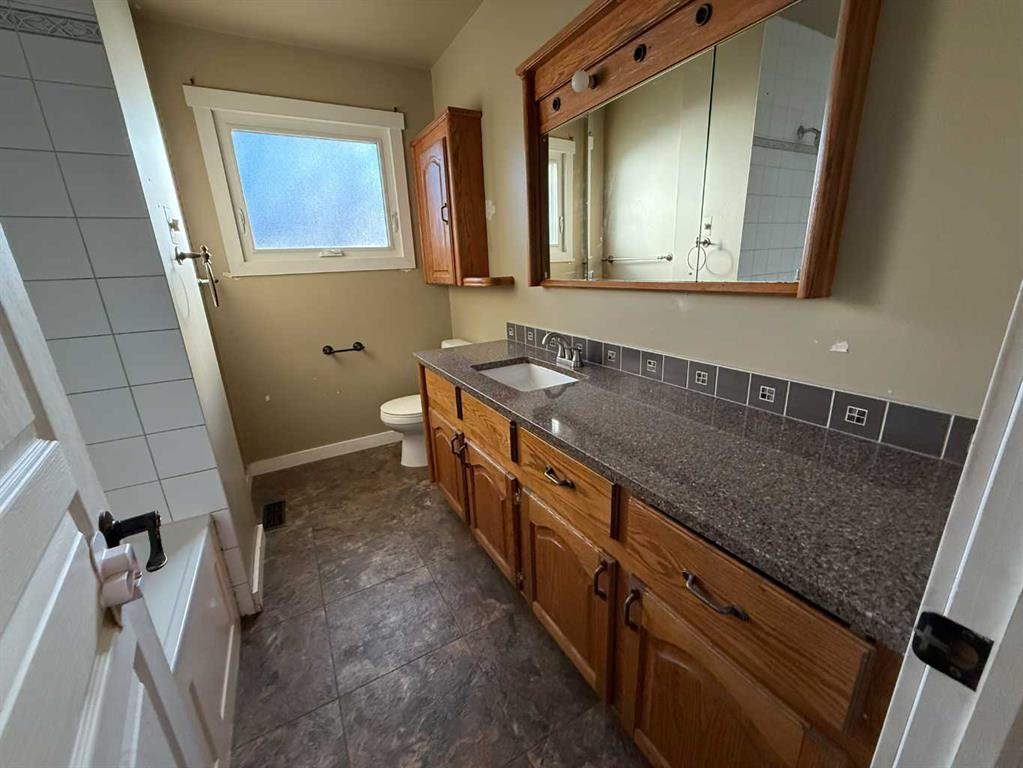 Great neighbourhood- close to schools, recreation center, shopping and restaurants. Bilevel home with a spacious living room with fireplace. Kitchen has plenty of oak cabinets. There are 2 bedrooms and a 4 piece main bathroom. Basement has a family room, bathroom, 2 bedrooms, laundry and mechanical room. Oversized double detached garage with workshop.