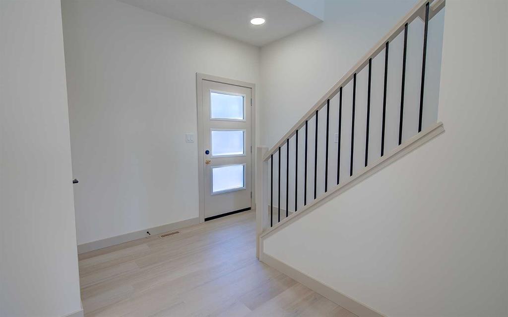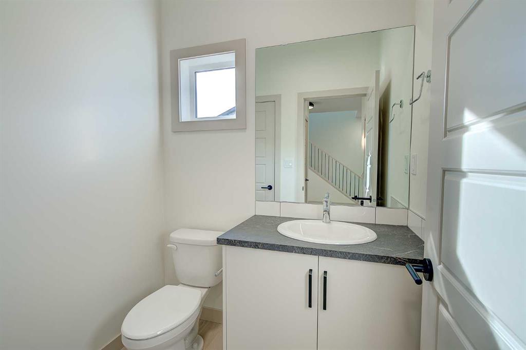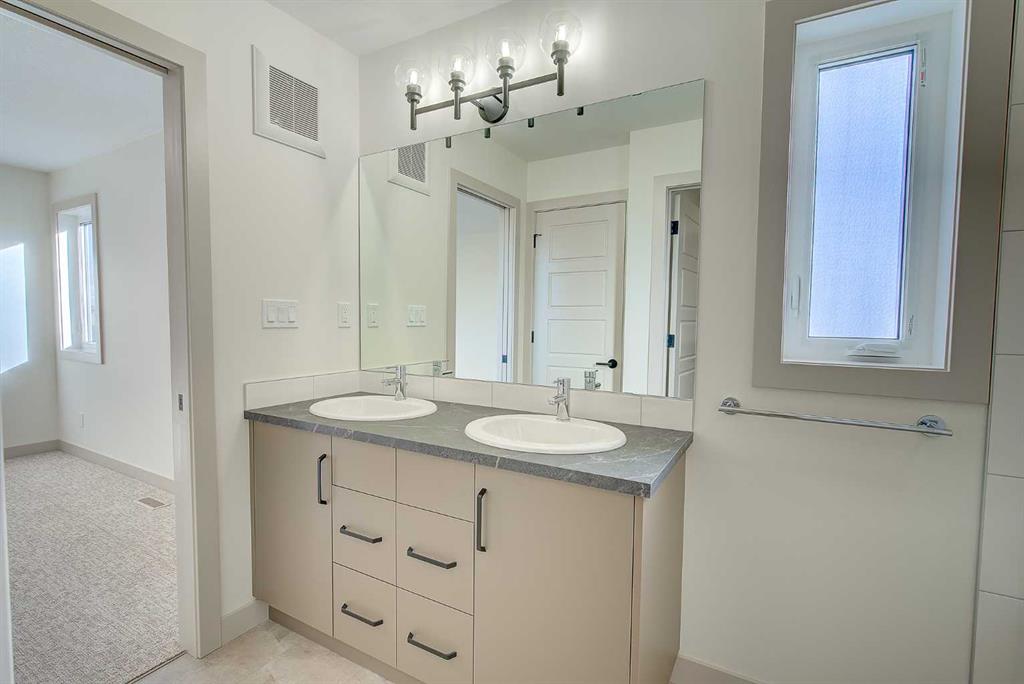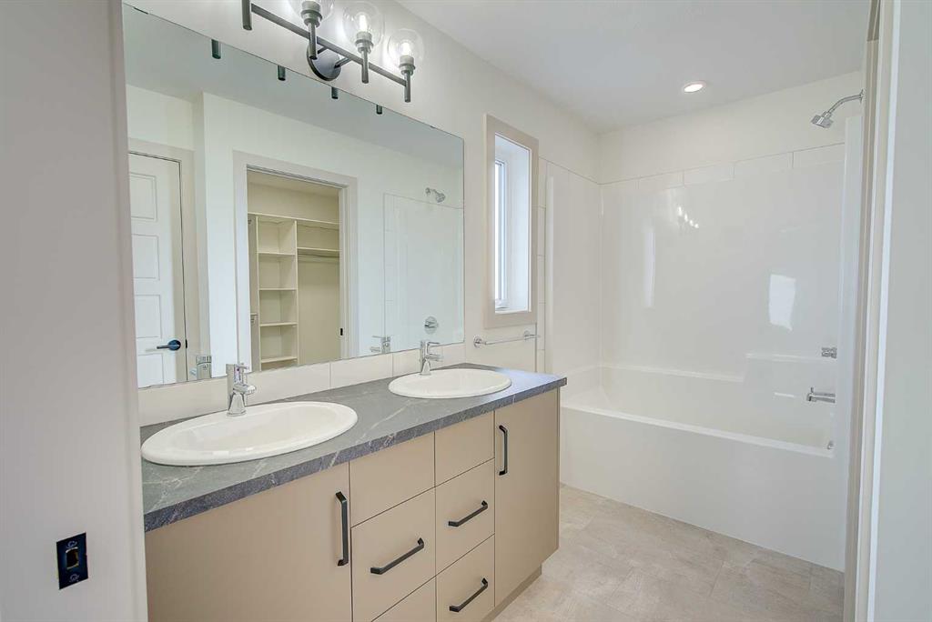 IMMEDIATE POSSESSION AVAILABLE! Brand new 3 bedroom 3 bathroom 2 story home with large attached garage, backing onto a future green space/walking trail. This home is located in popular Iron Gate subdivision in close walking proximity to all amenities! As you enter the home you will be greeted by a good size foyer with closet. The main floor has an open kitchen/dining/ living room design. The kitchen comes complete with stainless steel stove/fridge/dishwasher/microwave, large centre island, quartz counter tops, and pantry. Just off the dining room you'll find a sunny south facing 11.5x10 ft. deck. The main floor also has a 2 piece bathroom conveniently locate near the garage door entry/front entry. Main floor area is finished in luxury vinyl plank flooring. Upstairs you'll find 3 bedrooms, including a large Primary bedroom complete with a 5 piece ensuite with tub/shower and his/hers sinks and a large walk in closet. Convenient upper floor laundry complete with washer/dryer and a 4 piece main bathroom complete this floor. Upper floor is finished with carpet flooring, bathrooms finished with luxury vinyl plank. Other great features include front landscaping, paved rear alley, roughed in central vac, roughed in under slab heat in basement, 10 year new home warranty. Need a 4th bedroom? Seller will fully develop basement with an additional bedroom, family room and 4 piece bathroom for $36380 plus GST.