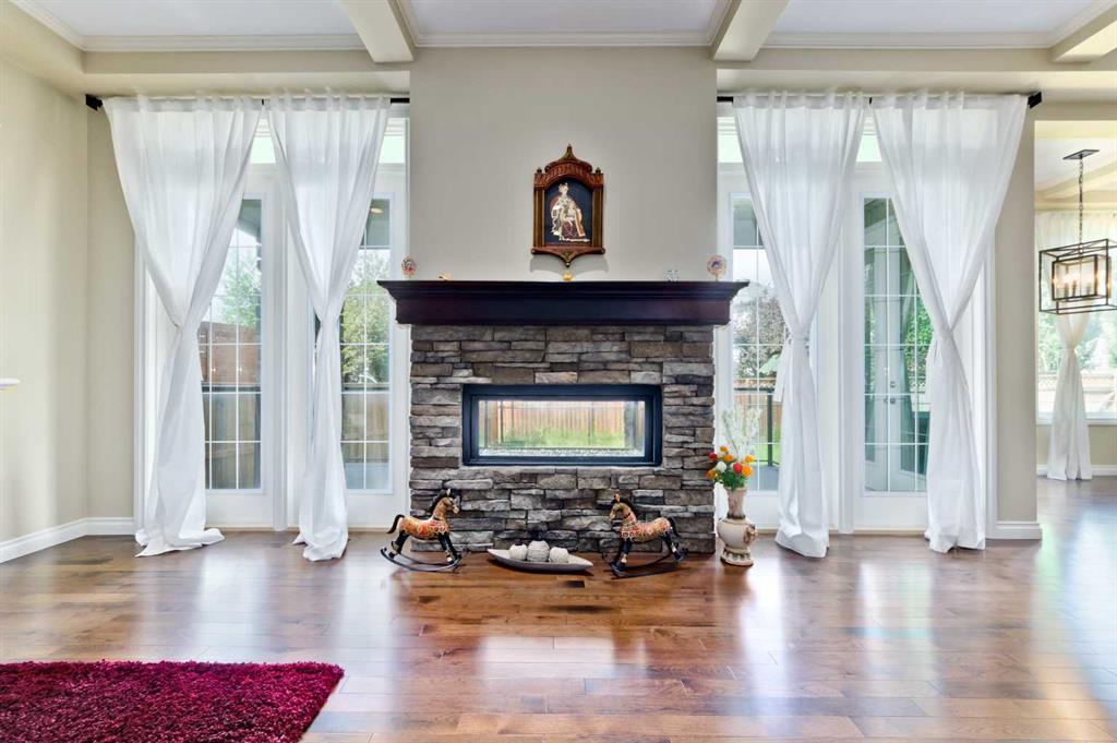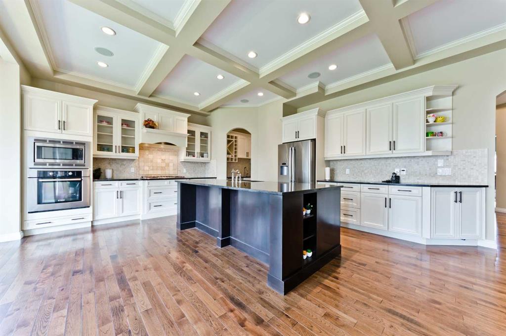 Welcome to a well maintained, fabulous, former West View builders show home, located in the heart of Springbank Hill, with over 4200 sq ft living space! This home has a unique layout & lovely feature such as upgraded gourmet kitchen, high end steel appliances, butler’s pantry, upgraded cabinets, granite counters, coffered ceilings, hardwood flooring, spiral staircase with open risers, 2-way fireplace, 2 A/c units & 2 furnaces, 10' ceilings, built in cabinets in great room, luxurious spa bath & others. Main floor has a bright great room with living room lots of natural light, breakfast nook, kitchen surrounded by large windows, walk through pantry with a wine cooler & sink in formal dining room, a very large den, large mud room. The spiral staircase leads to upstairs, which has a very large and sizable master bedroom, large bonus room, and two other large size bedrooms, spa 5 pc bath & 4 pc washroom. Developed basement, with in floor heating, 8'9 feet ceiling height, with large family room, bedroom, washroom, large wet bar with appliances, white cabinets & granite counter, another den. Large double heated car garage, stone and stucco exterior finish, minutes away from all amenities, private & public schools, golf course, shopping, and rec centers, easy get away via Stoney Trail. A must see, book your private viewing today.