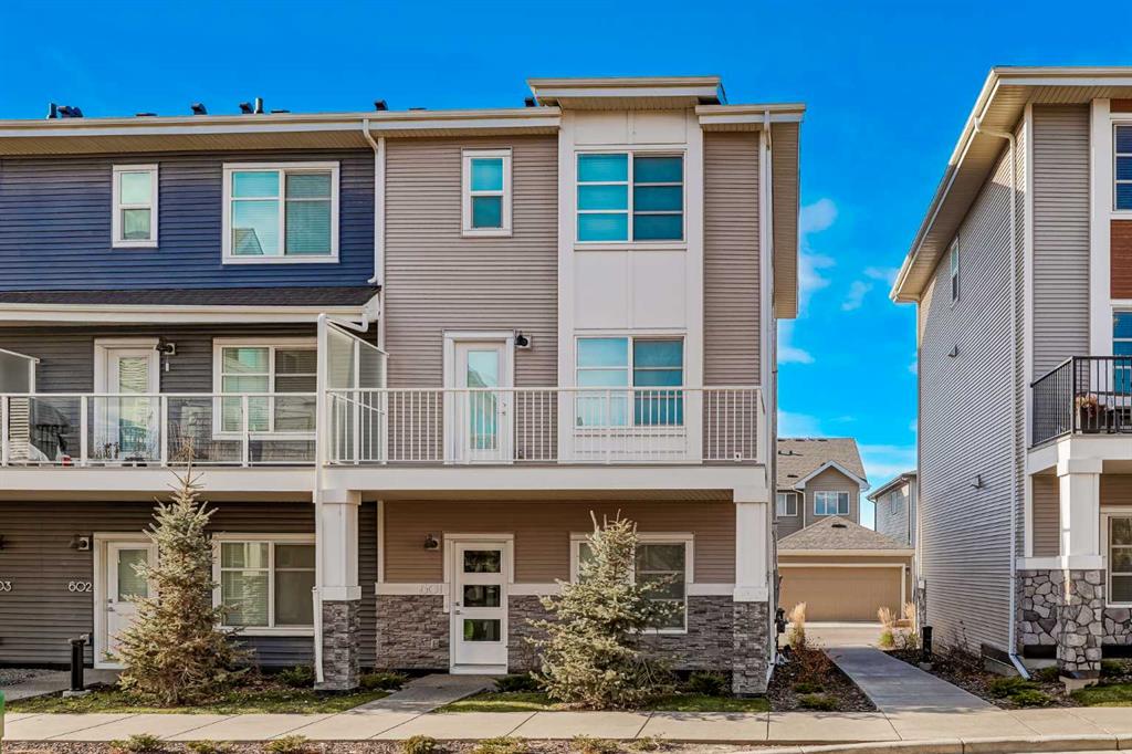 Luxurious End-Unit Townhome in Desirable Carrington: A Masterpiece of Modern Living Step into your dream space with this remarkable end-unit townhome, situated in Carrington, one of Calgary's most sought-after and top-selling communities. This property seamlessly blends luxurious living with state-of-the-art design and unparalleled comfort. Mountain Views & Downtown Calgary views! Sophisticated Interior & Design Spanning 1,664 square feet, this home is designed for contemporary family life, featuring four bedrooms (three beautifully appointed on the upper floor) and two-and-a-half sophisticated bathrooms, including a generously proportioned ensuite. Open Concept Living: The home boasts a sleek, fully equipped kitchen ideal for gastronomic ventures, which flows into a spacious open-plan living and dining area—perfect for hosting gatherings or unwinding. Natural Light: A multitude of expansive windows flood the space with natural light, creating a warm and welcoming ambiance you'll be eager to return to. Outdoor Haven: The crown jewel of this home is the expansive balcony, an ideal spot for morning coffees, sunset dinners, or simply soaking in the sun. Unbeatable Location & Convenience The location is a true showstopper, offering the perfect harmony between suburban tranquillity and city vibrancy: Accessibility: Perfectly positioned within a whisper of Stoney Trail, providing swift and seamless access to major transportation routes, placing you just 25 minutes from downtown Calgary. Amenities: Proximity to a range of shopping destinations, top-rated schools, and leisure facilities ensures your daily life is hassle-free. Storage & Parking: One of the standout features is the sizable double attached garage, providing secure parking and additional valuable storage space. This breathtaking property, with its cutting-edge design, lavish features, and prime location, is an undeniable standout. It's more than just a property—it’s the home that launches your new journey and lifestyle. Don't let this opportunity slip away. Contact us today to schedule your private tour!