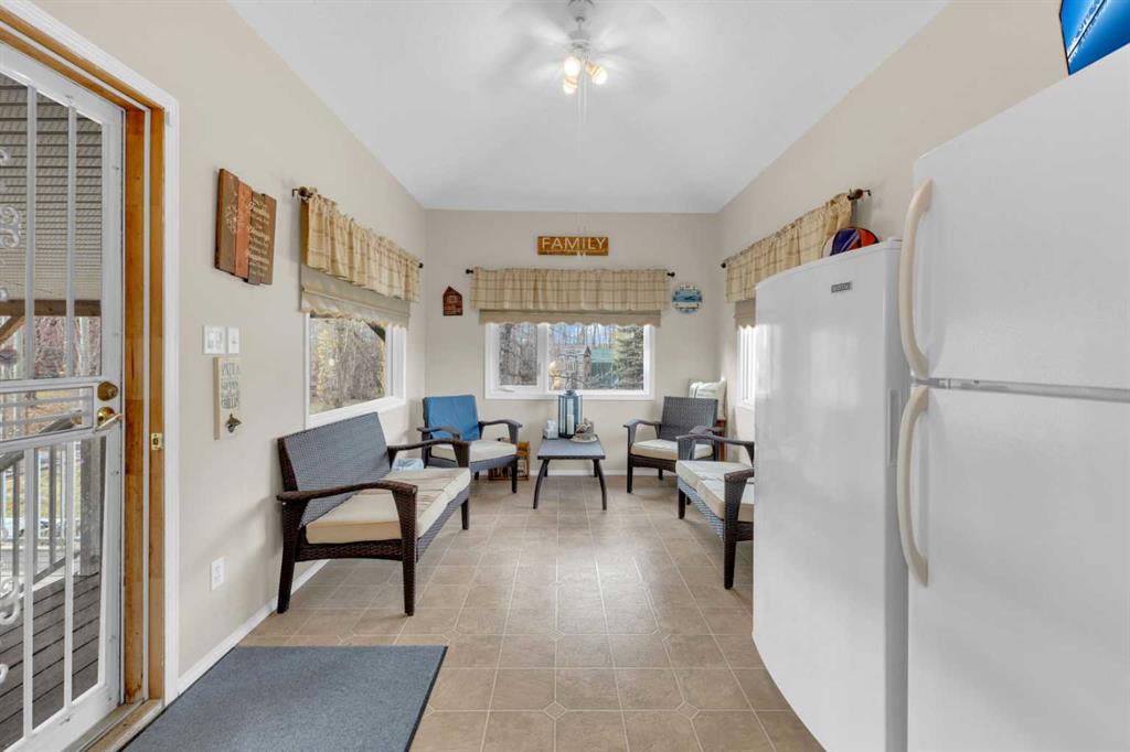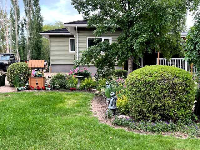 Welcome to this charming property tucked away on a private 0.49 acre lot at Pelican Point, surrounded by mature trees, and offering the perfect opportunity for comfort, space, and tranquility AT THE LAKE!! Don't let the reported age of this home fool you. A new basement was added in 2002, with concrete styrofoam block for extra insulation, and infloor heat. A Bungalow was moved on, and then extensively renovated. This well-cared-for home features 5 bedrooms, providing ample room for family and guests alike. As you enter, you’re greeted by a cozy living room complete with a fireplace, and classic hardwood flooring, for an inviting space to gather and relax. The adjoining dining area offers plenty of room for family meals and entertaining, seamlessly connecting to the kitchen, which serves as the heart of the home. The kitchen is equipped with all appliances, attractive maple cabinetry, cork flooring and plenty of counter space for meal prep and creativity. The main floor hosts two spacious bedrooms and a full bathroom. A versatile den adds a unique touch, perfect for an office, reading nook, or additional storage. Downstairs, you’ll find a generous recreation area that can easily adapt to your personal lifestyle, whether as a family room, hobby area, or workout space. Three additional bedrooms and another full bathroom complete the lower level, along with a laundry area conveniently located in the utility room. Central air conditioning is an added feature that you will love in the summer. Outside, a covered rear deck offers a peaceful retreat to unwind and take in the natural surroundings. The landscaping goes above and beyond! It literally feels like a park with so many perennials, shrubs, and groomed flower beds. There is also a tarped shed, storage shed, and play centre included in the fenced backyard. This property is only a 5 minute walk to the playground and beach, and 10-15 minute walk to the boat launch. You are also only 15 minute to the lovely town of Bashaw which boasts two grocery stores, liquor stores, police station, fire department, school and a vibrant business core. Neighboring cities including Camrose, Wetaskiwin and Stettler are all within an hour to Pelican Point. This amazing turn key, 4 season property, combines privacy, practicality, and a great opportunity for year round living or a fantastic summer home!