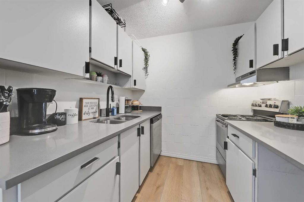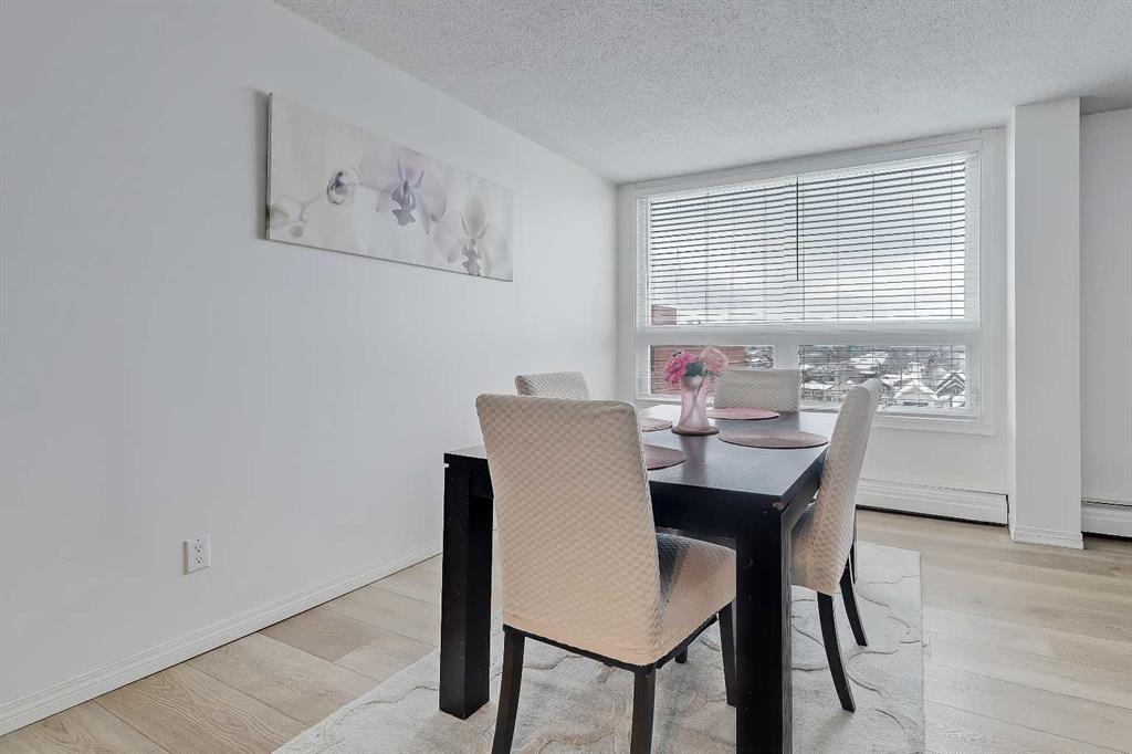 LOVELY UPDATED 2 BEDROOM END UNIT | PRIME INNER-CITY LOCATION | PANORAMIC WEST VIEW! This updated 2-bedroom condominium in Kensington Court offers a spacious layout, beautiful west-facing view, pet-friendly living and the added benefit of end-unit privacy with only one shared non-bedroom wall, all in an unbeatable location near downtown, transit, parks and all the lifestyle amenities that make Hillhurst/Kensington such a special place to call home. Whether you are an investor looking for a strong revenue property or a student or professional seeking comfortable inner-city living, this home checks all the right boxes. The unit itself offers a comfortable and functional layout with a panoramic view that brings in natural light and adds to the sense of space throughout the main living area. The dining room is generously sized and easily accommodates a full dining set, while the adjacent living room provides plenty of room to relax or entertain. The galley-style kitchen has been thoughtfully updated with quartz countertops, newer stainless steel appliances, updated matte black hardware, refreshed cabinetry, a double undermount sink with pull-down sprayer and a pantry storage. Both bedrooms are spacious and feature full-height double closets along with larger west-facing windows. The updated 4-piece bathroom includes a newer vanity and toilet, oversized mirror and modern lighting. Finishing touches such as luxury vinyl plank flooring, newer paint, venetian blinds, ceiling fans in both bedrooms, a roomy front entry and a rare in-suite storage room that offers secure, practical space for bikes, seasonal items and everyday extras. Convenience continues beyond the unit with a covered parking stall directly beside the rear entrance, one of only a handful in the complex, and laundry facilities available on every floor of the building. Beyond the unit, this location truly shines. You are within walking distance to Riley Park, the Sunnyside LRT station, the Bow River pathway system and Prince’s Island Park, with the energy and charm of Kensington Village just moments away. Spend your weekends exploring local favourites like Hayden Block, The Mash, Blanco Cantina, Pie Junkie, Higher Ground, Deville Coffee, Pages on Kensington, Hot Wax Records and The Plaza Theatre, while everyday essentials including Safeway and Shoppers Drug Mart are just around the corner. A smart investment and a fantastic place to live, all in one exceptional inner-city location.