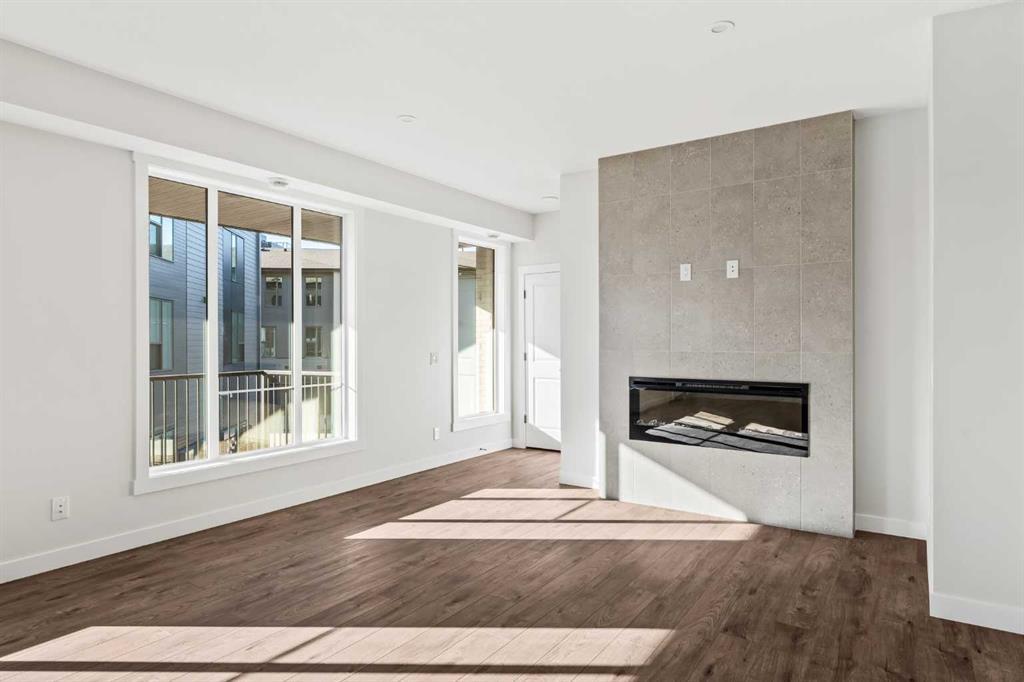 The Hyde at Crown Park offers true single-level living without compromise and represents one of the final opportunities to own a brand-new bungalow-style townhome in this highly sought-after community. Featuring 3 bedrooms, 2 bathrooms, and nearly 1,500 sq.ft. on one level, plus a private double attached garage and exceptional storage, this home is perfectly suited for those looking to downsize while keeping the space and functionality they’re accustomed to. Ideally positioned in the heart of Crown Park, the residence features a southwest-facing balcony overlooking the central park and is located just minutes from downtown Calgary - combining maintenance-free living with an inner-city lifestyle. The main living space is beautifully designed for everyday comfort and effortless entertaining. A timeless white kitchen anchors the home, opening seamlessly to the living and dining areas while a full wall of southwest-facing windows fills the space with natural light. The kitchen showcases quartz countertops, a warm wood accent island, and a premium built-in appliance package including a gas cooktop and built-in oven. The expansive living room features a striking floor-to-ceiling tiled fireplace and comfortably accommodates gatherings with ample seating space for 6+ people, while the generous dining area easily hosts a table for eight - perfect for family dinners and entertaining. Privately positioned at one end of the home, the primary retreat is thoughtfully separated from the secondary bedrooms by the laundry area, enhancing privacy. The suite includes a large walk-in closet and a spa-inspired ensuite with dual vanities and a walk-in shower with 10mm glass surround. Two additional bedrooms offer flexible use as guest space, a home office, or media room and are served by a full bathroom. A spacious laundry room with additional cabinetry and folding counter adds everyday convenience. Outdoor living is equally impressive with an approximately 26’ x 8’ covered southwest-facing balcony overlooking the park and complete with a gas line, hose bib, and A/C rough-in - maximizing sunlight year-round both inside and out! The lower level provides access to the oversized private double attached garage along with two large storage areas, offering the extra space rarely found in bungalow-style living. Located within Calgary’s newest inner-city community, this brand-new home delivers a true lock-and-leave lifestyle and includes full builder warranty plus Alberta New Home Warranty. Rarely do single-level townhomes with private double garages become available - this is your chance to secure a low-maintenance bungalow lifestyle without sacrificing space, location, or comfort. This brand new opportunity is one of the very last opportunities available at his exceptional master-planned inner-city development - don't wait!