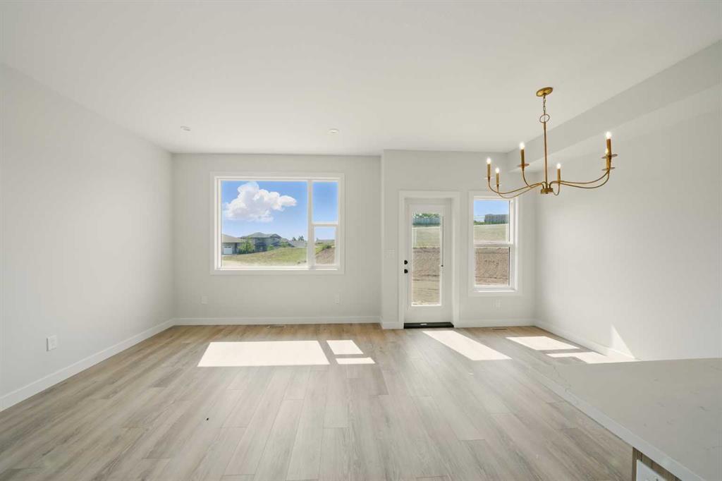 Quality built by Valley Mountain Homes, these brand new duplexes are located on a close. Excellent floor plan with 1205 sq ft on 2 levels and an attached single garage. The main floor has 9' ceilings with an open style floor plan. The kitchen has flat panel melamine cabinets, full tile backsplash, quartz countertops and comes with the fridge, stove, dishwasher and hood fan. The eating area and living room have nice sized windows. There is a garden door out to the deck that has aluminum railings, there is a vinyl fence with a 6' high dividing fence between the units. There is a 2 pce bath on the main floor. Upstairs has 3 bedrooms, the primary is quite large and it has a 4 pce ensuite & walk in closet. The other 2 bedrooms share a 4 pce bath and there is upper floor laundry for your convenience. The WALKOUT basement is undeveloped. The furnace and hot water tank are high efficient.
